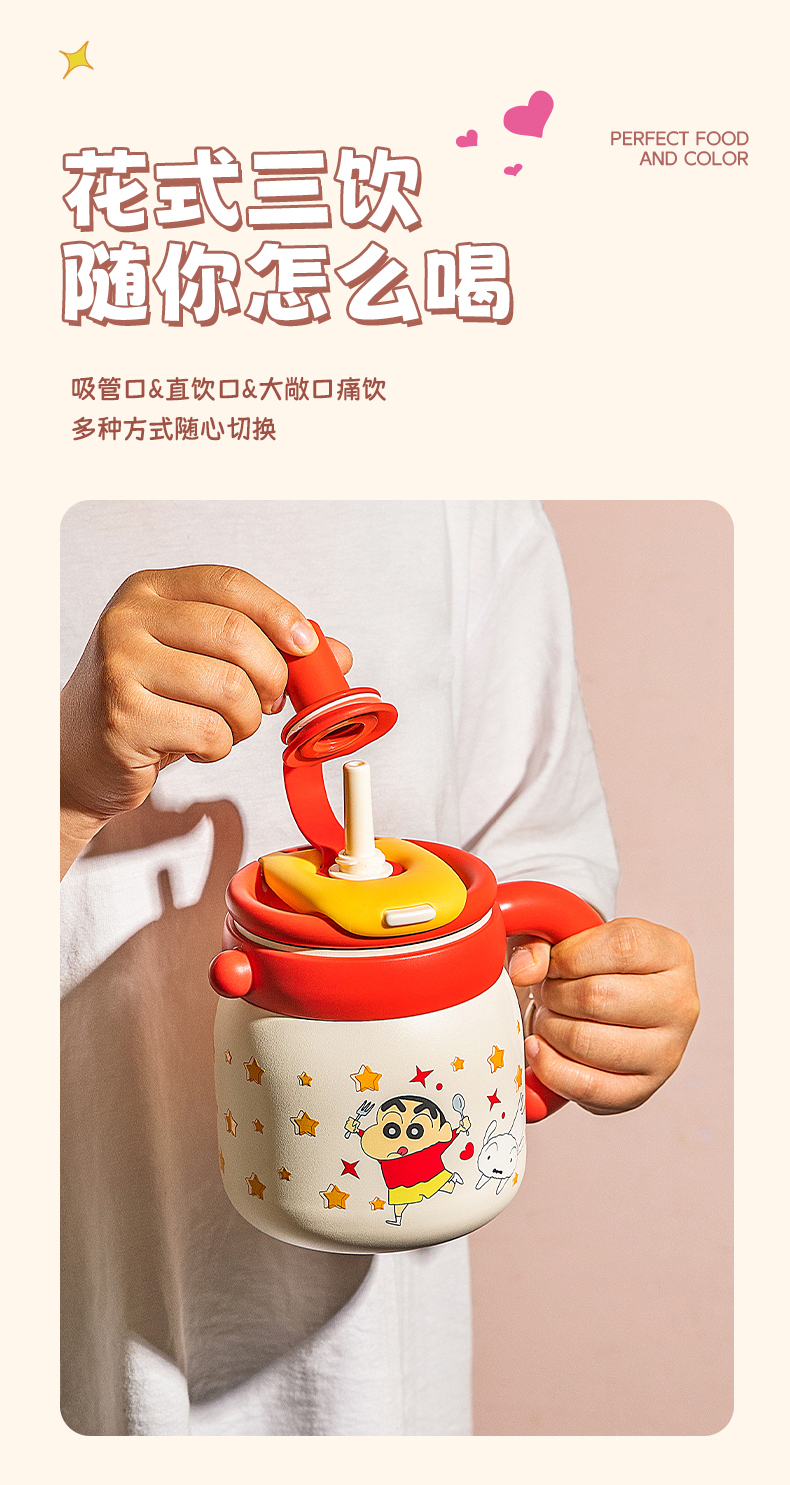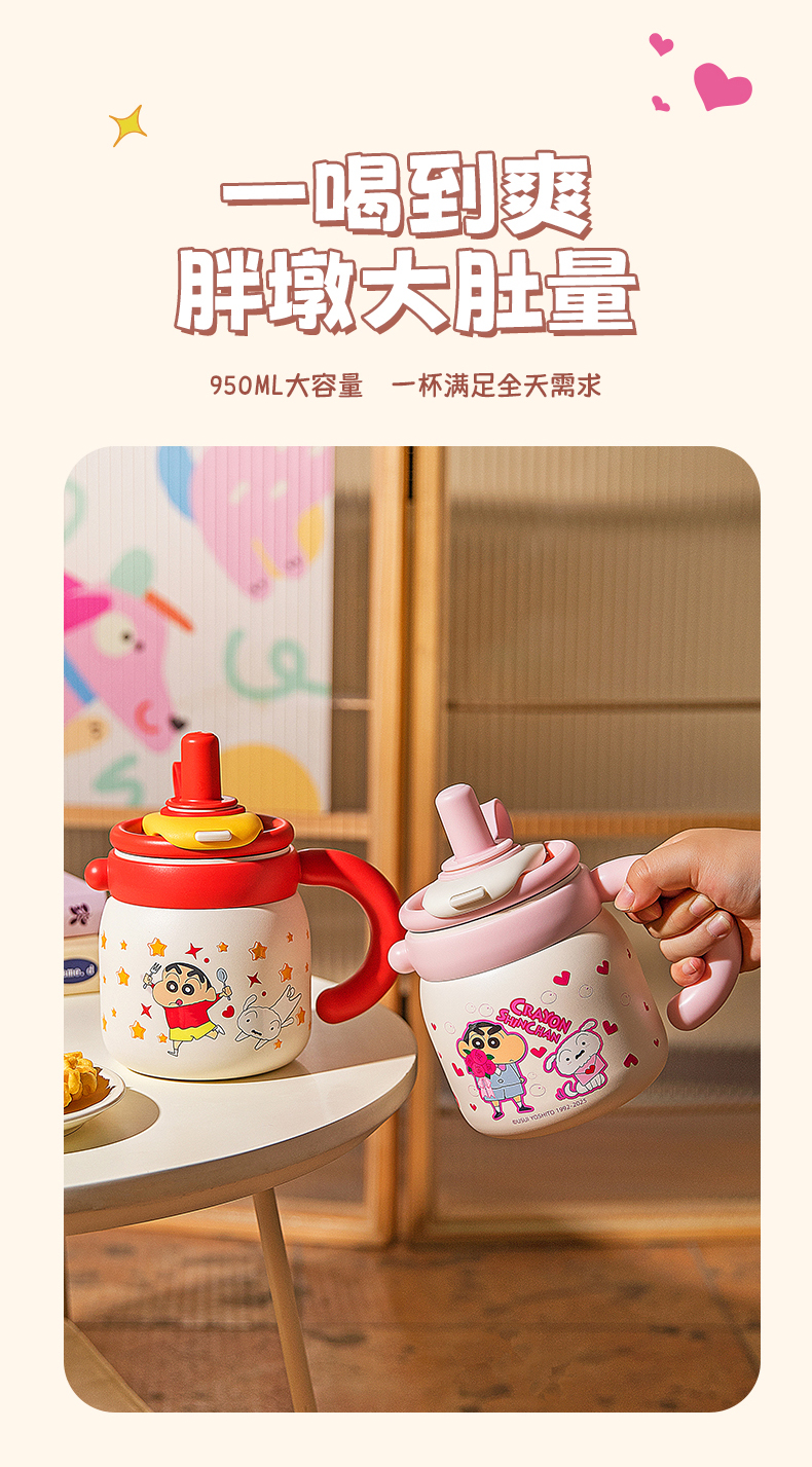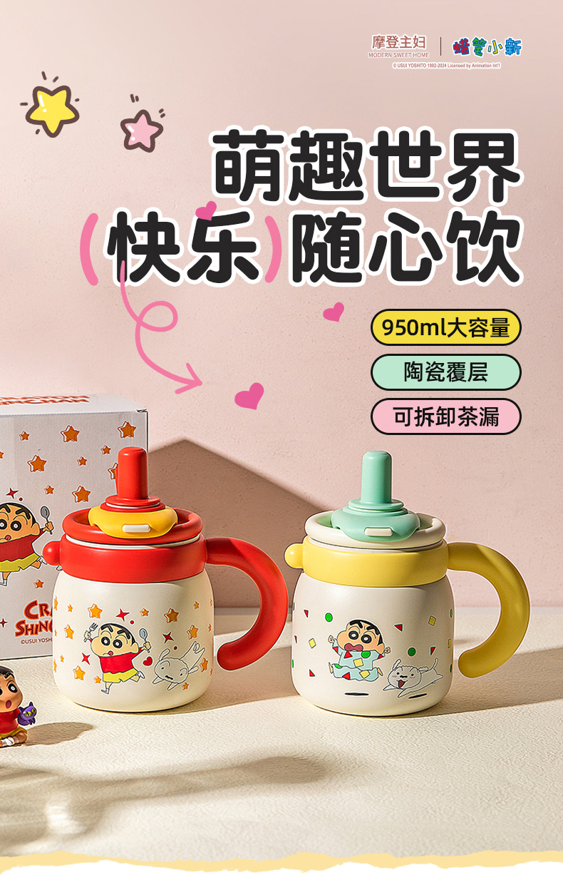 摩登主妇蜡笔小新大容量保温杯办公室杯子女冰霸杯高颜值吸管水杯