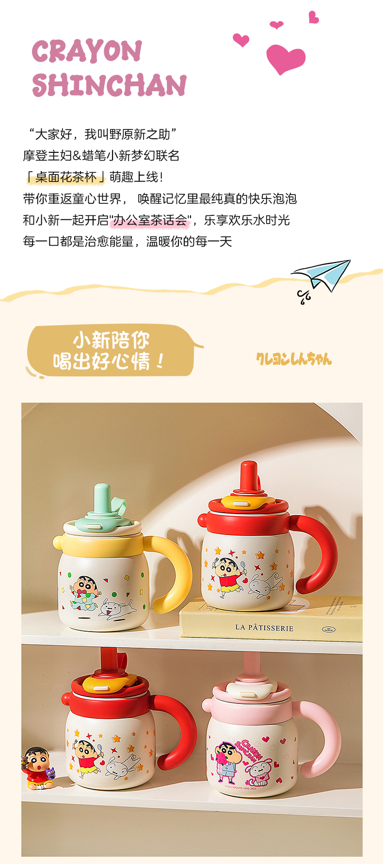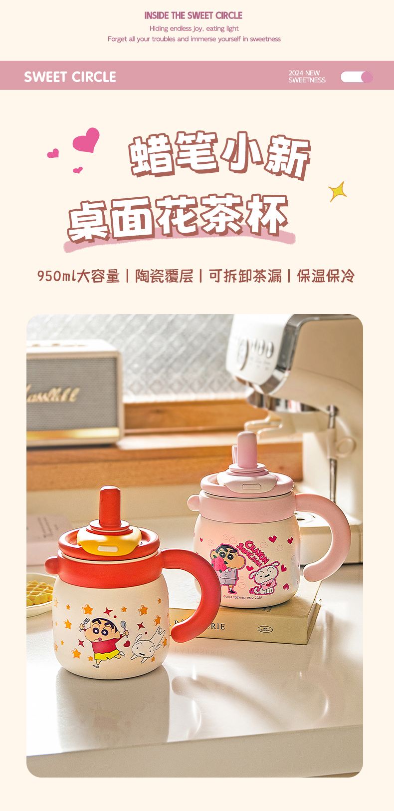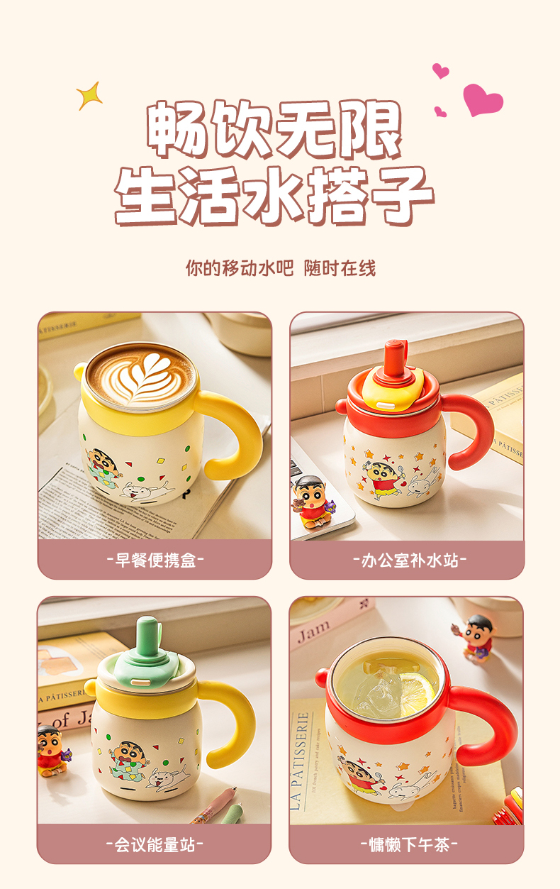 摩登主妇蜡笔小新大容量保温杯办公室杯子女冰霸杯高颜值吸管水杯