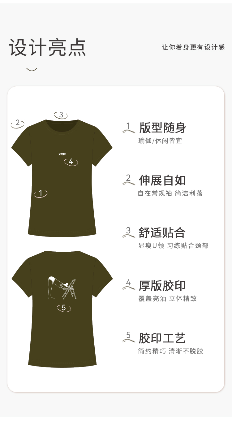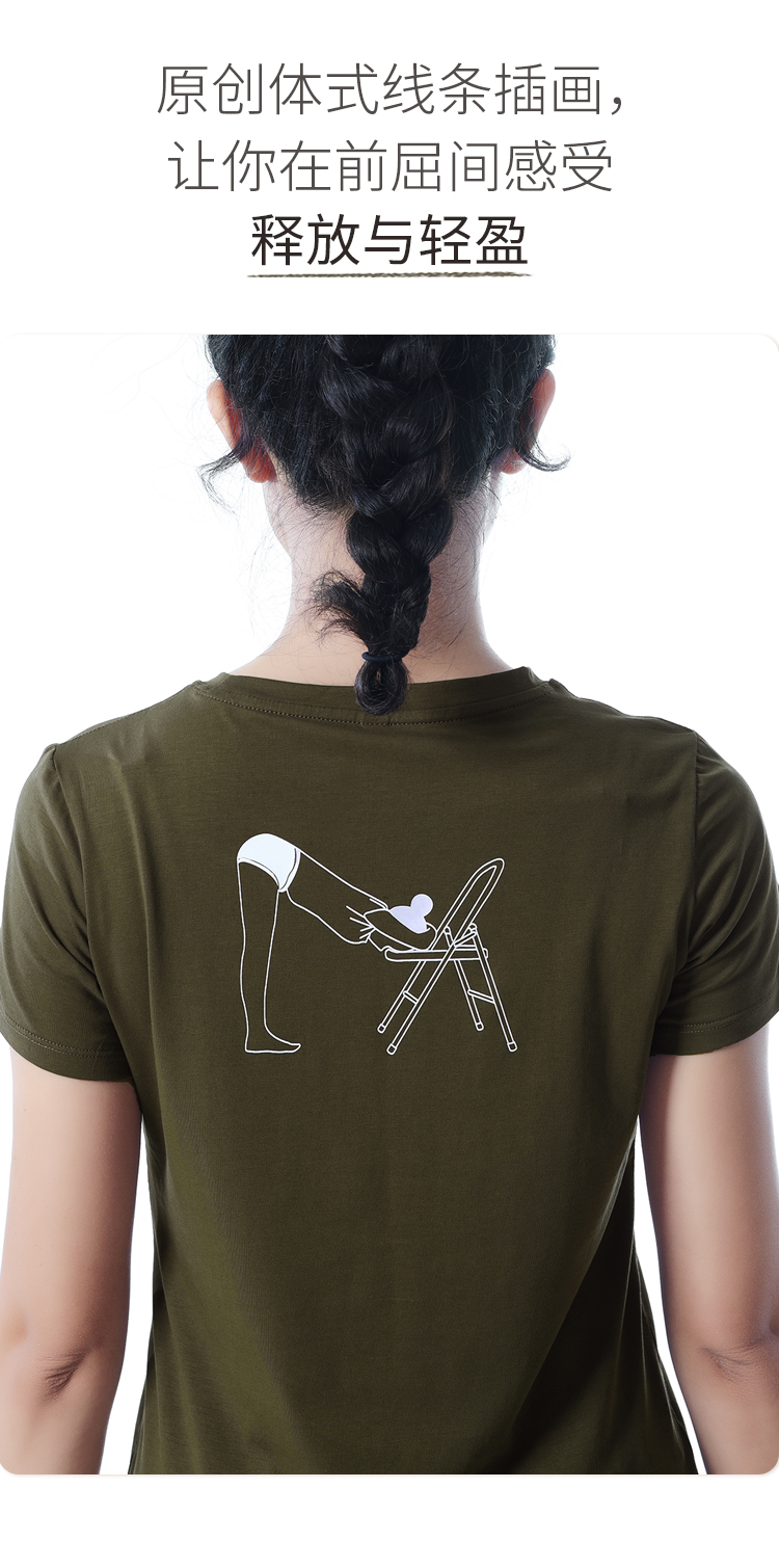 艾扬格 life C1207前屈伸展式女T恤 短袖 原创体式线条插画 超亲肤精梳棉