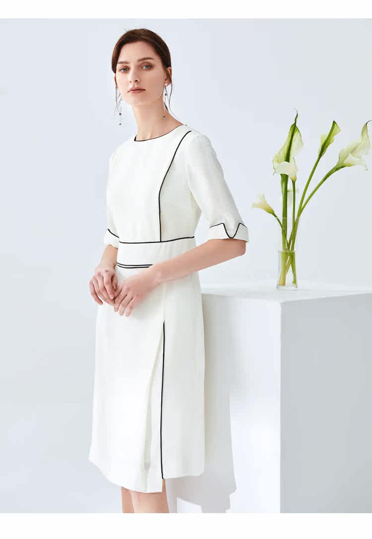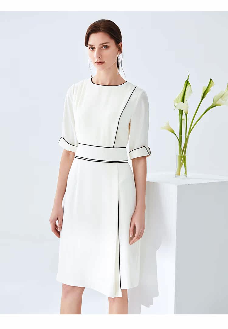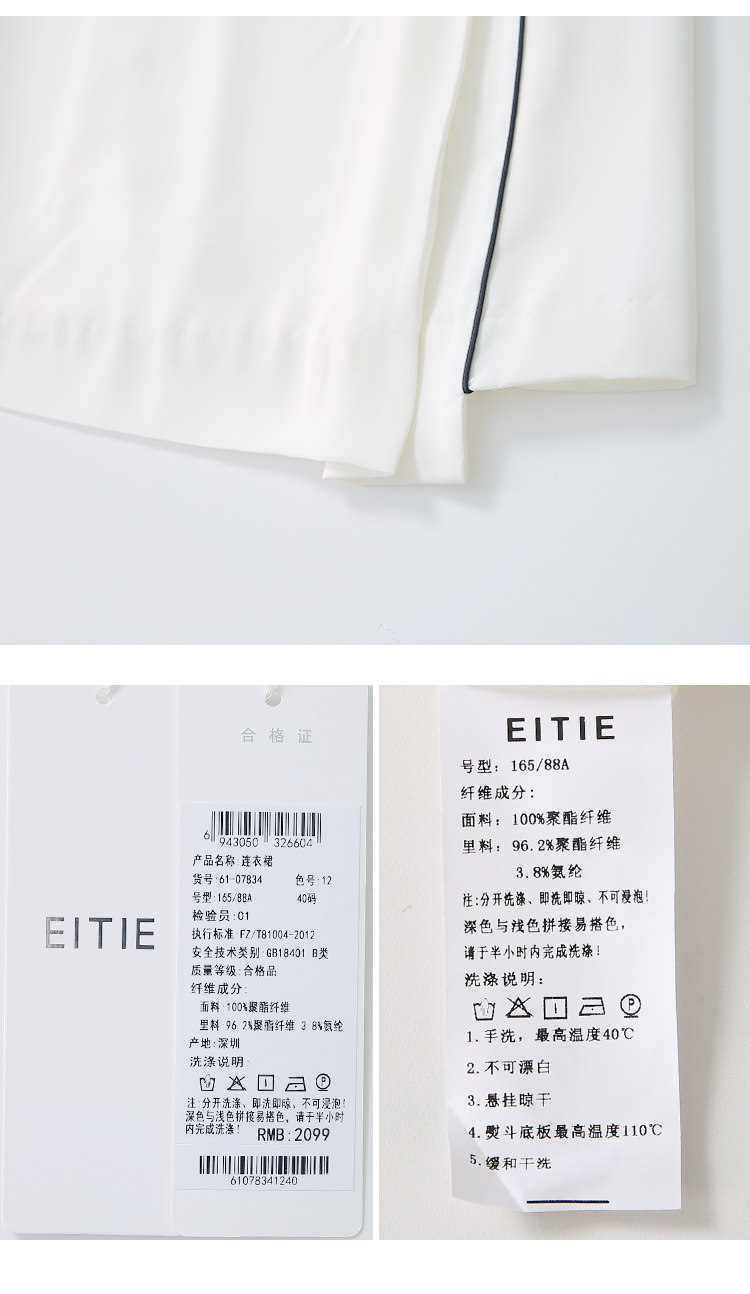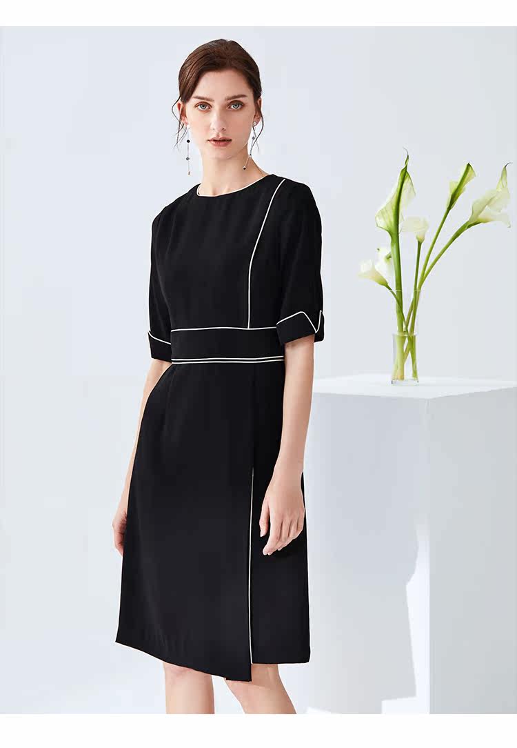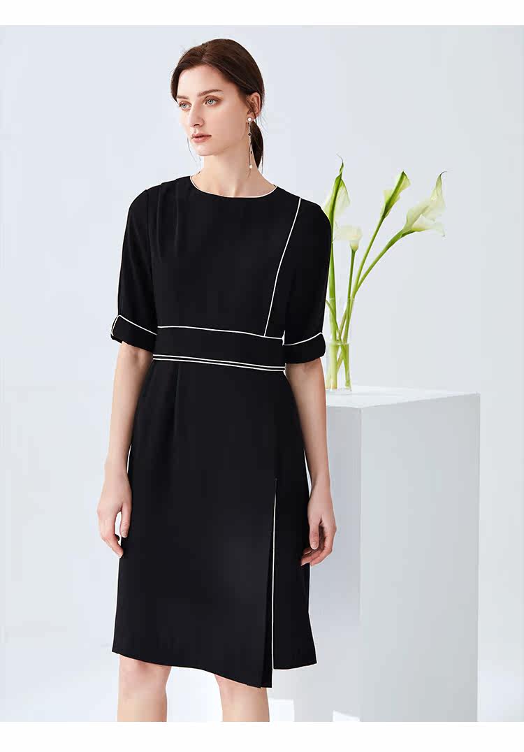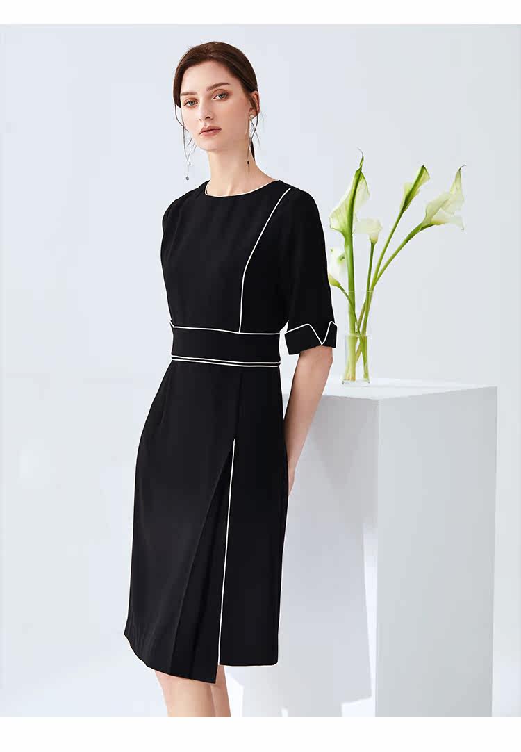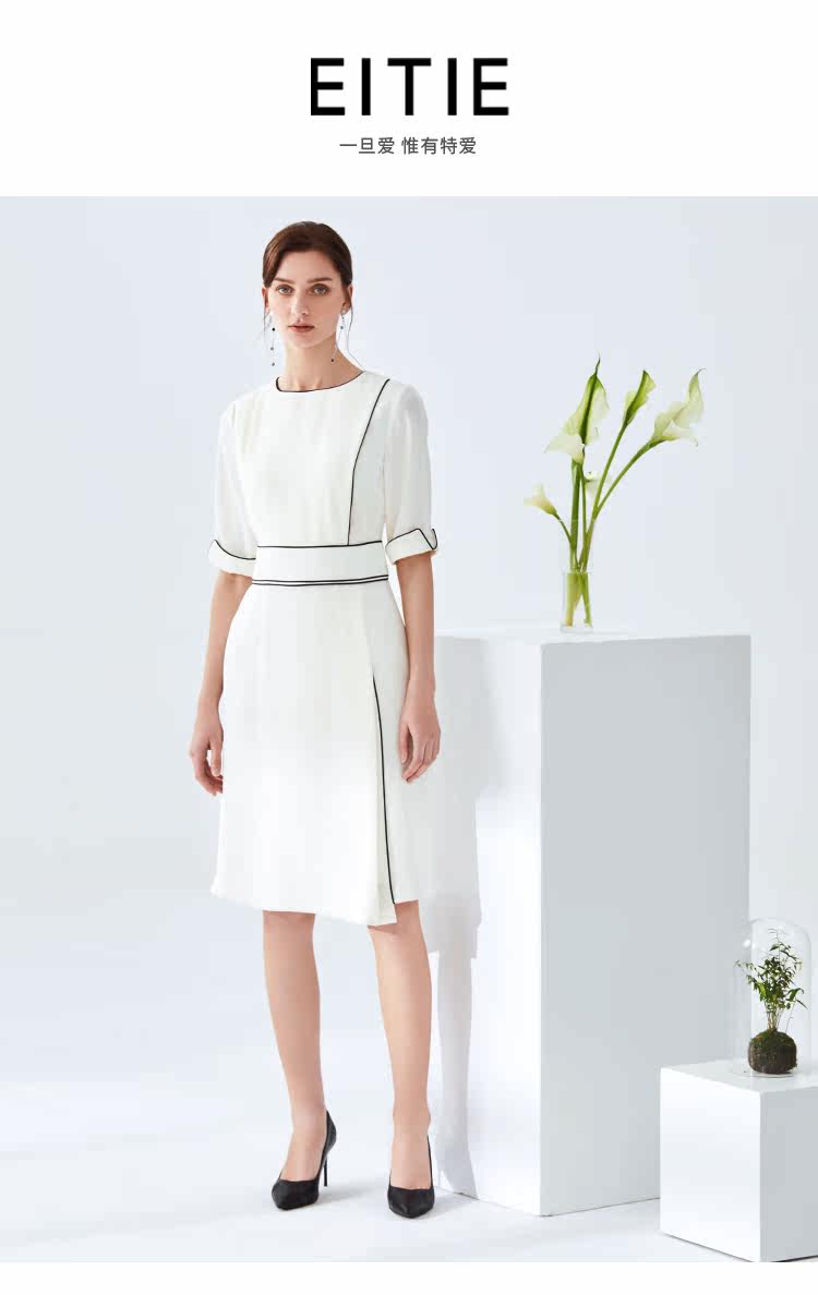 EITIE爱特爱夏季新款时尚简约通勤干练职业显瘦收腰连衣裙女6107834