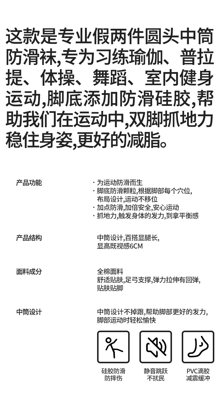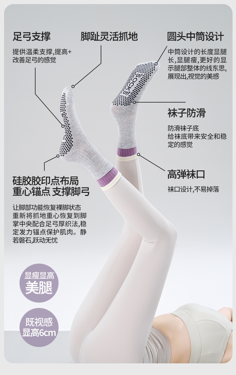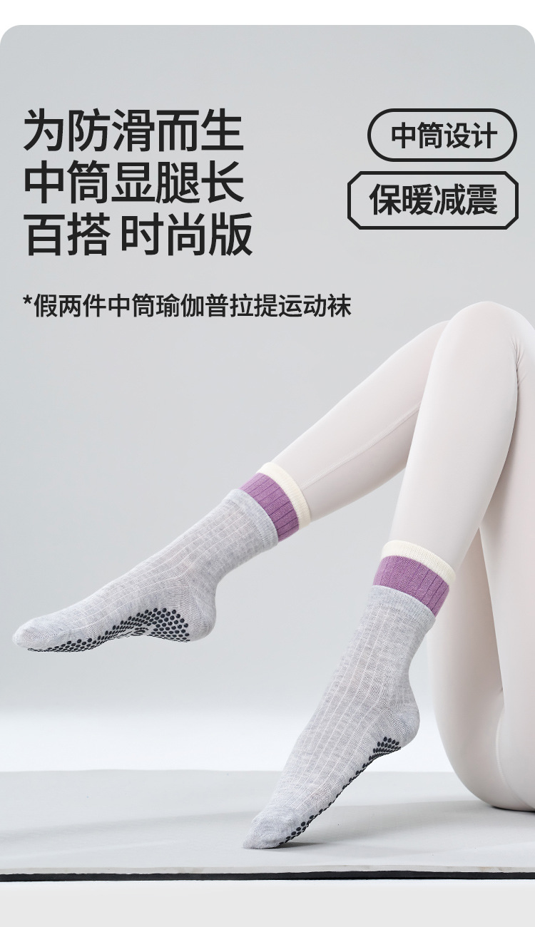 【49元任选3双】【腾飞系列】双层中筒新款瑜伽袜子吸汗点胶防滑款运动袜透气舒适普拉提袜(活动产品,收货7天内支持退换)