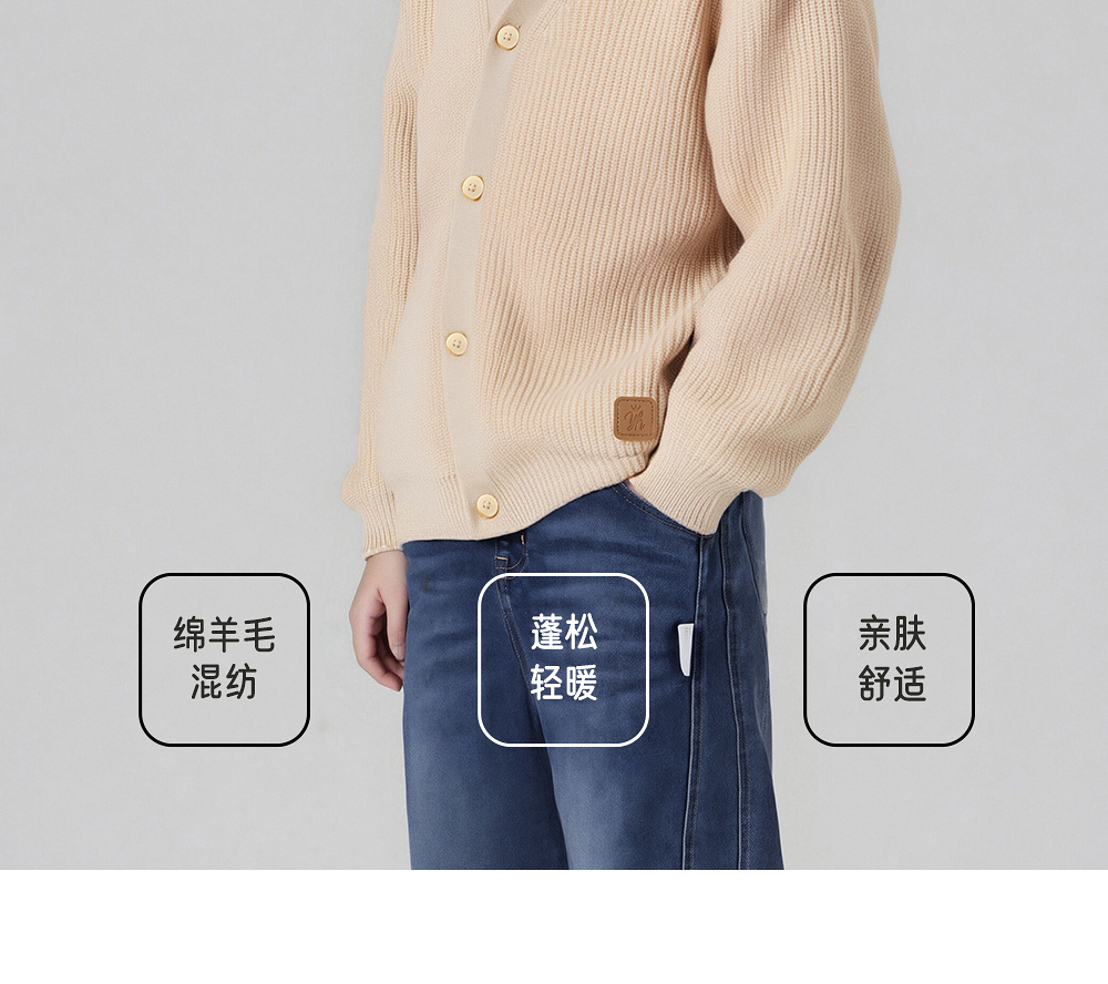 英氏儿童毛织上衣春秋休闲女童羊毛开衫外套保暖外搭中大童毛衫
