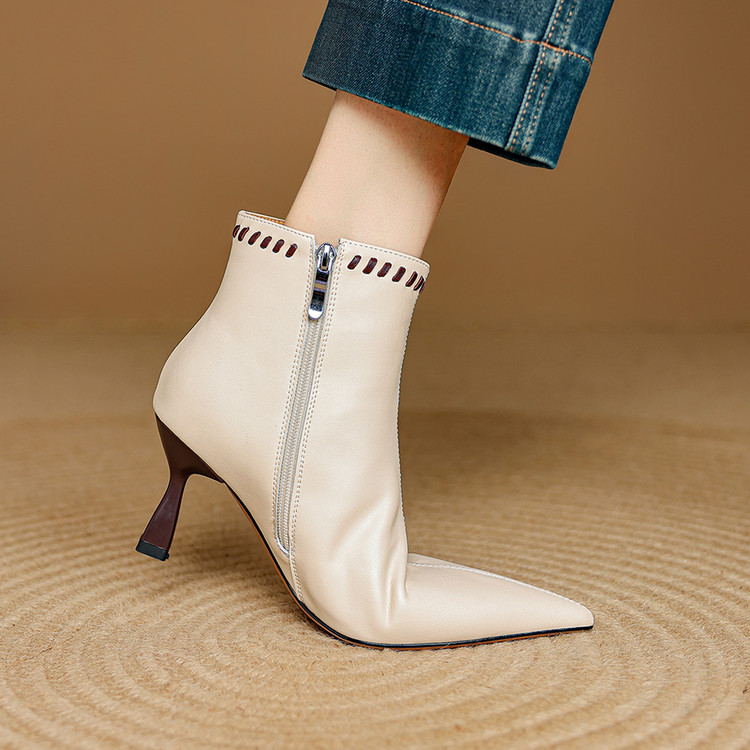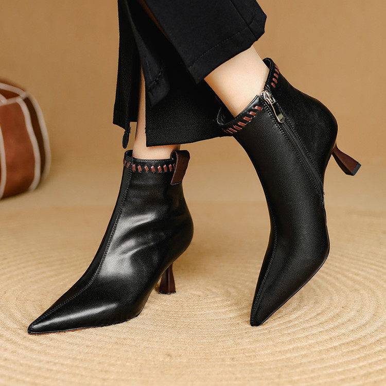 【货号】M6579【面料】羊皮【内里】猪皮里/绒里【垫脚】猪皮垫/绒垫【鞋底】牛筋底【跟高】7cm【颜色】黑色 米白色【尺码】34-40(大小定制不退换)
