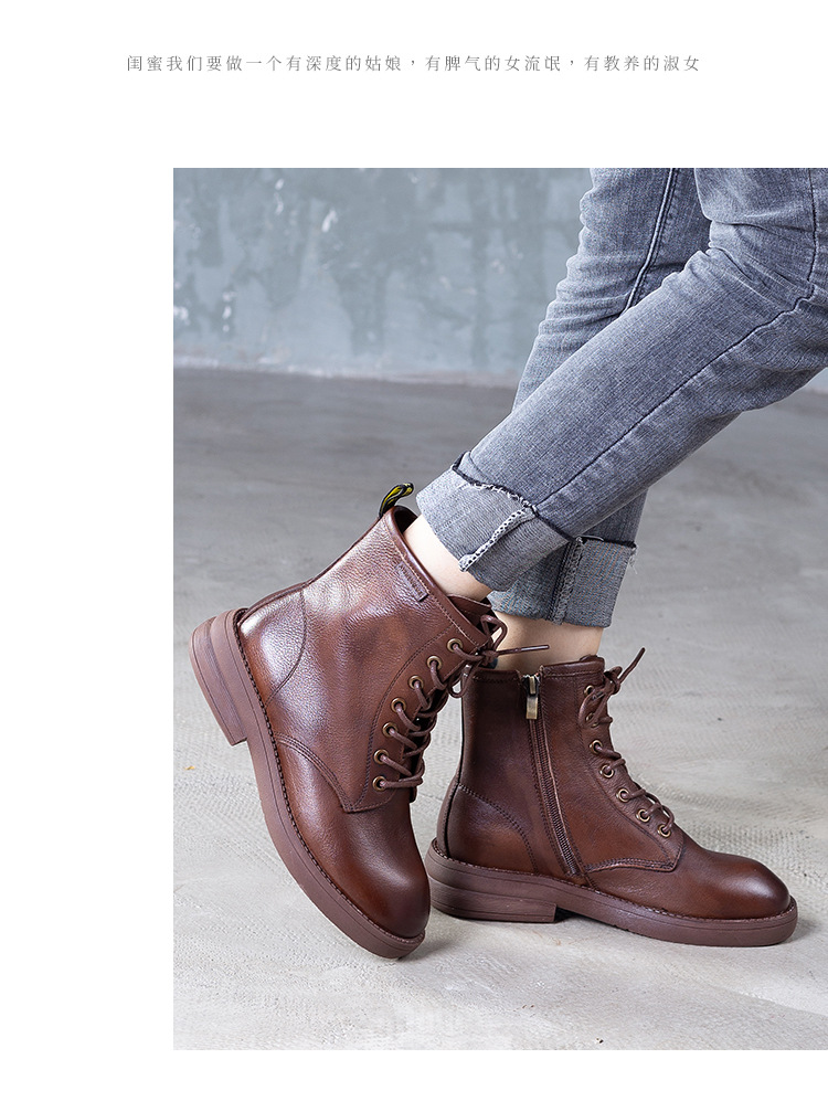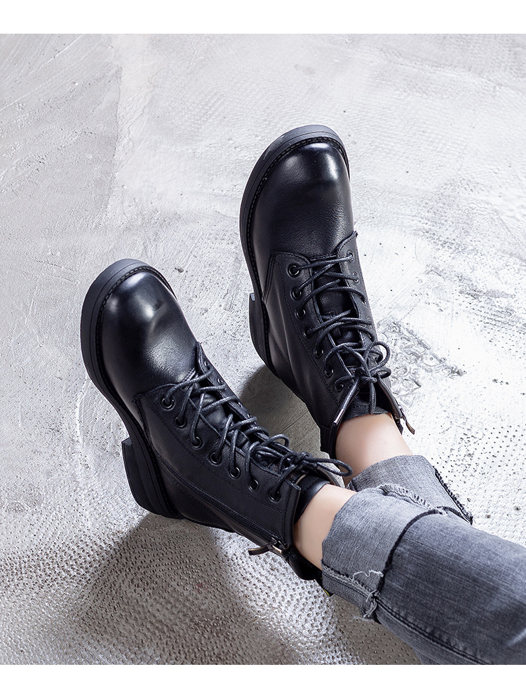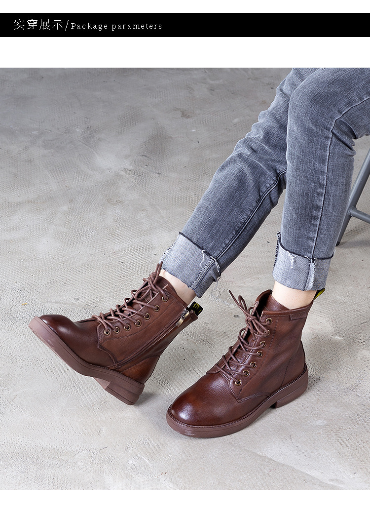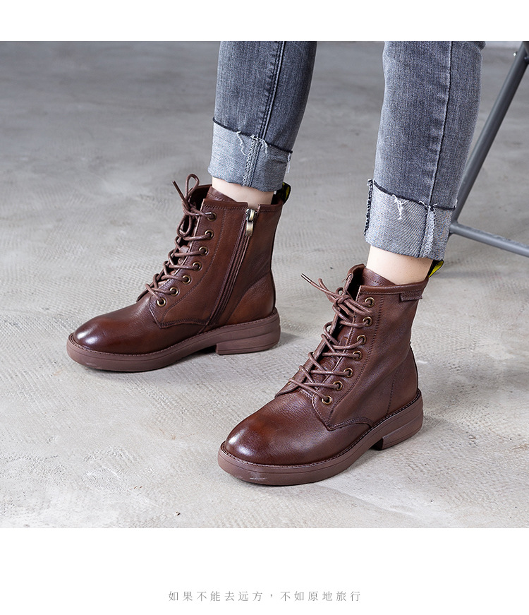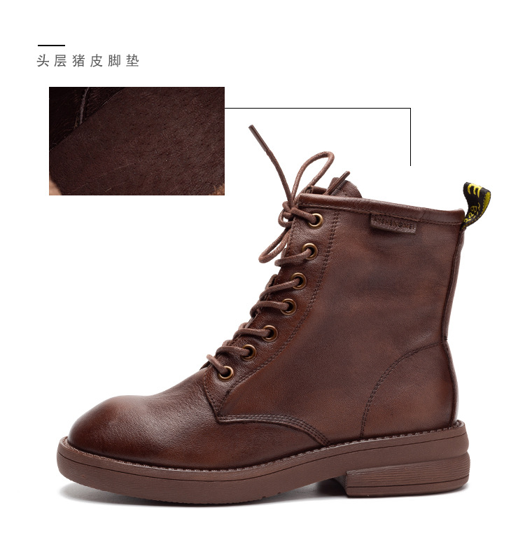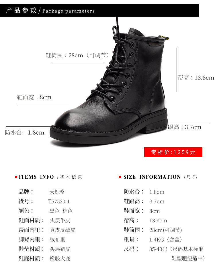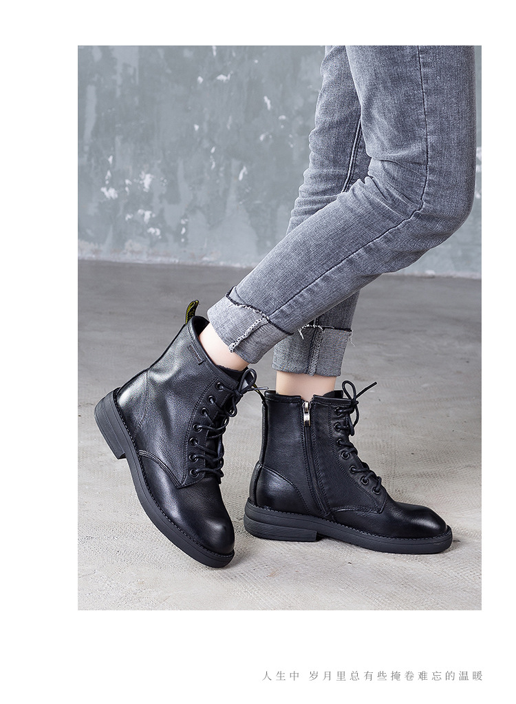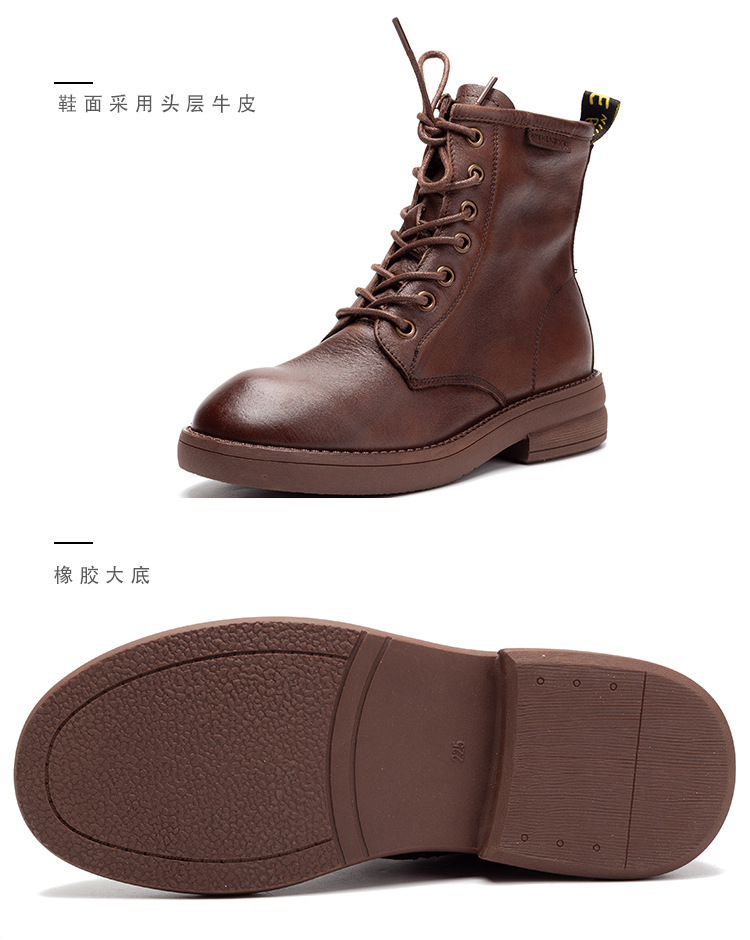 TNG-T57520-1女靴2020秋冬新款系带马丁靴头层牛皮短靴