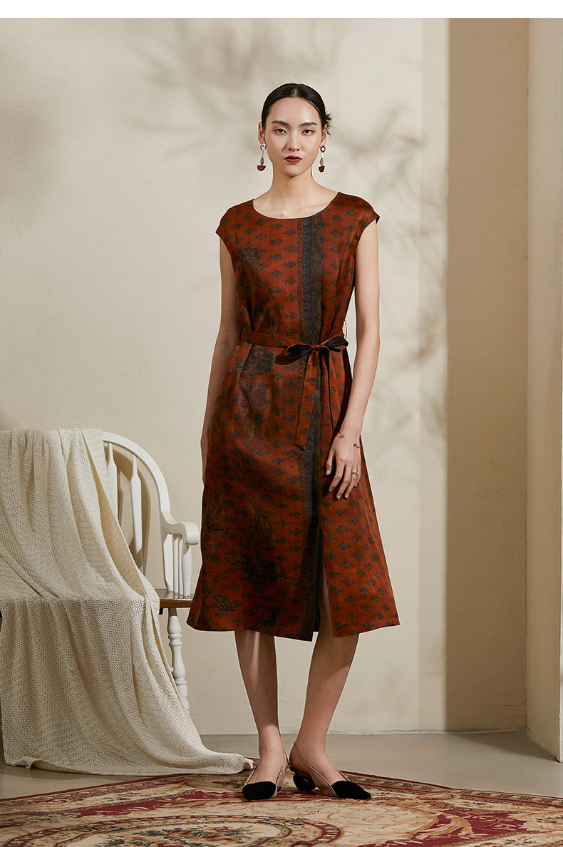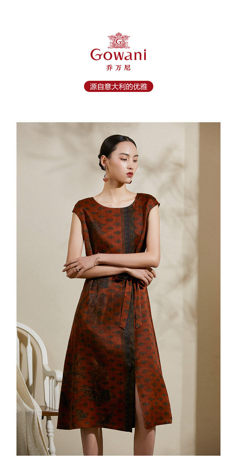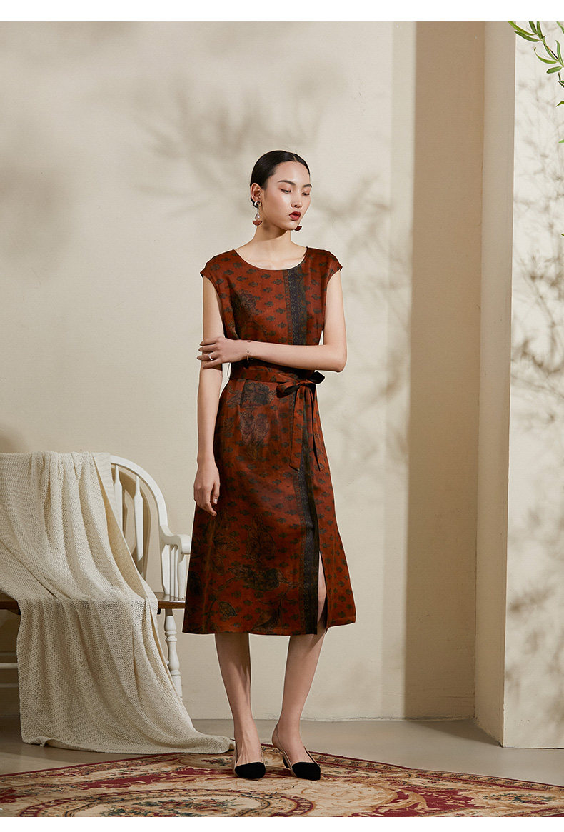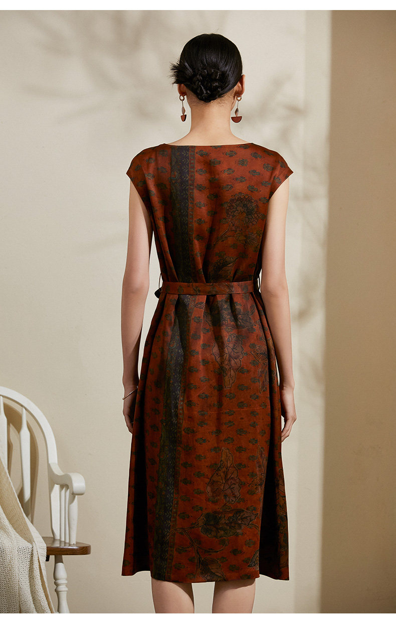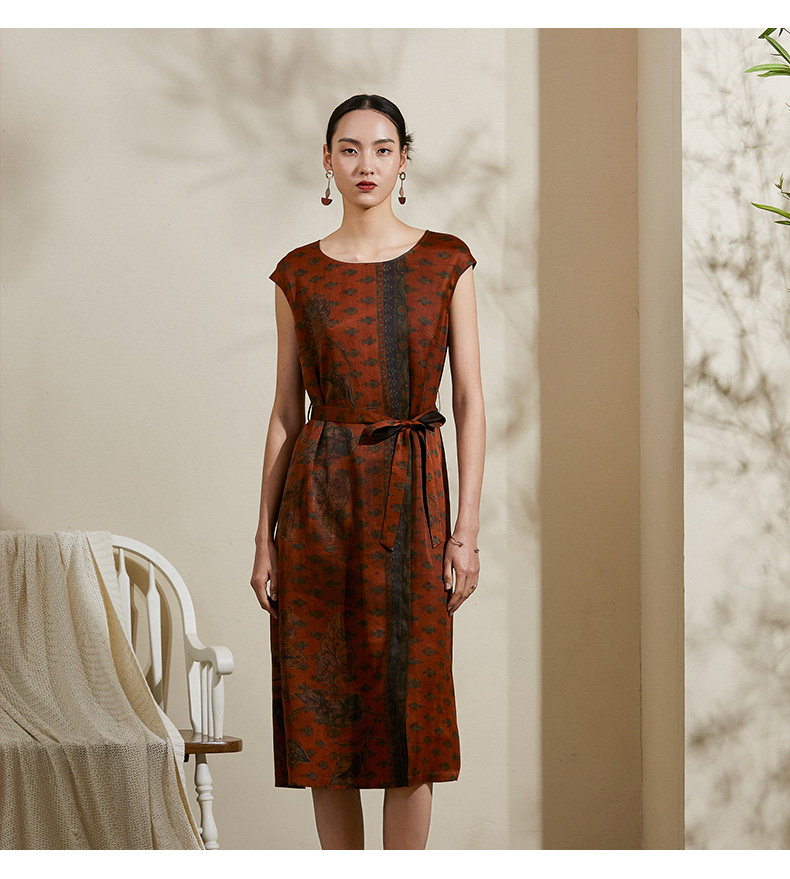 【峰蜡色波普几何】【香云纱】乔万尼夏季桑蚕丝真丝连衣裙16mm复古优雅印花裙子ES2E105