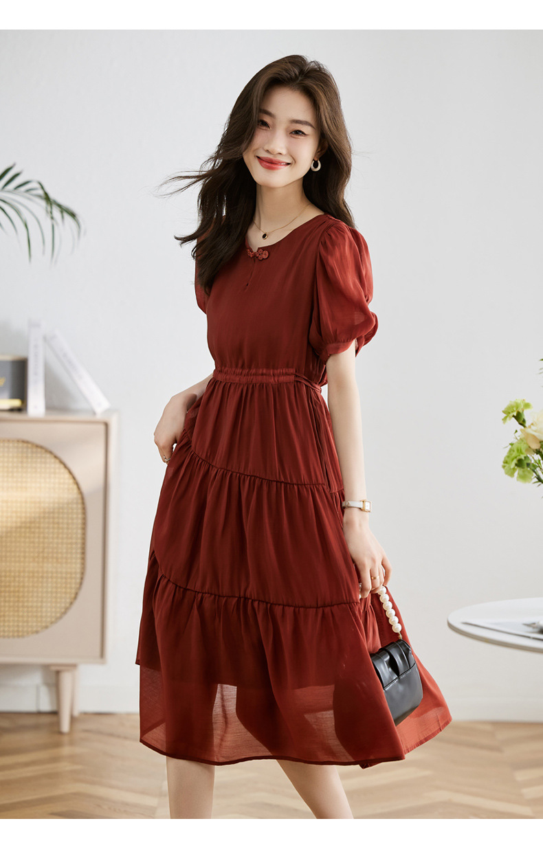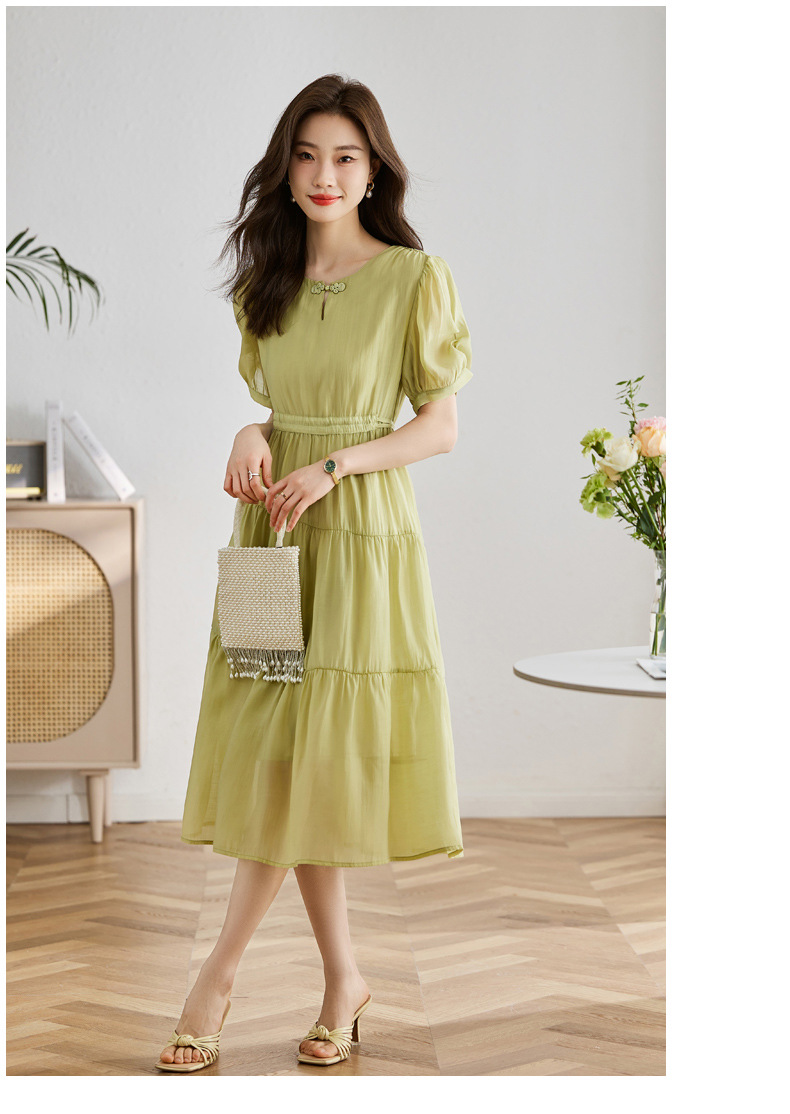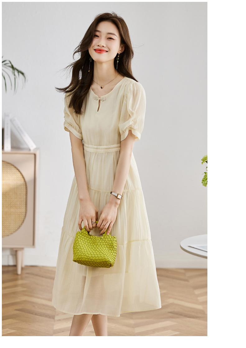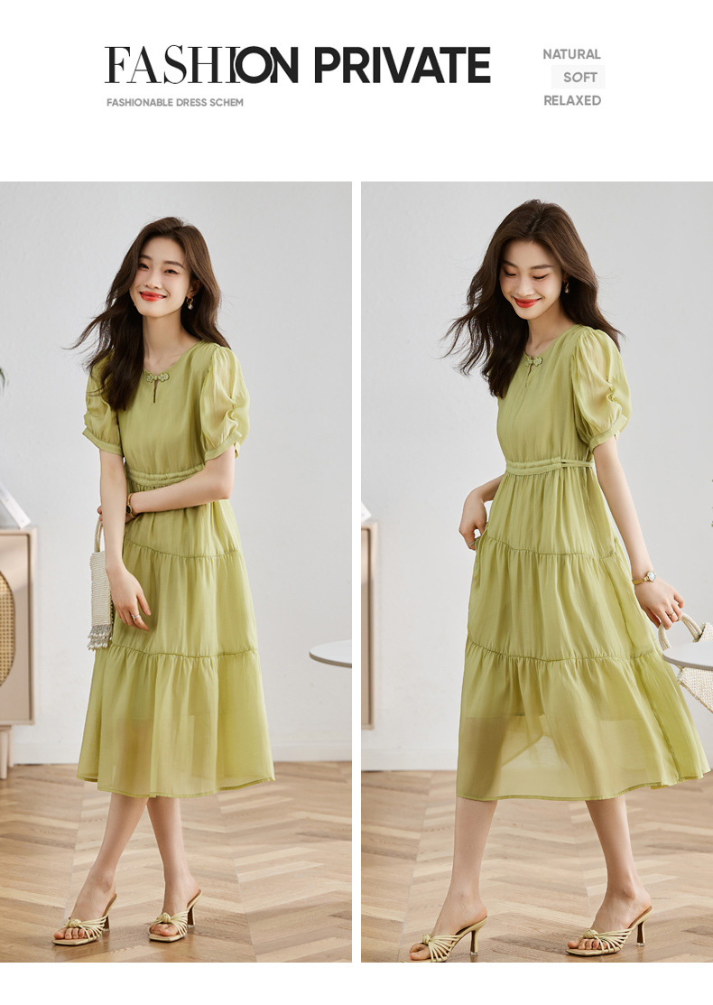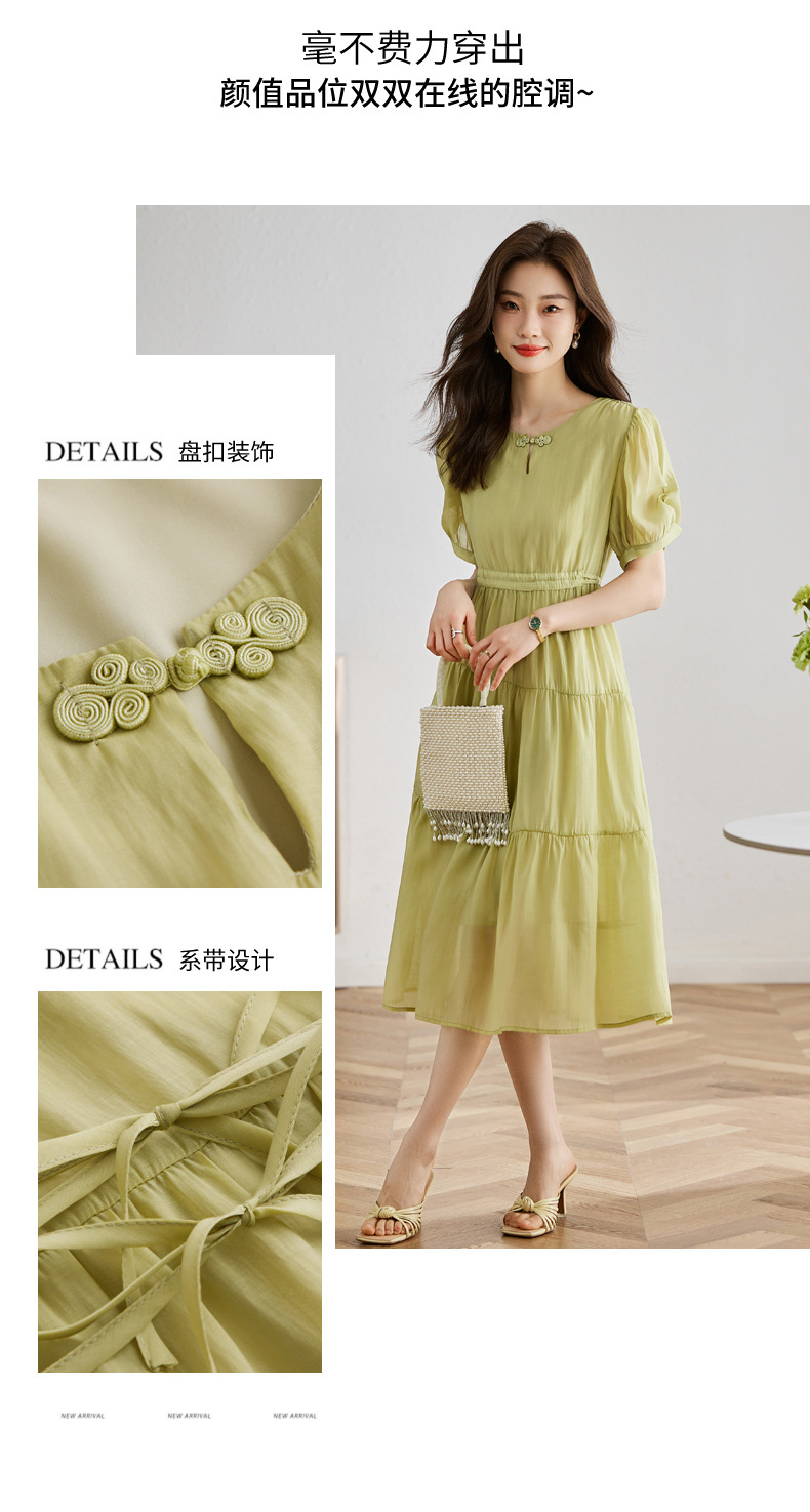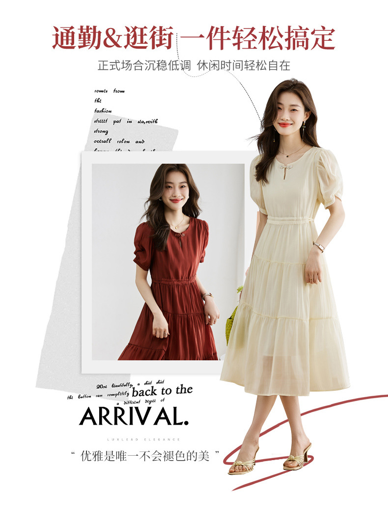 泡泡袖时尚轻熟风,优雅气质法式天丝连衣裙HR-CPYY2381