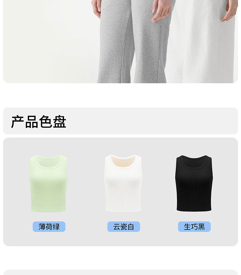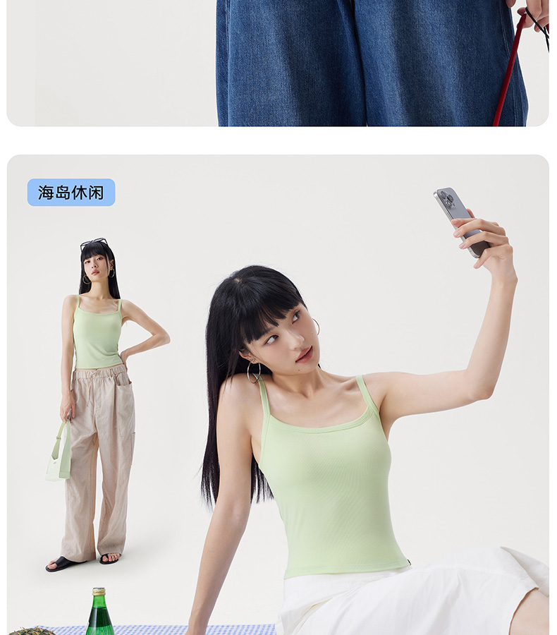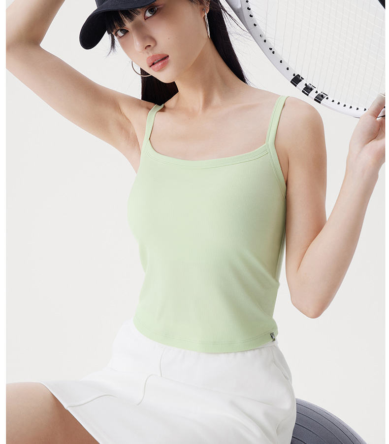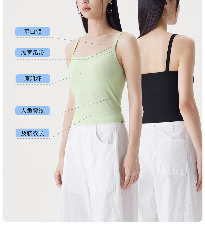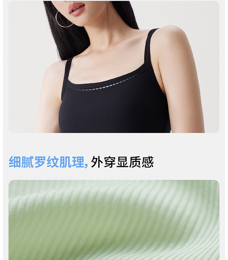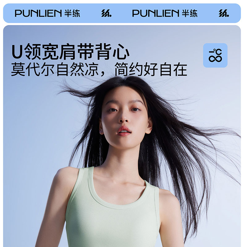 半练 冷气团清凉系列吊带凉感莫代尔内置胸垫平口罗纹吊带+U领无袖背心