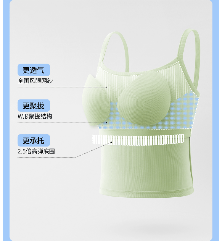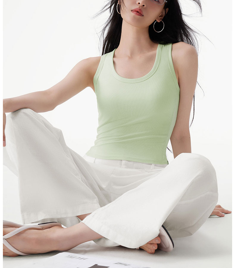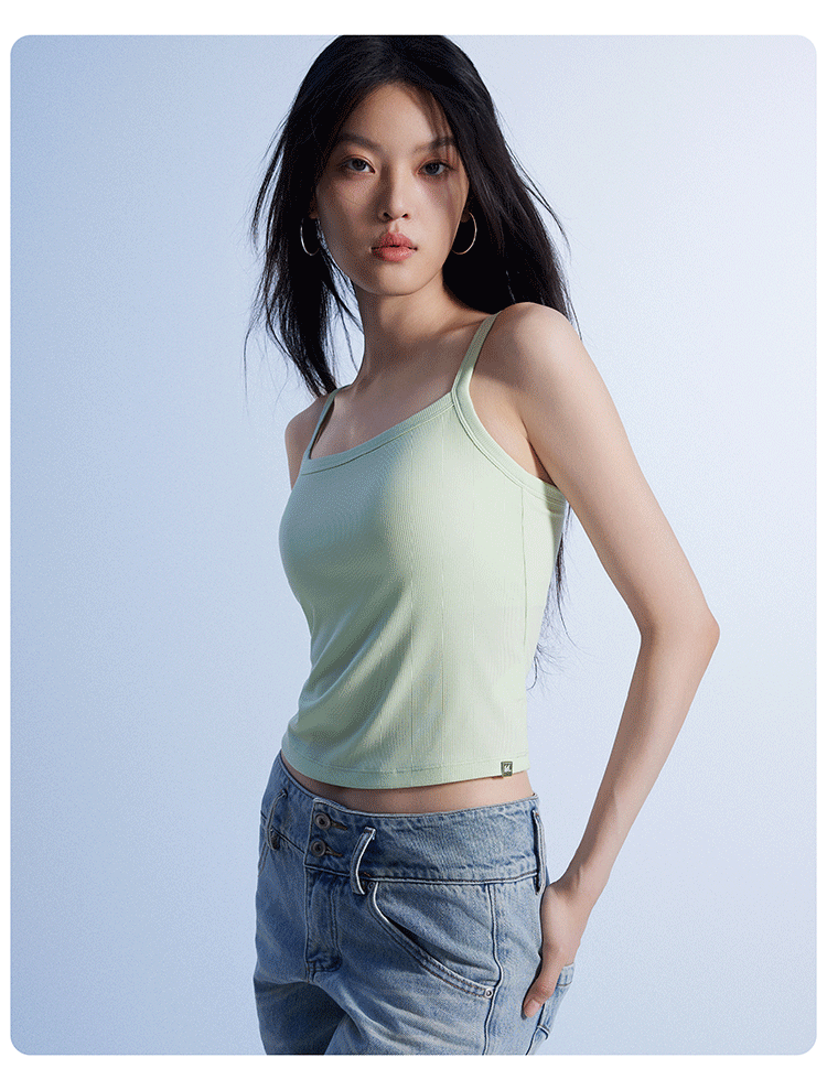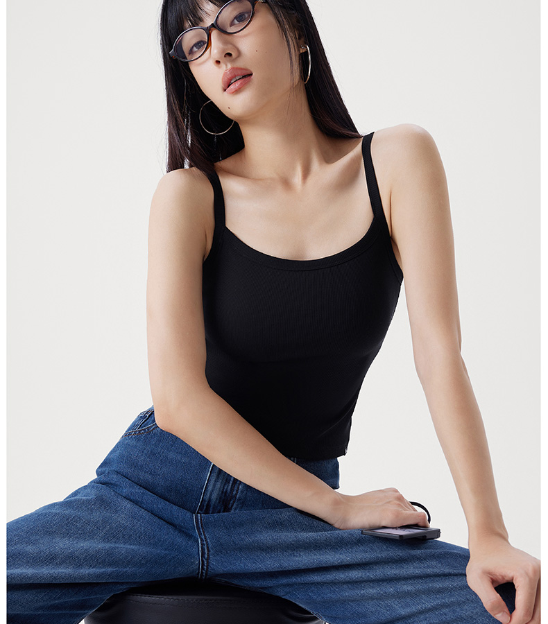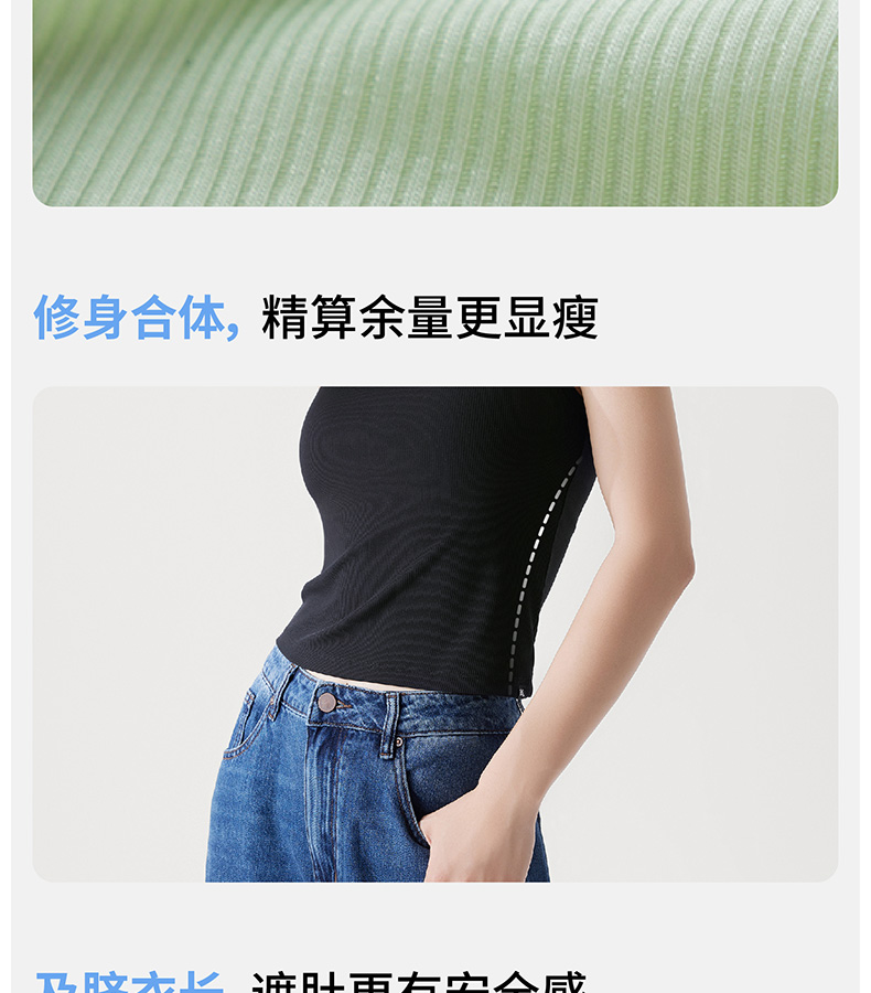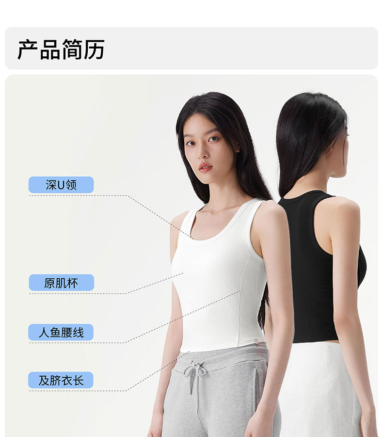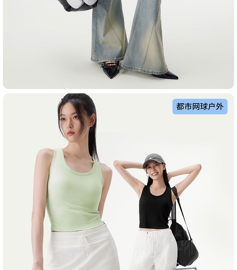 半练 冷气团清凉系列吊带凉感莫代尔内置胸垫平口罗纹吊带+U领无袖背心