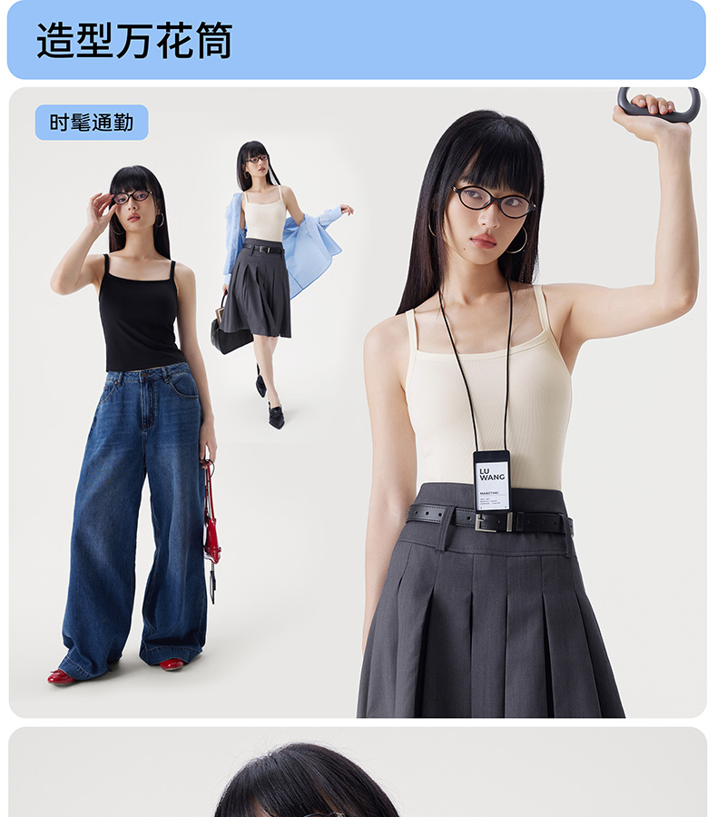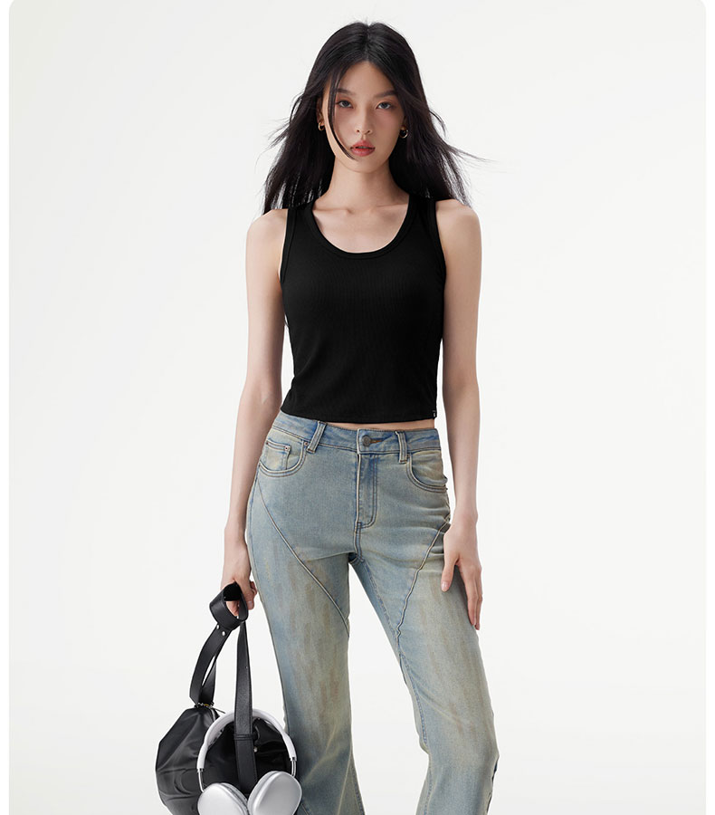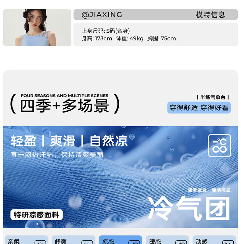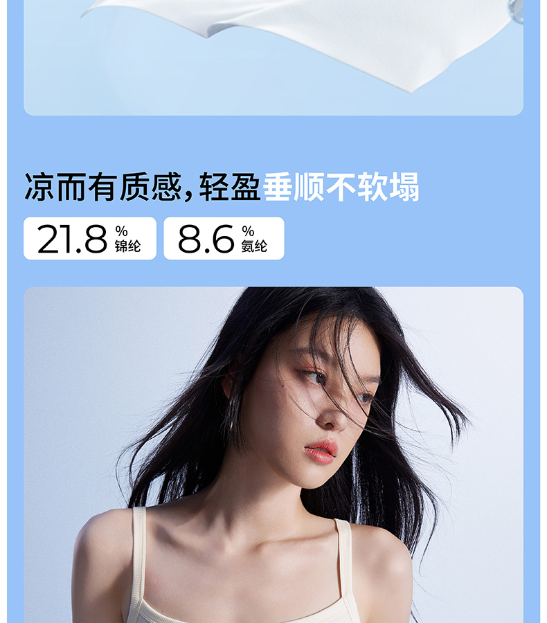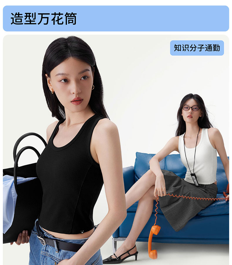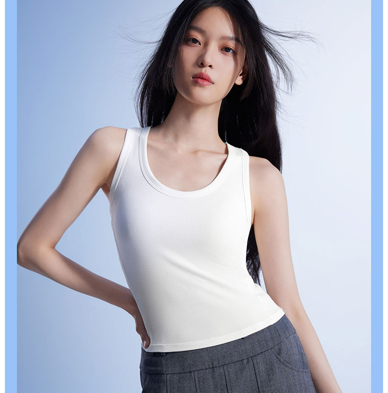 半练 冷气团清凉系列吊带凉感莫代尔内置胸垫平口罗纹吊带+U领无袖背心