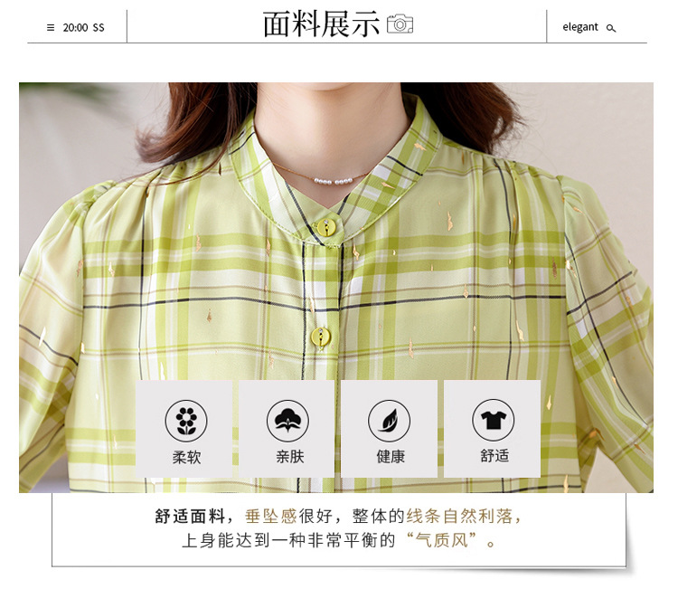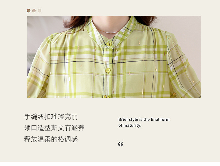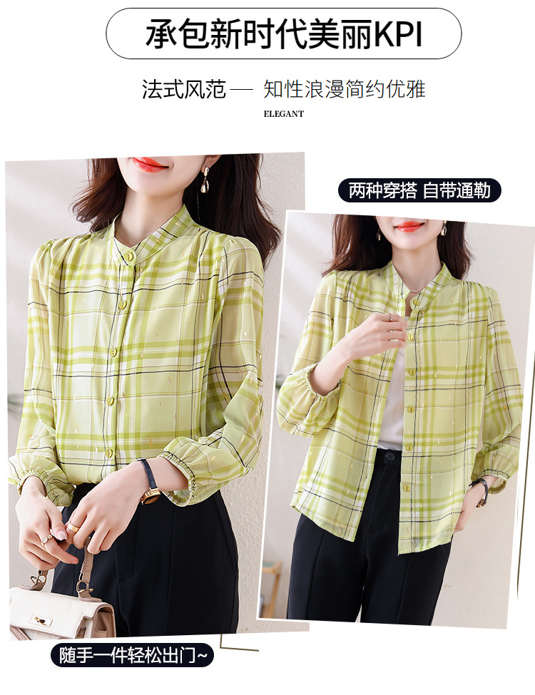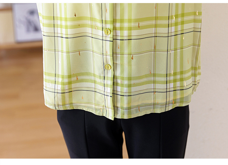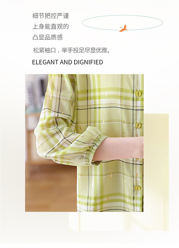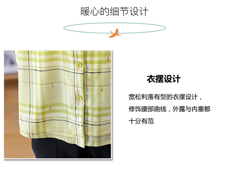 KQL E324N1407时尚桑络丝格子衬衣减龄防晒开衫气质上衣