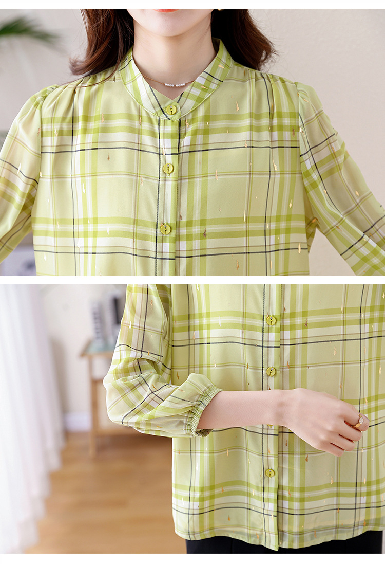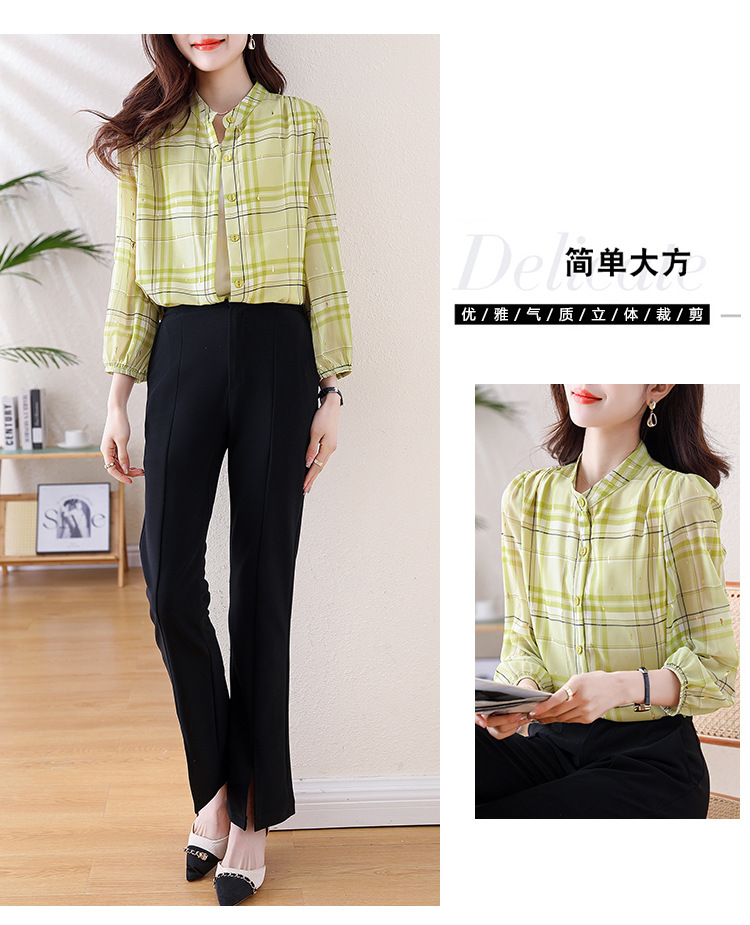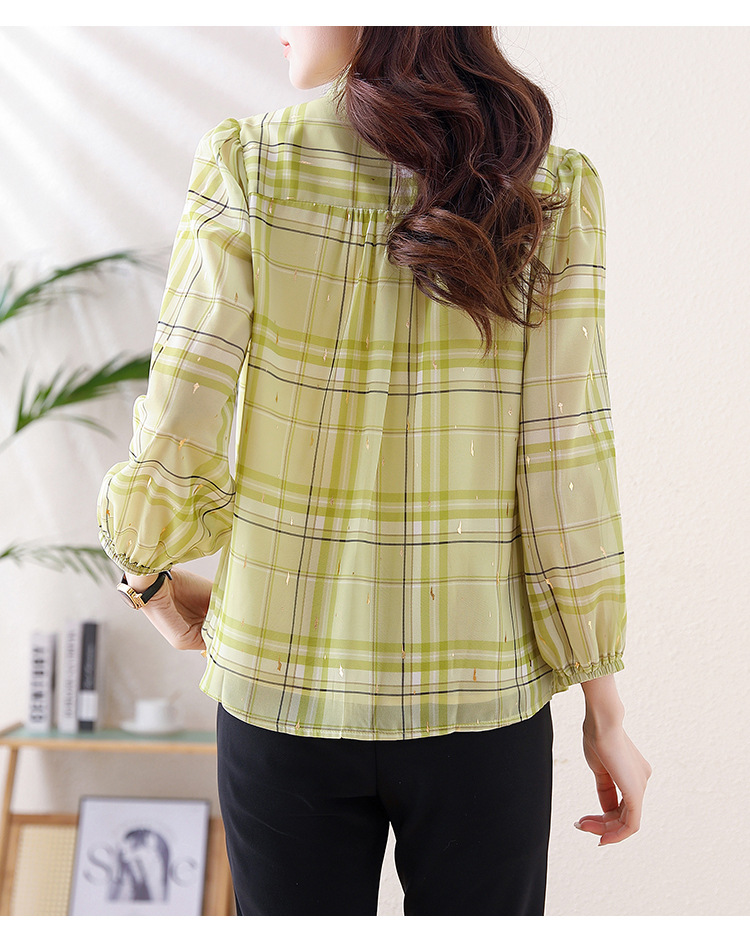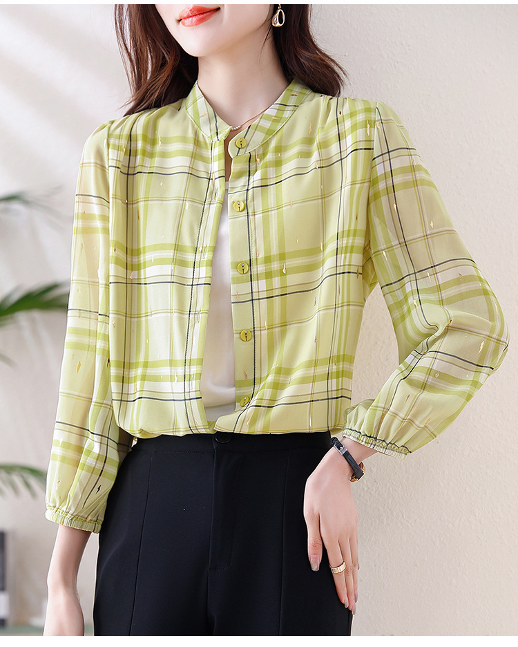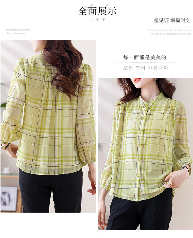 KQL E324N1407时尚桑络丝格子衬衣减龄防晒开衫气质上衣