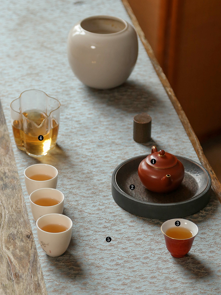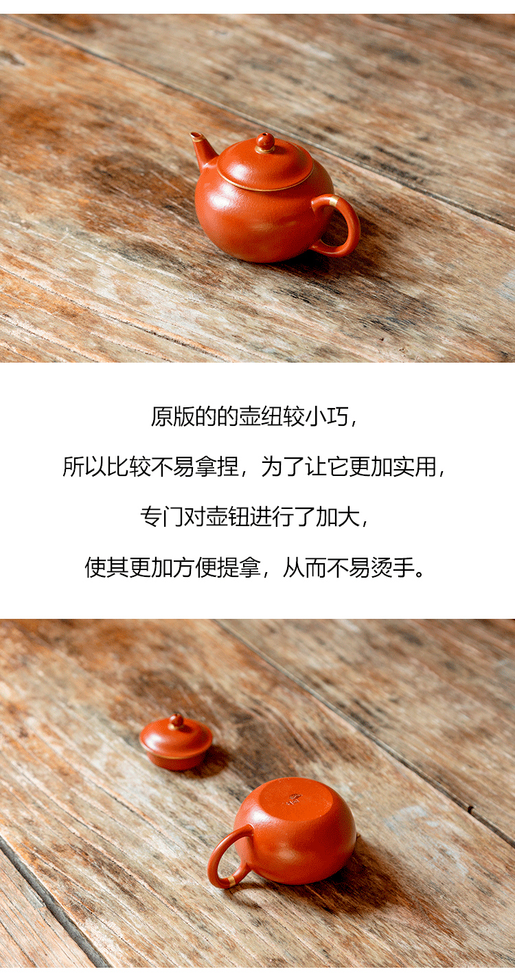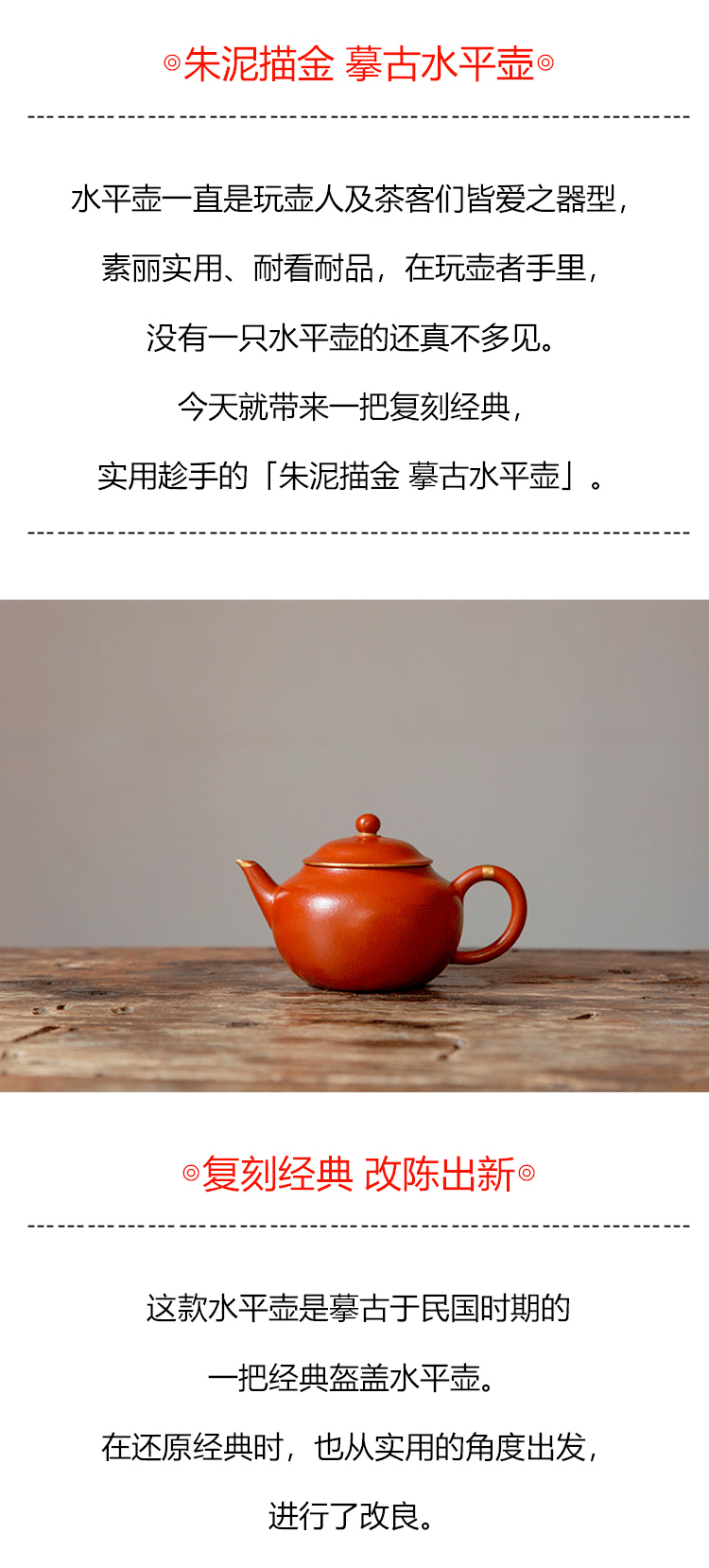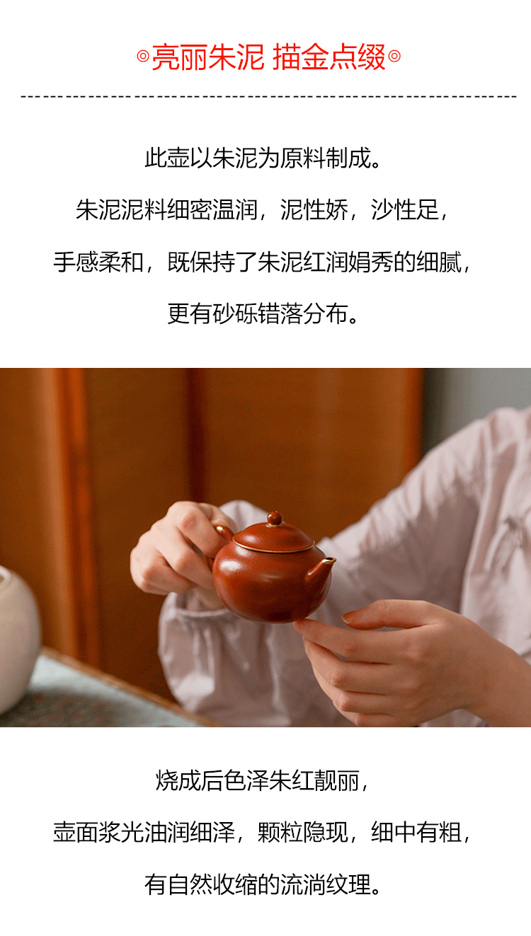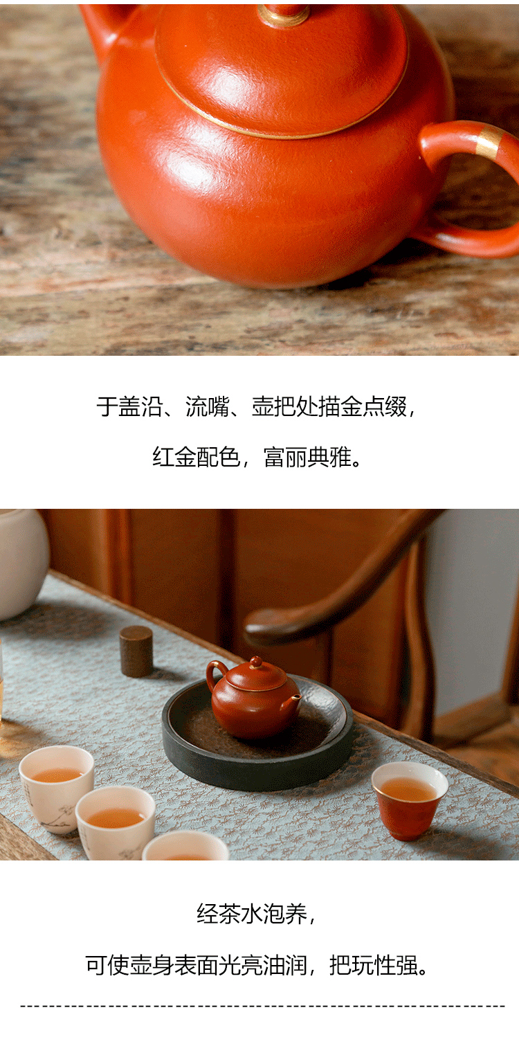 茶香记 紫砂壶 朱泥描金 摹古水平壶 经典器型 原矿朱泥 红润细腻