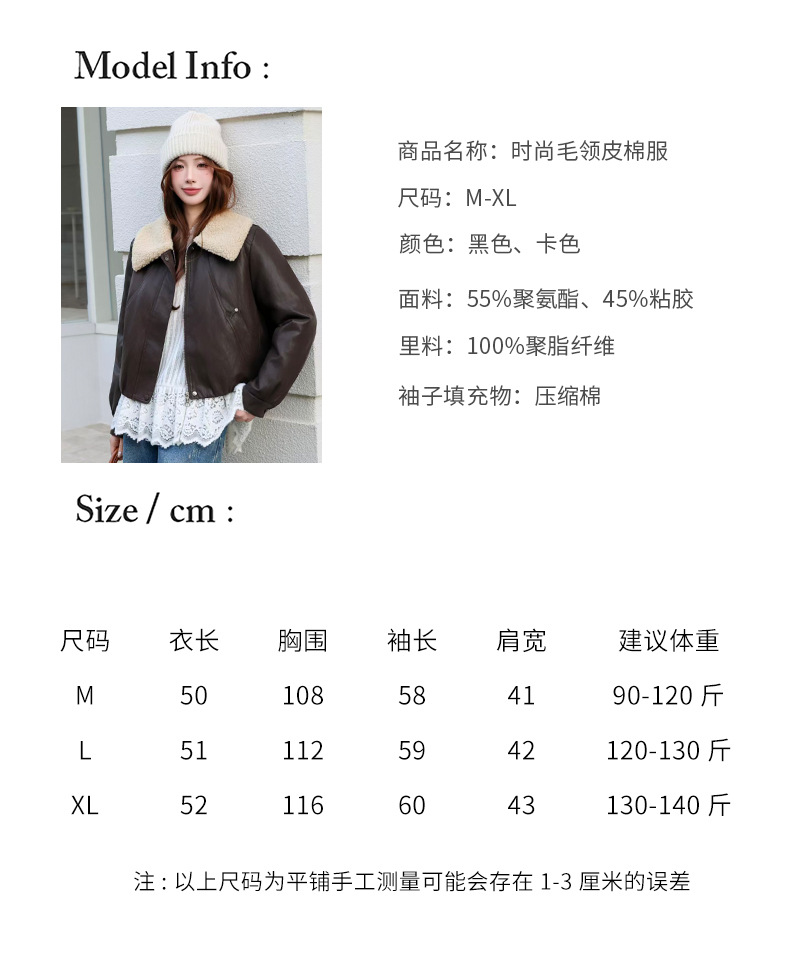 HR YYG83021街头风外套时尚休闲加棉保暖皮衣皮棉夹克 商品图0