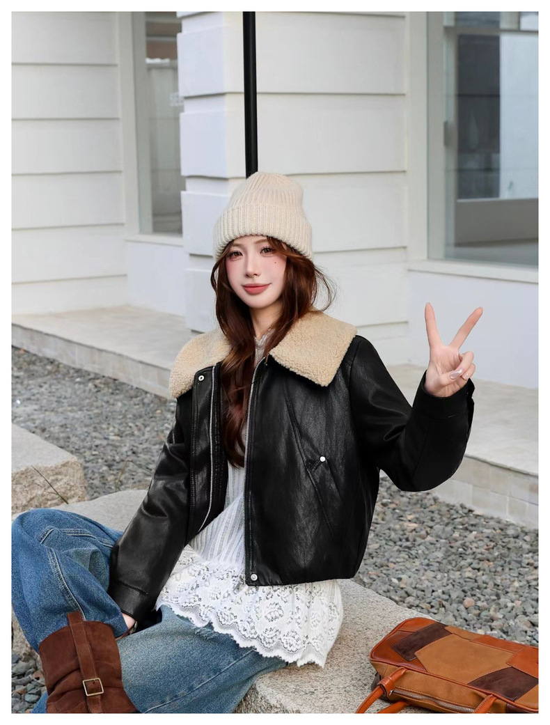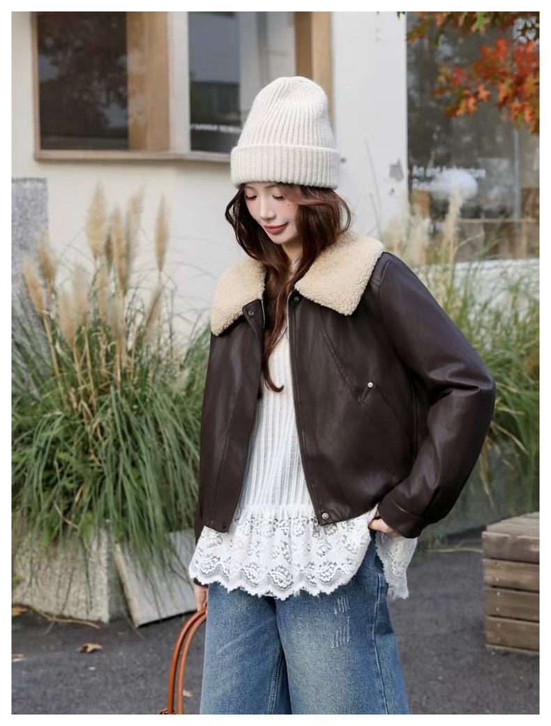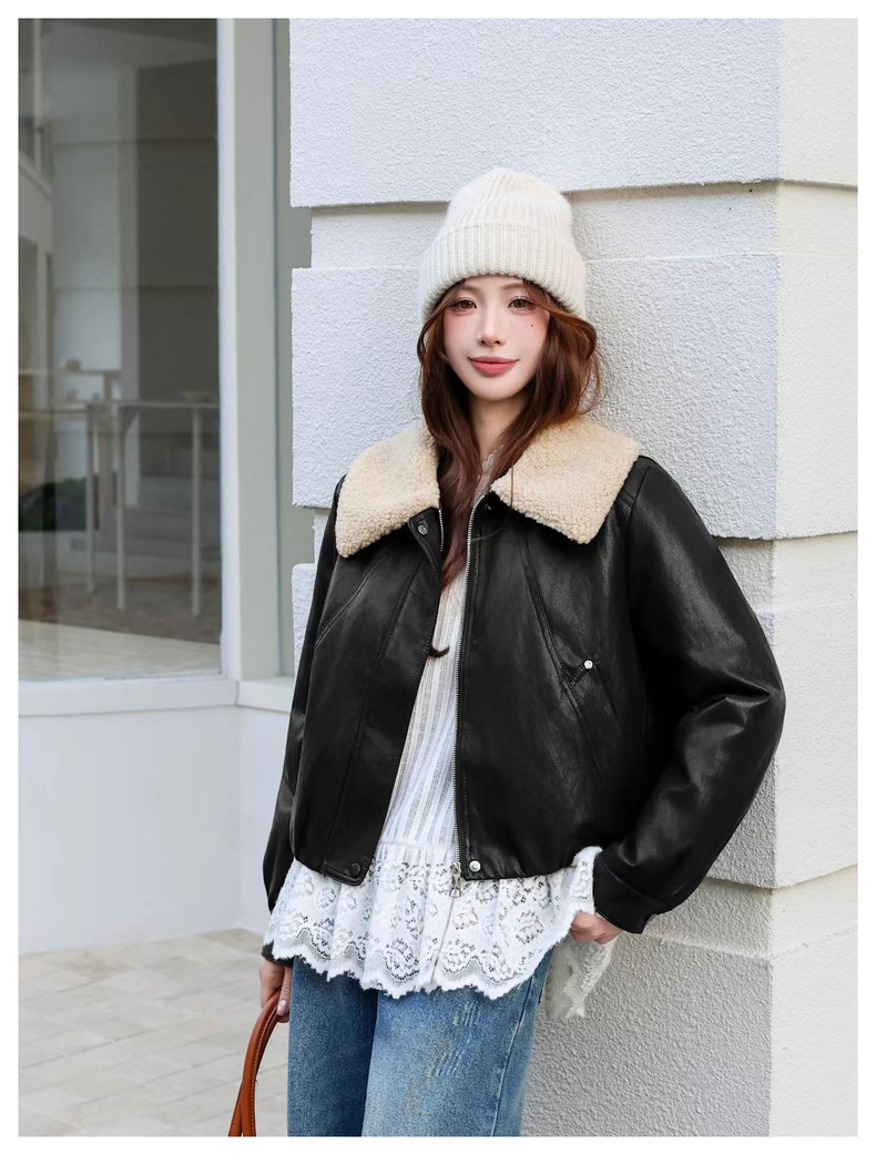 HR YYG83021街头风外套时尚休闲加棉保暖皮衣皮棉夹克 商品图1