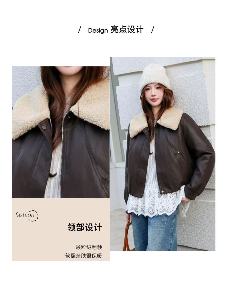 HR YYG83021街头风外套时尚休闲加棉保暖皮衣皮棉夹克 商品图3