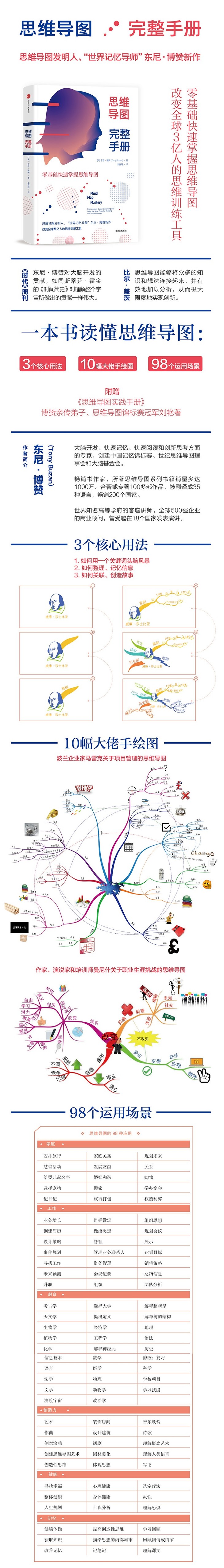 《思维导图完整手册》是东尼·博赞2018年的集大成之作,他基于思维导图的设计初衷和发展乱象,为读者呈现了一个原汁原味的思维导图。作者分析了思维导图的98个应用场景和3个核心用法: