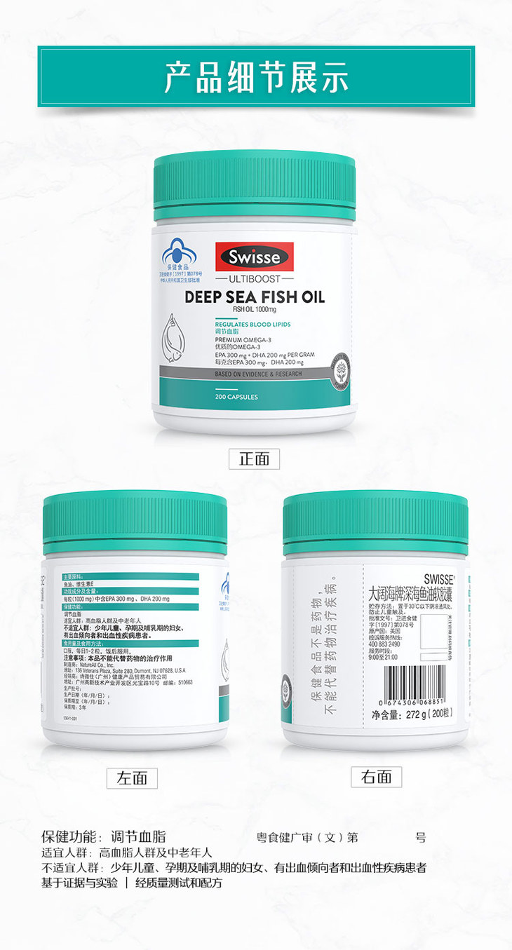 200粒swisse大阔海牌深海鱼油软胶囊