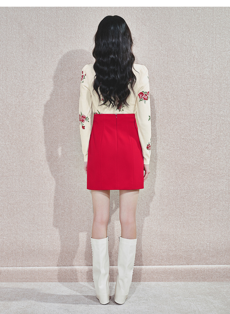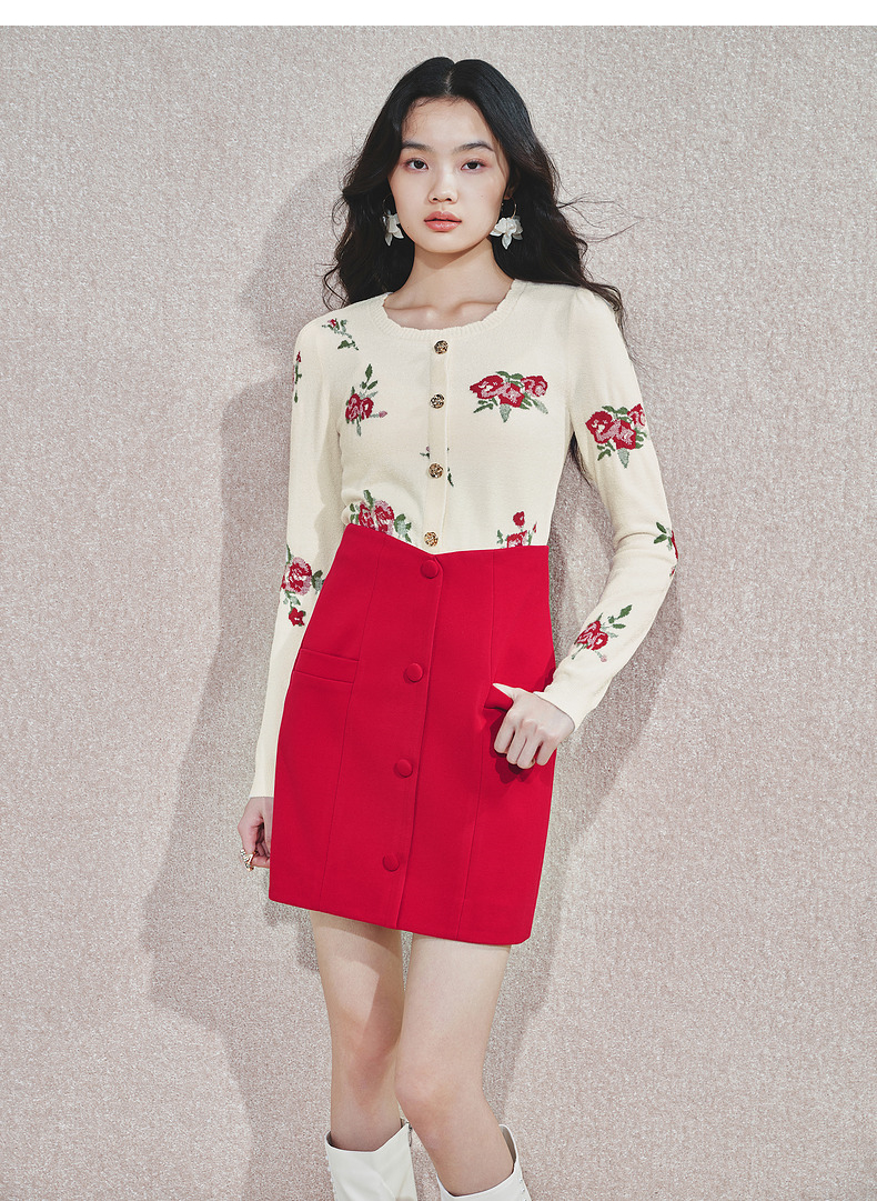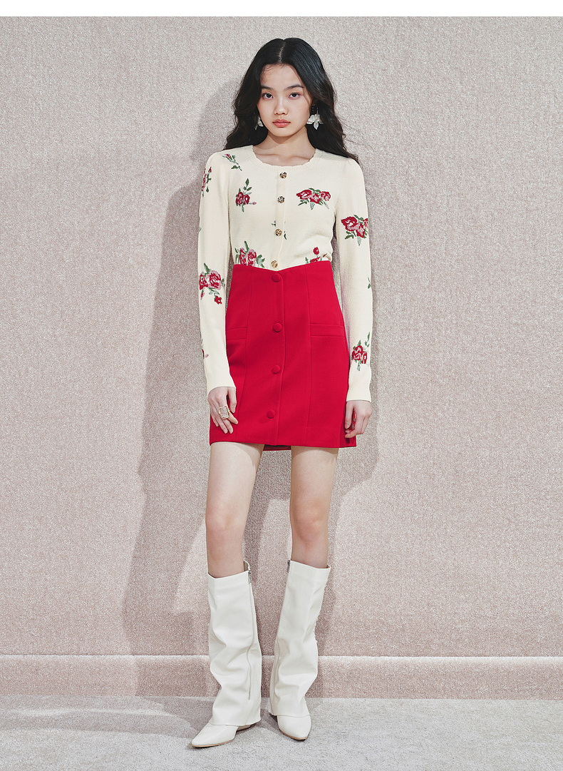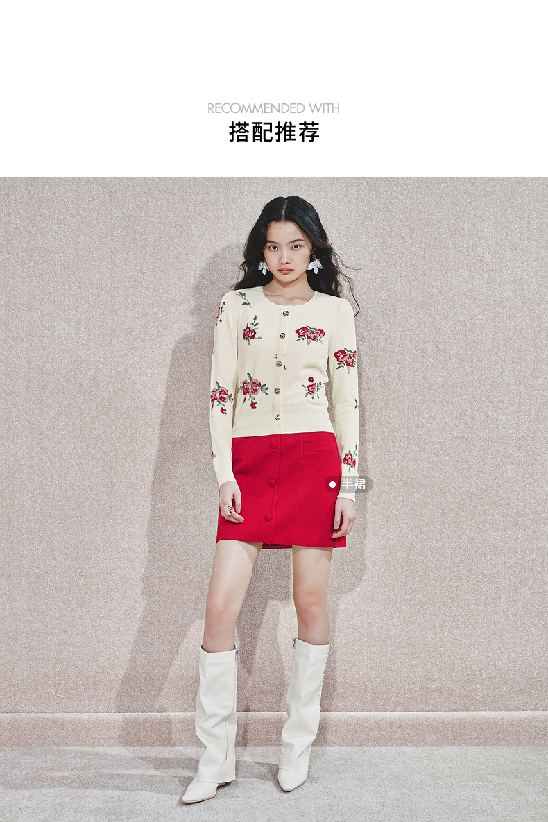 MAXRIENY2025秋冬新年红系列浪漫优雅感提花刺绣长袖显瘦针织上衣(货号:MS85SW752)