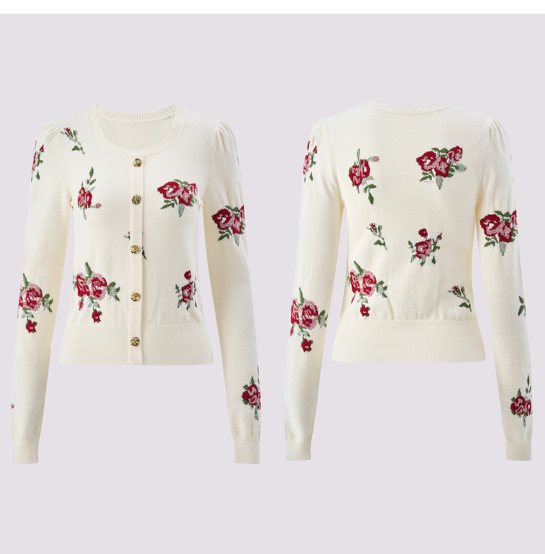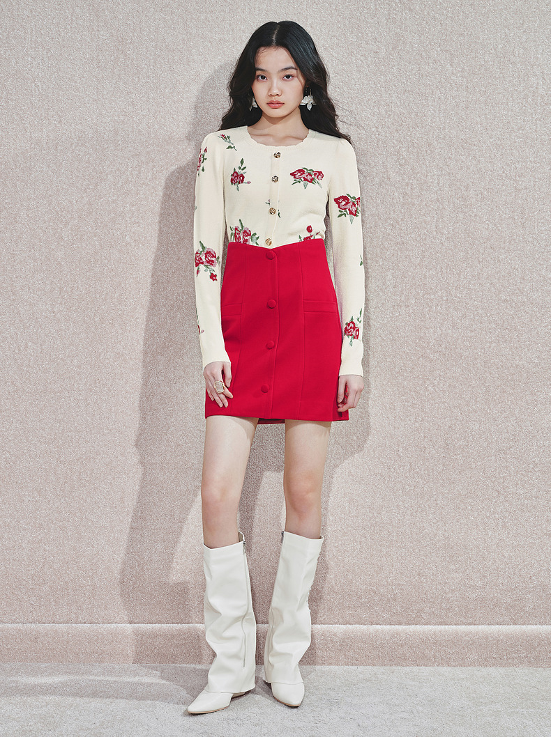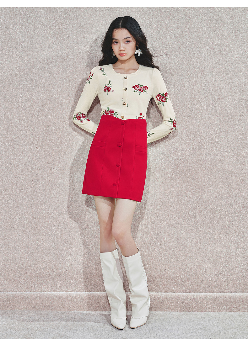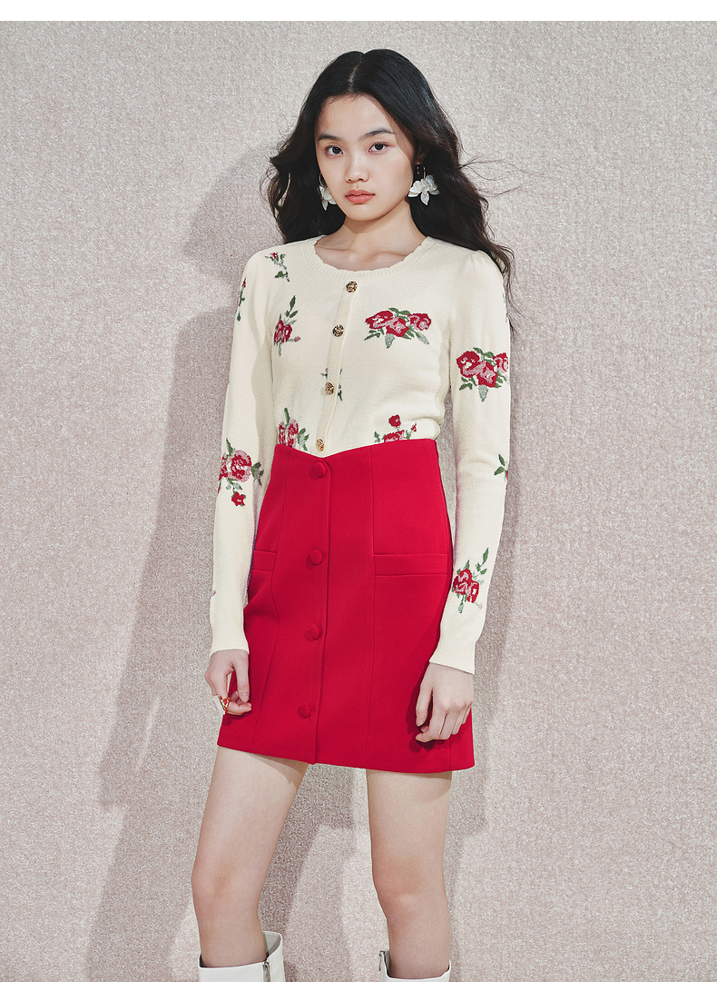 MAXRIENY2025秋冬新年红系列浪漫优雅感提花刺绣长袖显瘦针织上衣(货号:MS85SW752)
