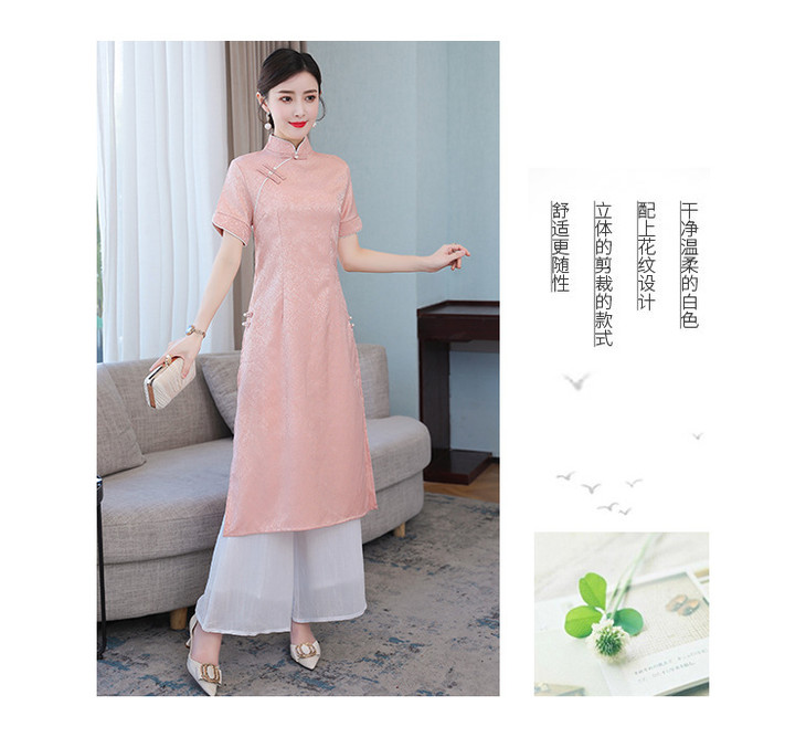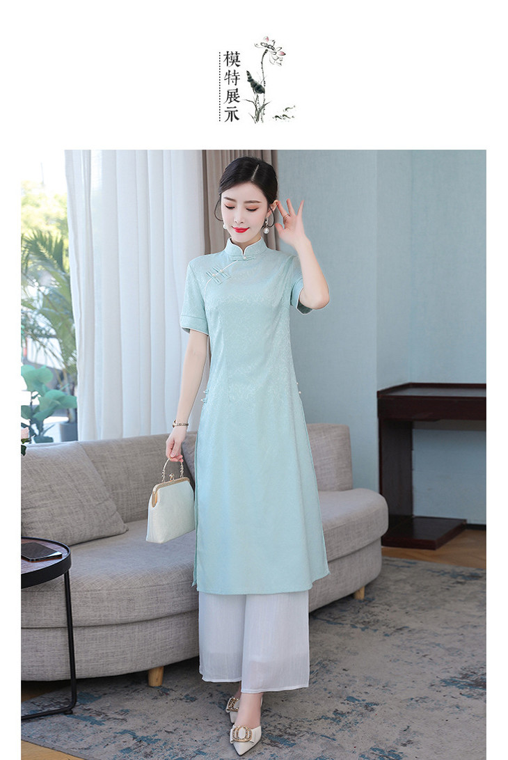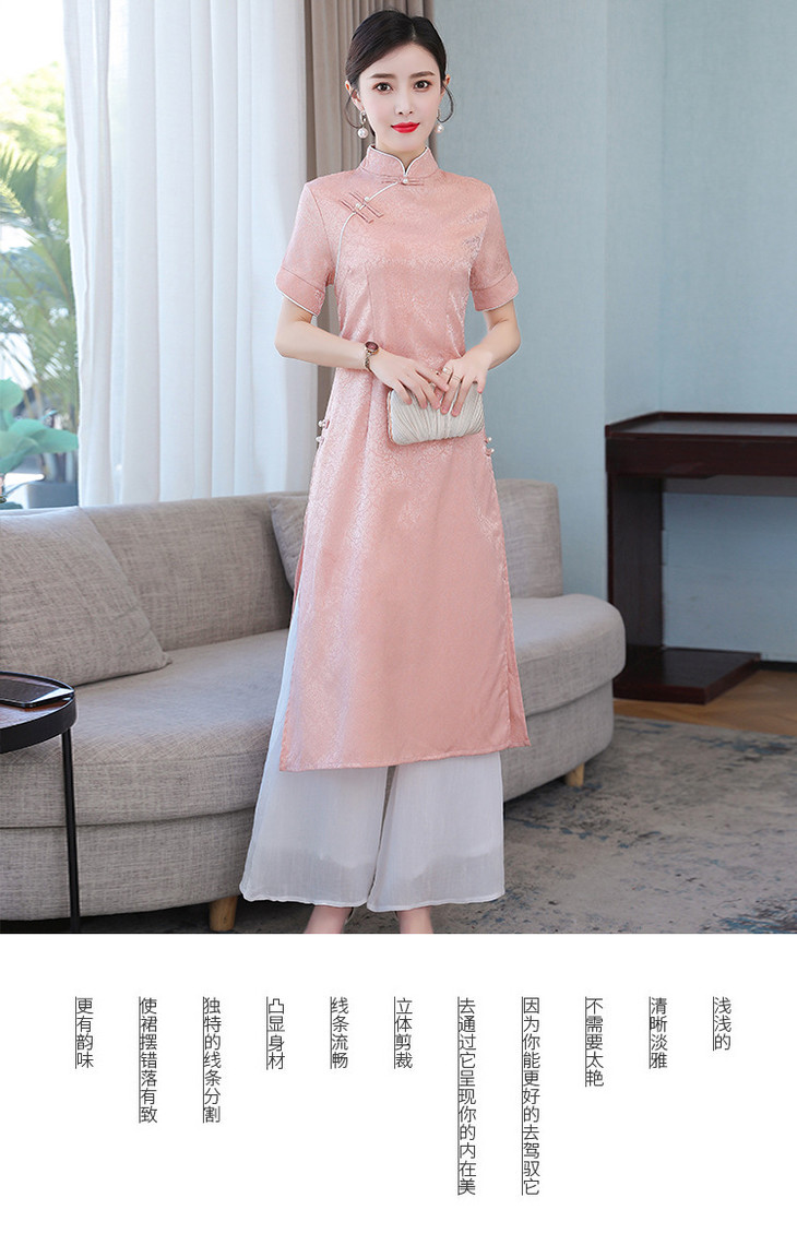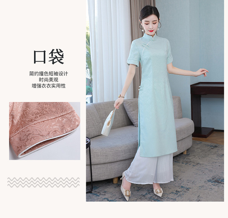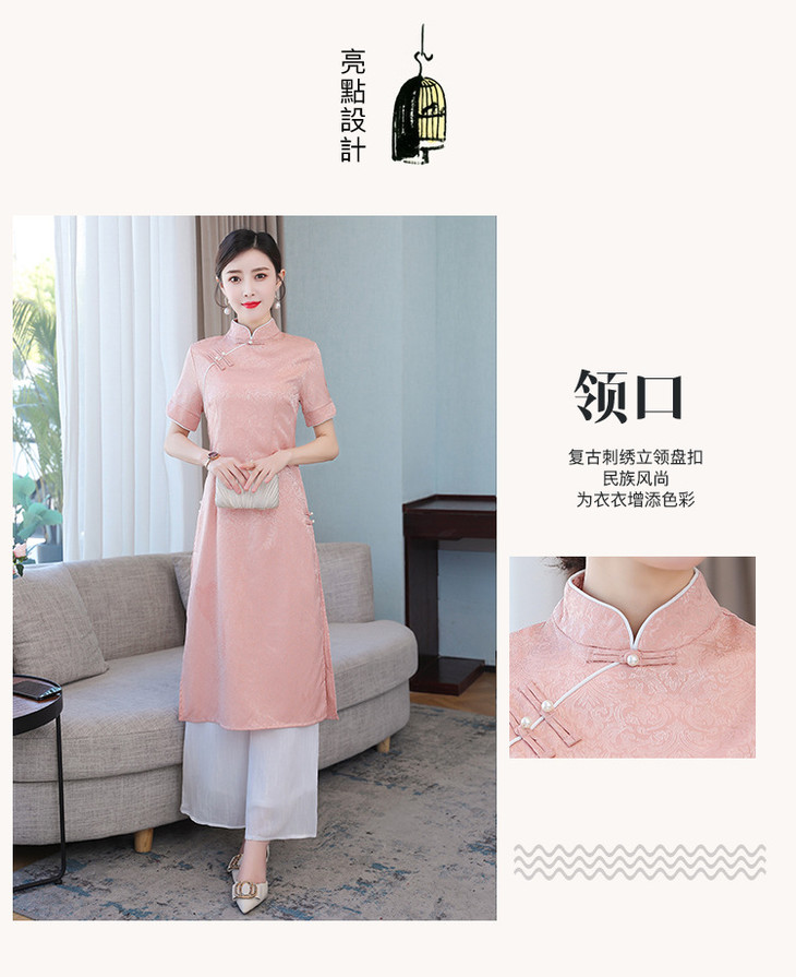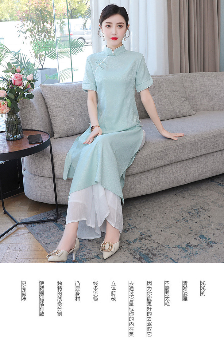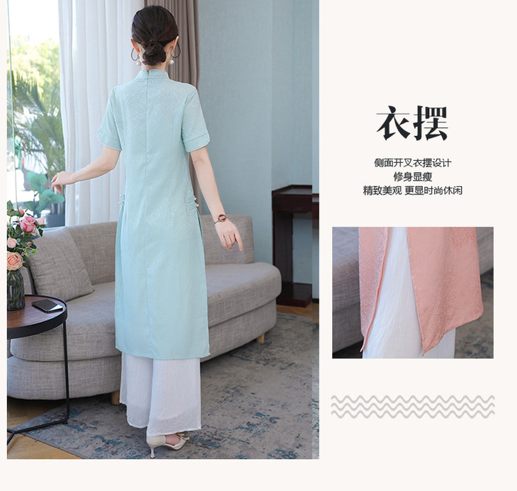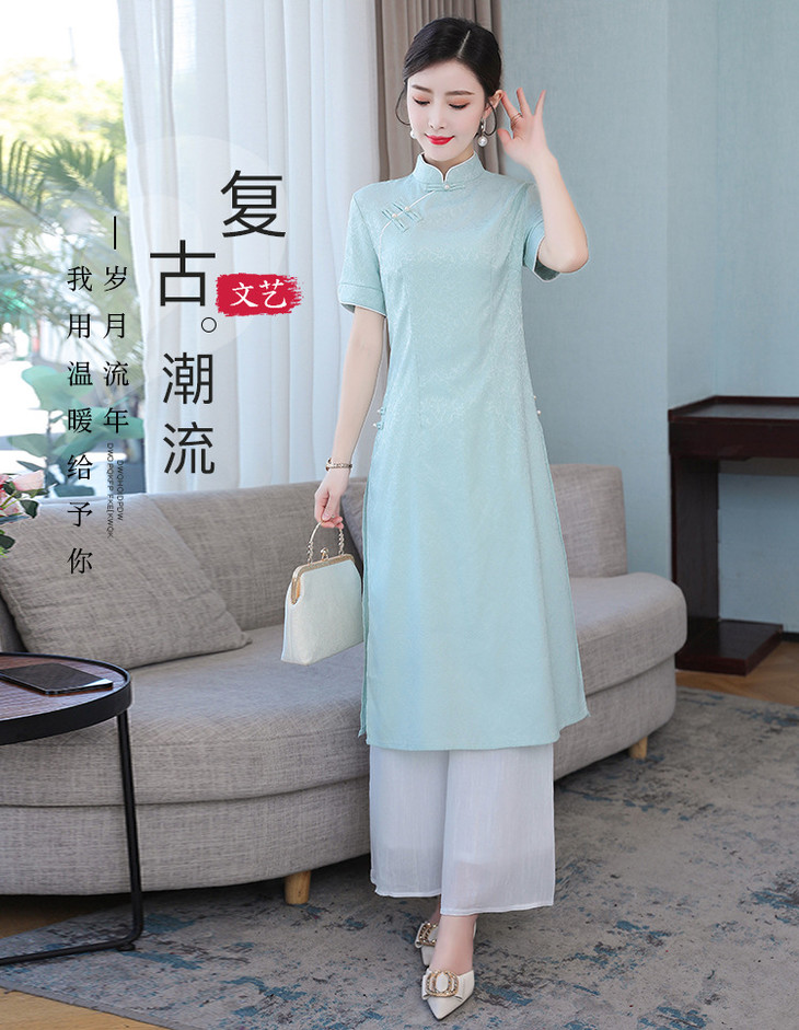 XY9181 2021夏季新款女装连衣裙改良旗袍复古禅意茶服阔腿裤两件套