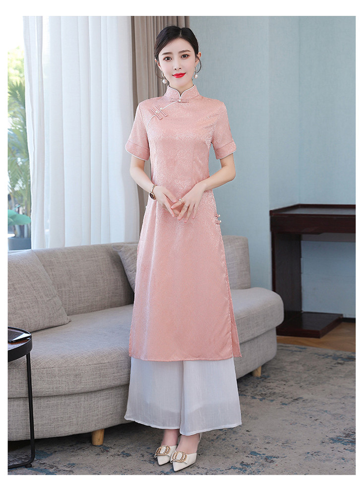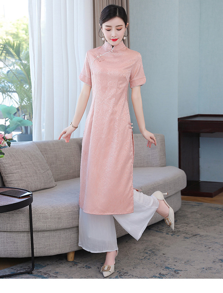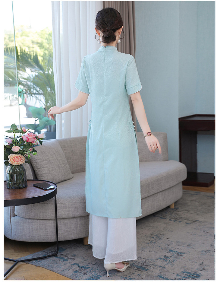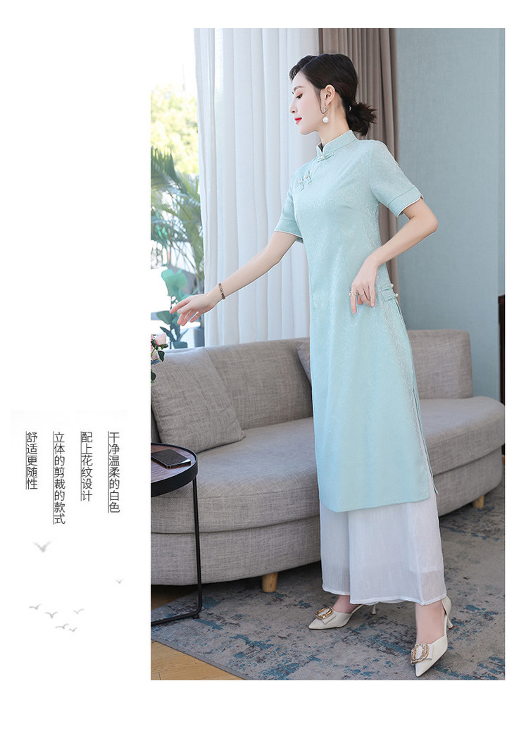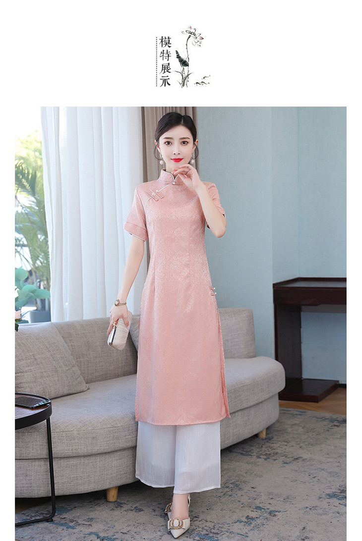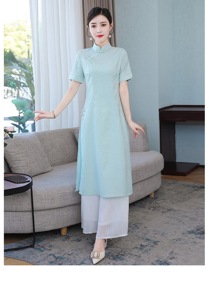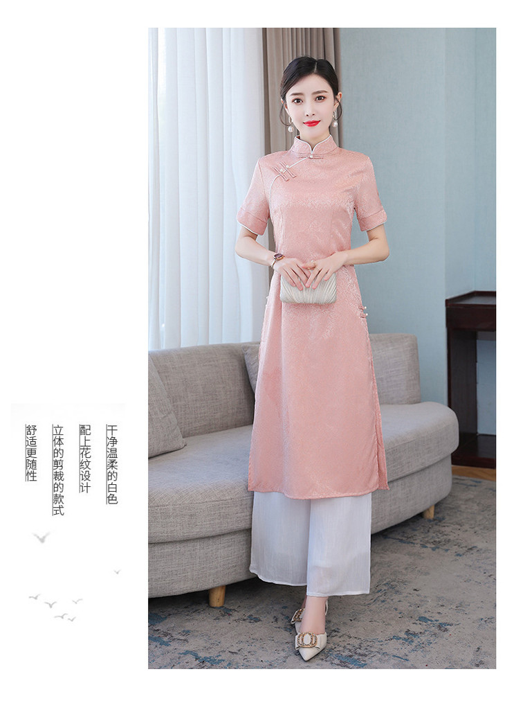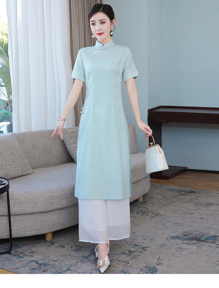 XY9181 2021夏季新款女装连衣裙改良旗袍复古禅意茶服阔腿裤两件套