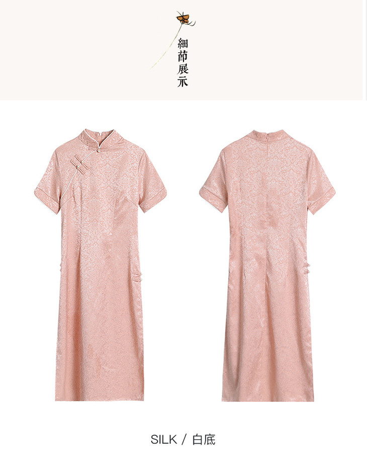 ZA1130高档重磅真丝香云纱双层长款长袖旗袍裙
