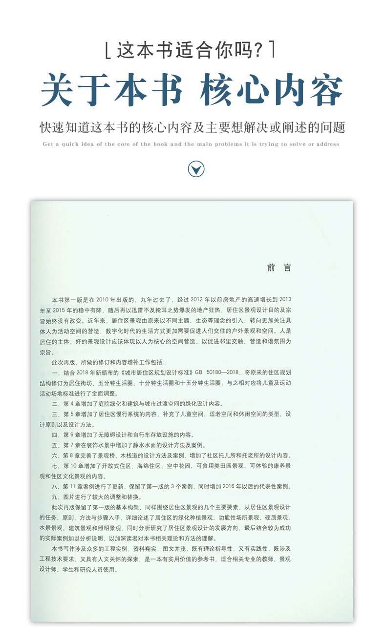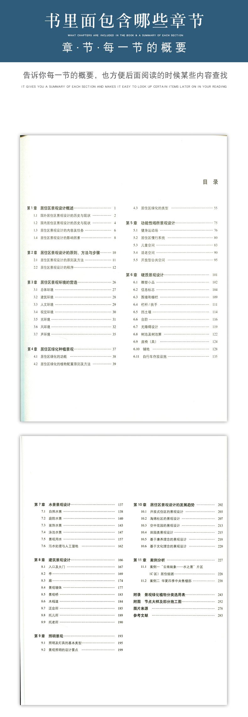 本书从居住区景观设计角度入手,着重在绿化种植景观、功能性场所景观、硬质景观设计、水景设计、建筑景观设计、照明景观等设计要素上解析居住小区环境景观营造的方法,在一定程度上可以指导在小区景观设计知识方面的学习。并选取了当今国内优秀居住小区景观设计的典型案例,对实例的分析将有助于对知识的深入理解。