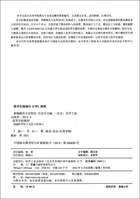 书名:高等学校教材:新编模具专业英语