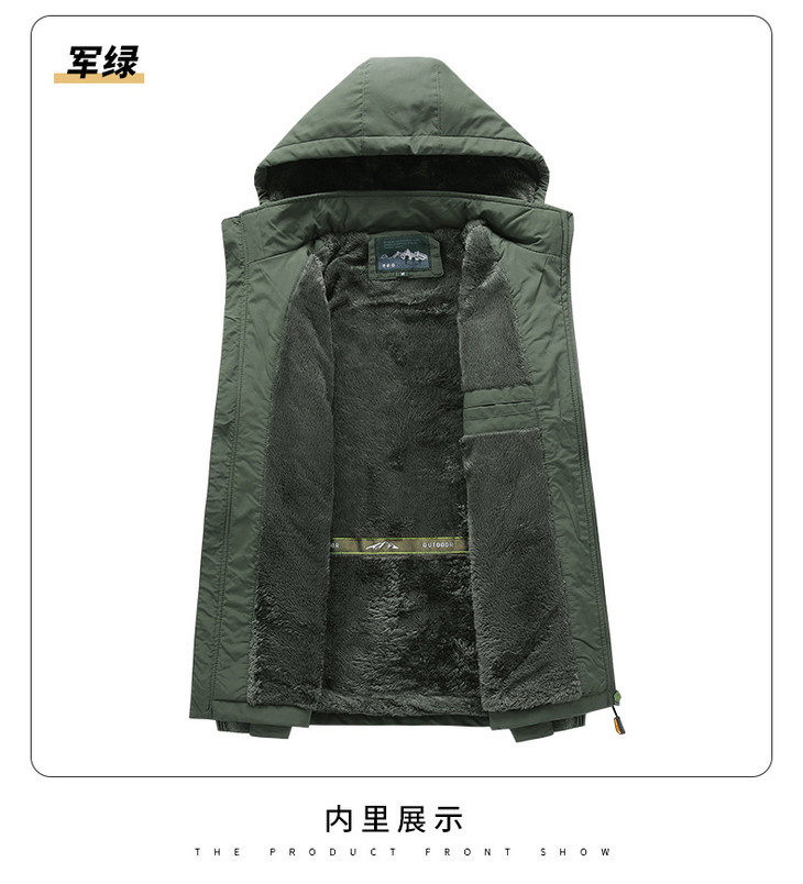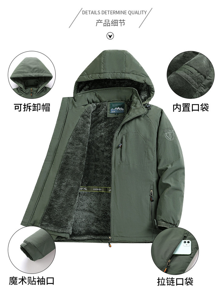 冬季加绒加厚防水透气男士户外休闲冲锋衣夹克大码中长款外套