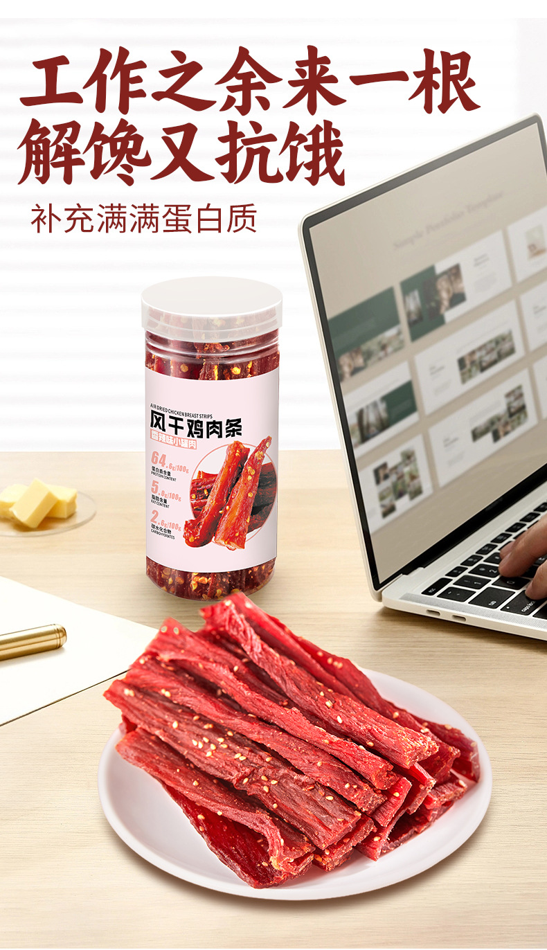 【拔丝质感❗️丝丝入味】风干鸡肉干鸡胸肉干鸡肉条健身代餐解馋耐嚼休闲零食肉干100g。jd