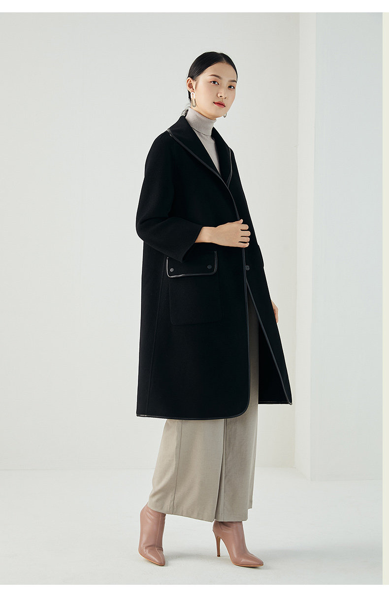 【羊绒】乔万尼连帽休闲简约设计感精致高级感双面尼羊绒羊毛大衣ES4A448