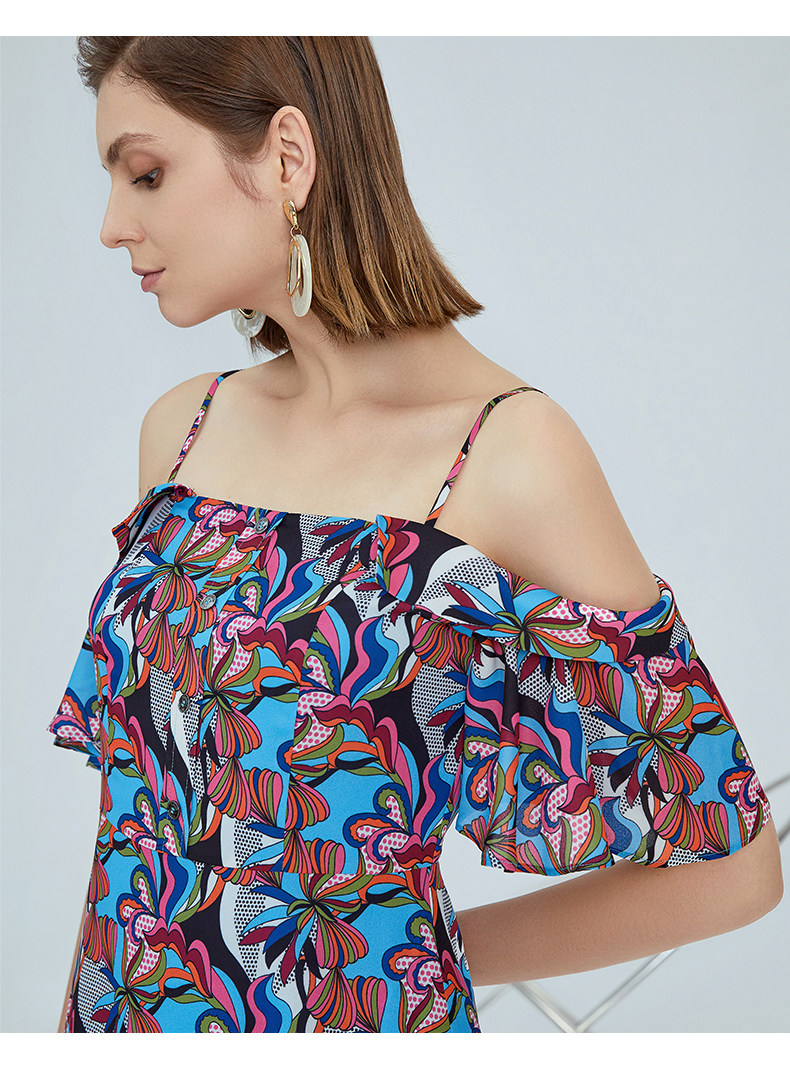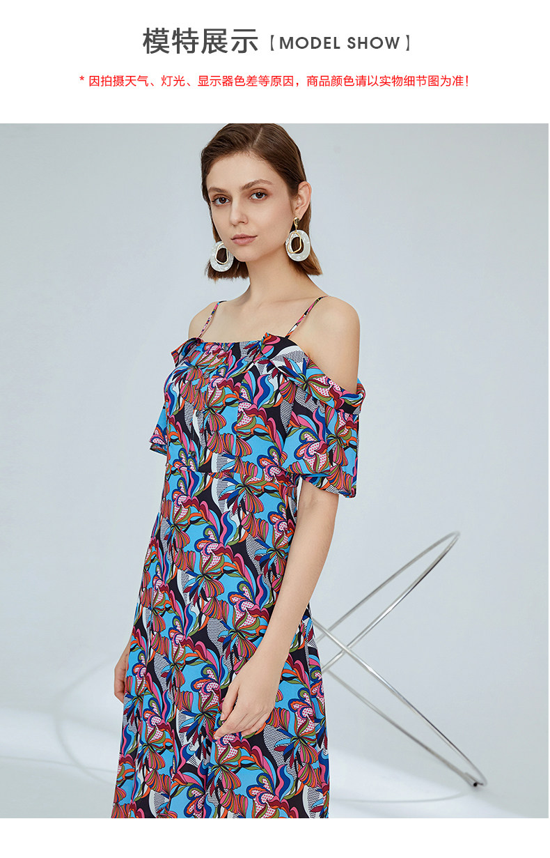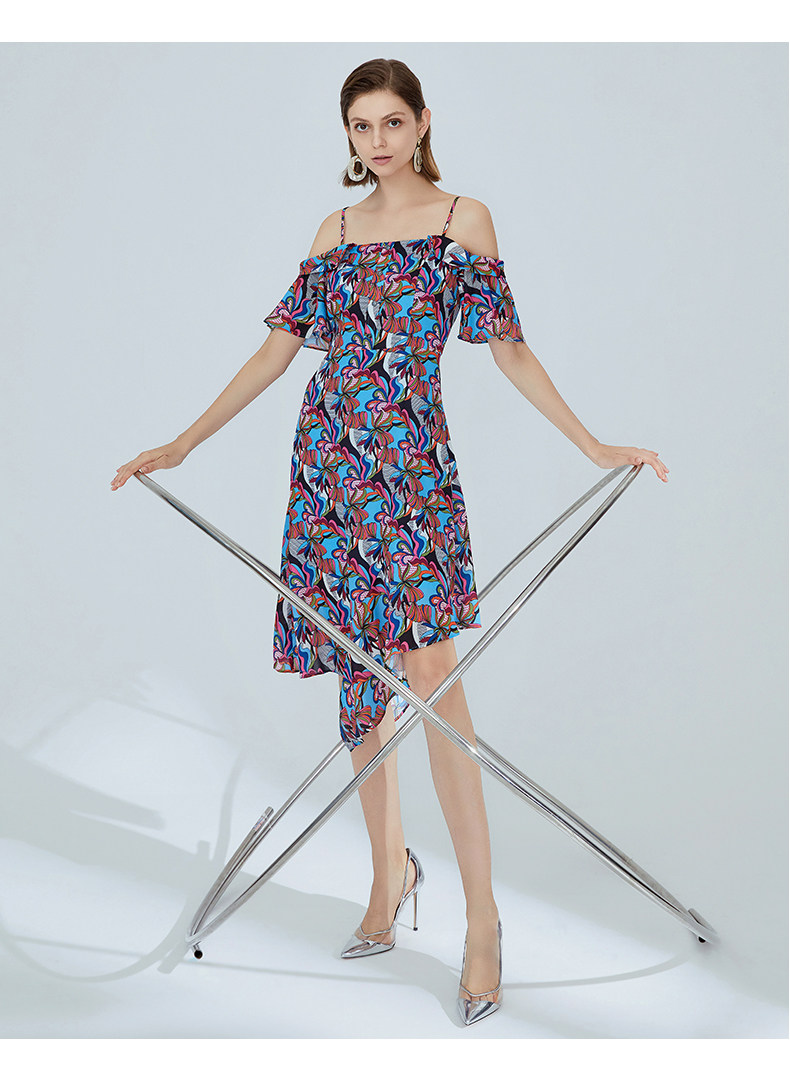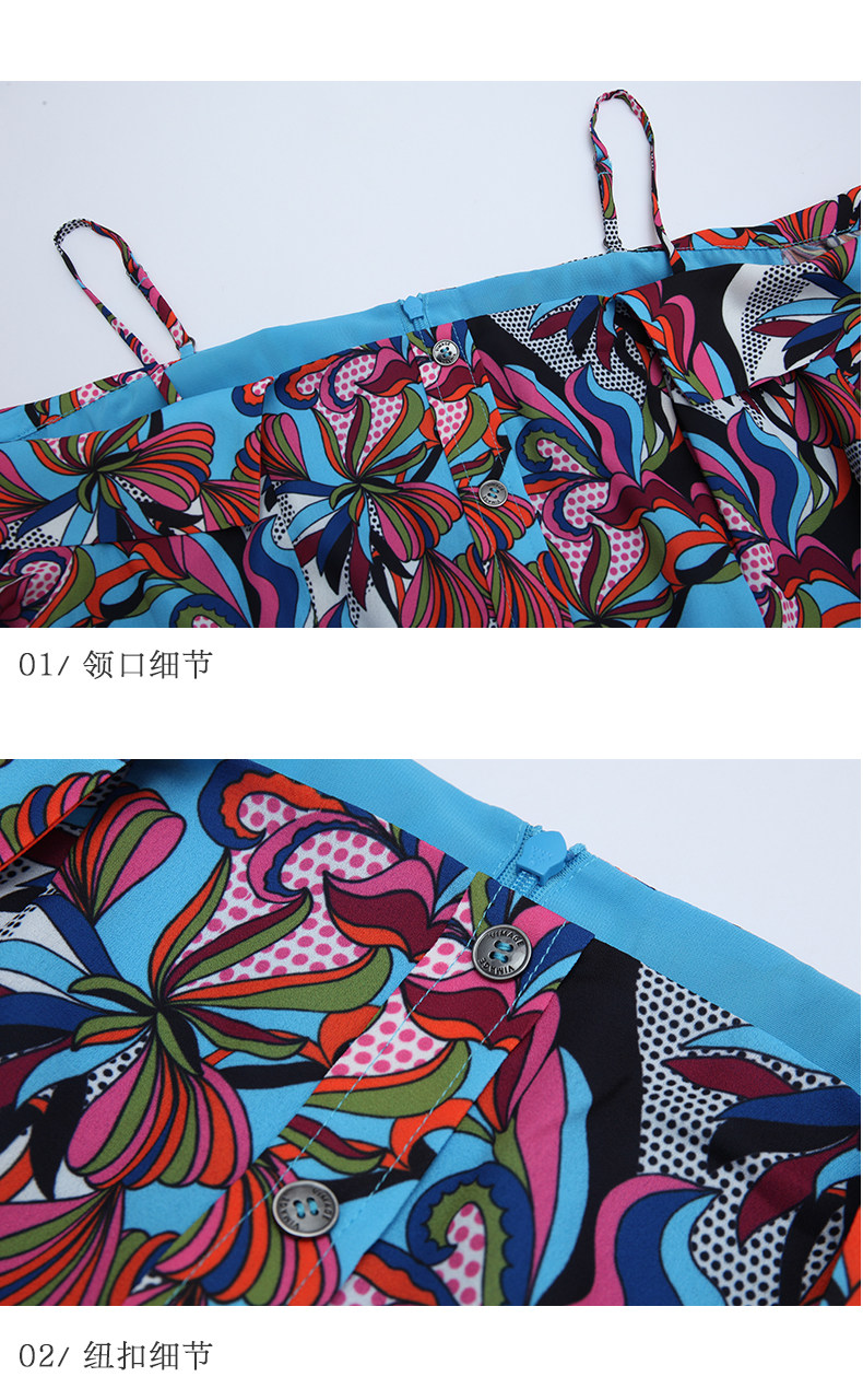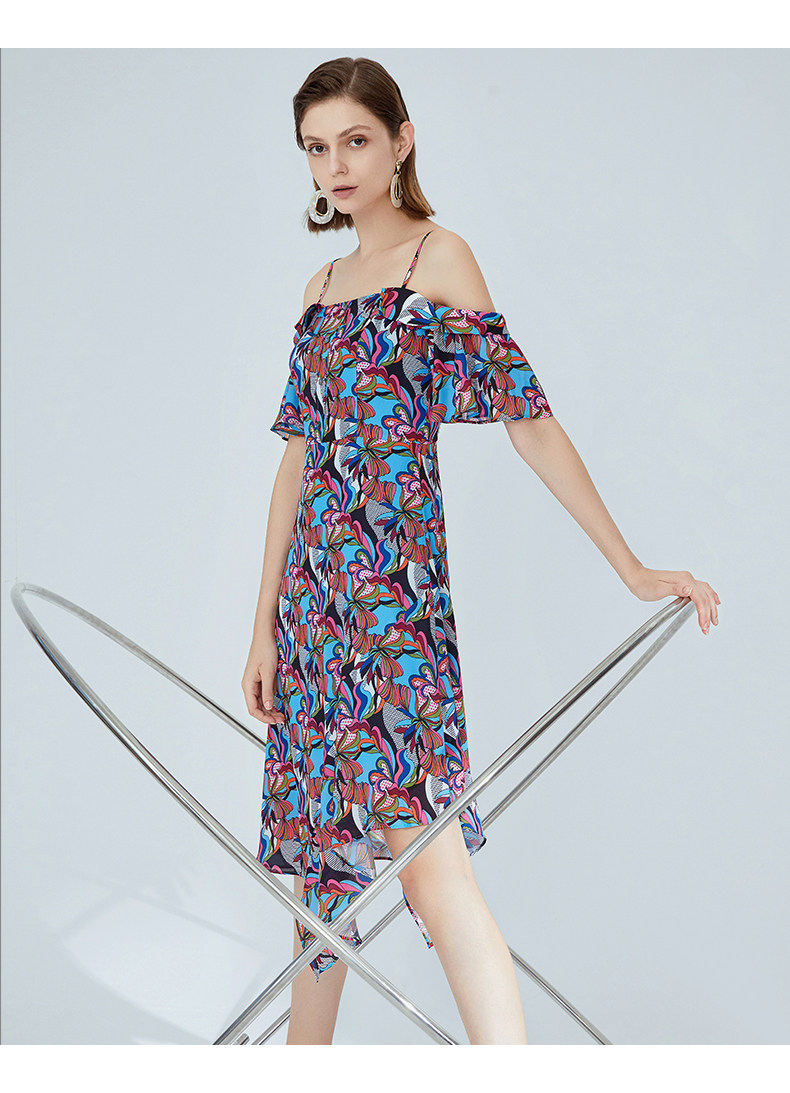 VIMAGE纬漫纪女装夏季度假风不规则裙摆雪纺吊带印花裙薄V1107765