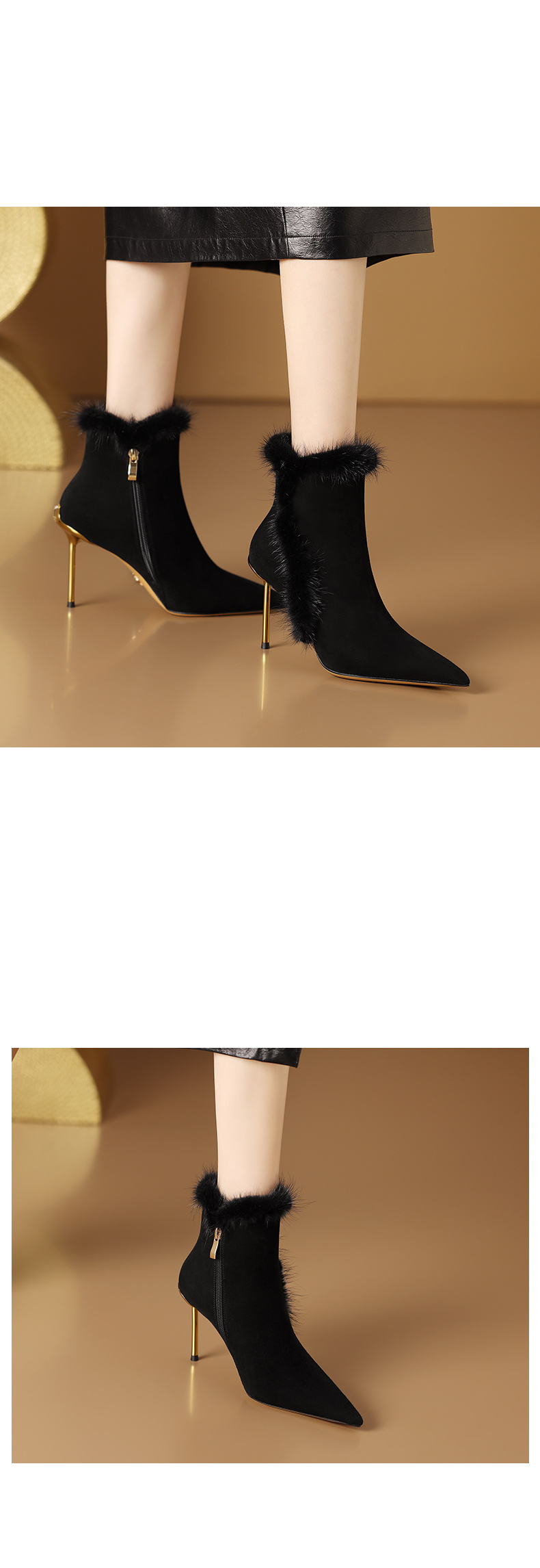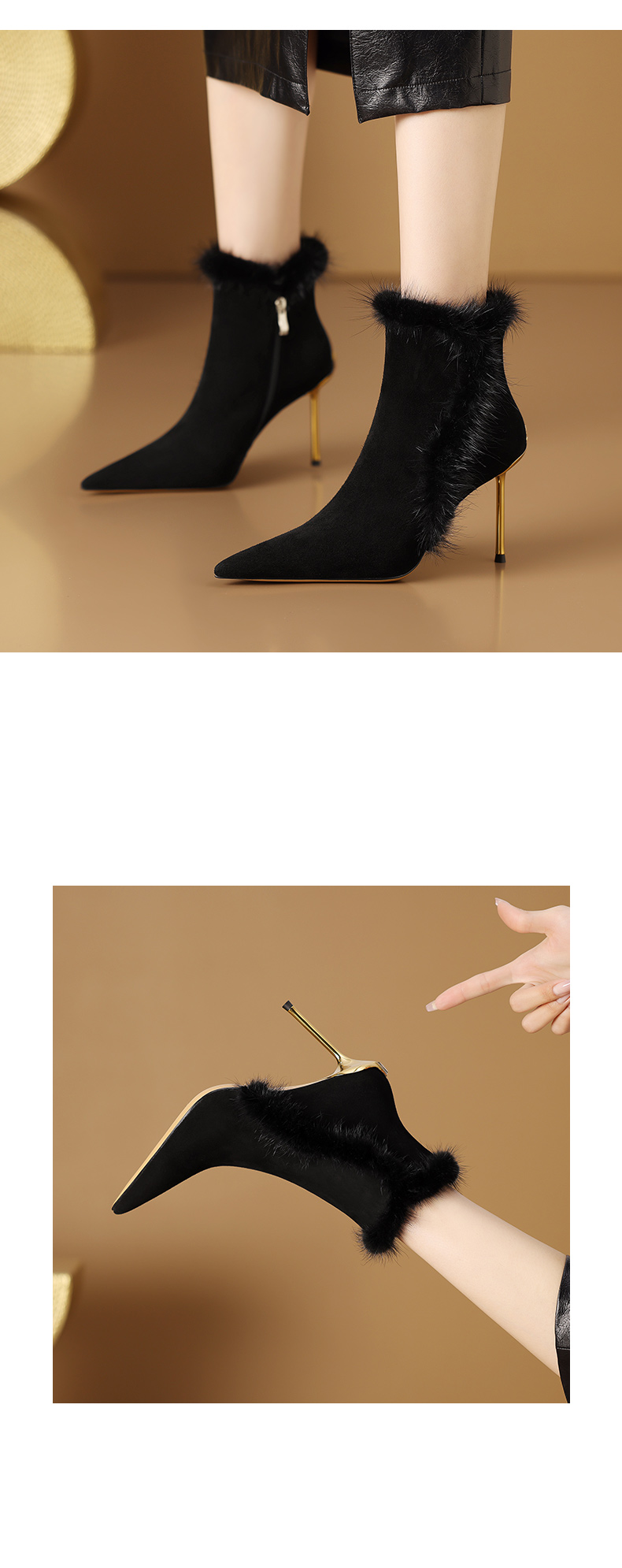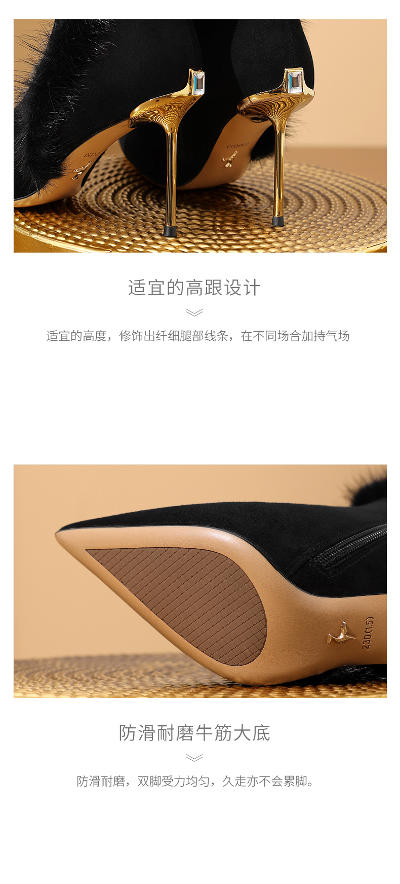 优雅性感,保暖爆款貂毛细跟短靴CX-SR127R