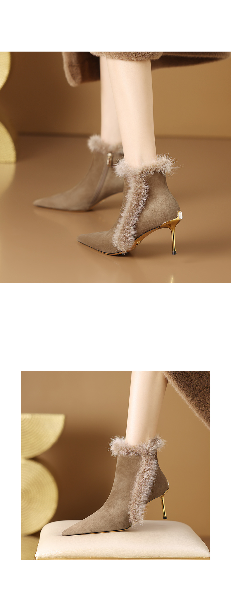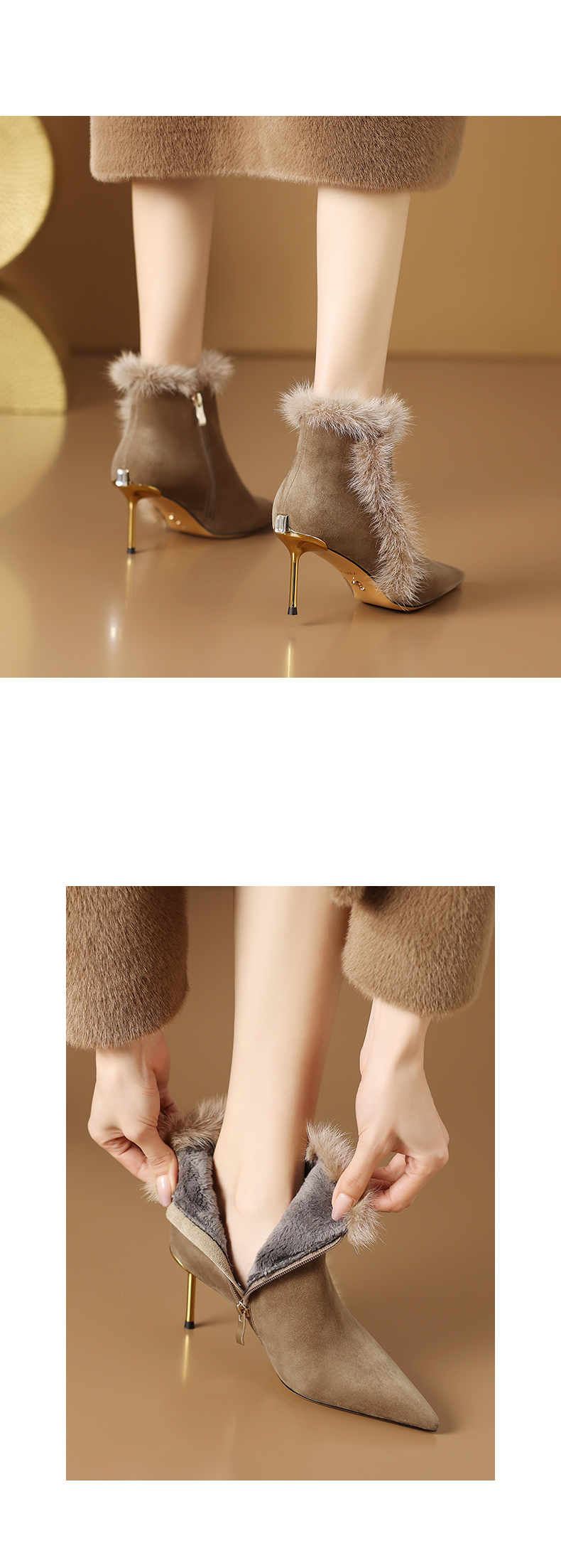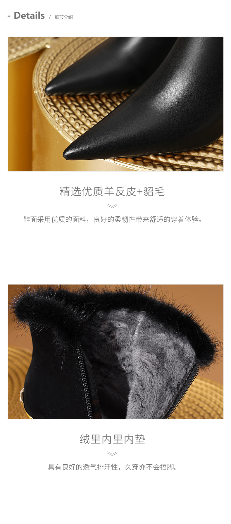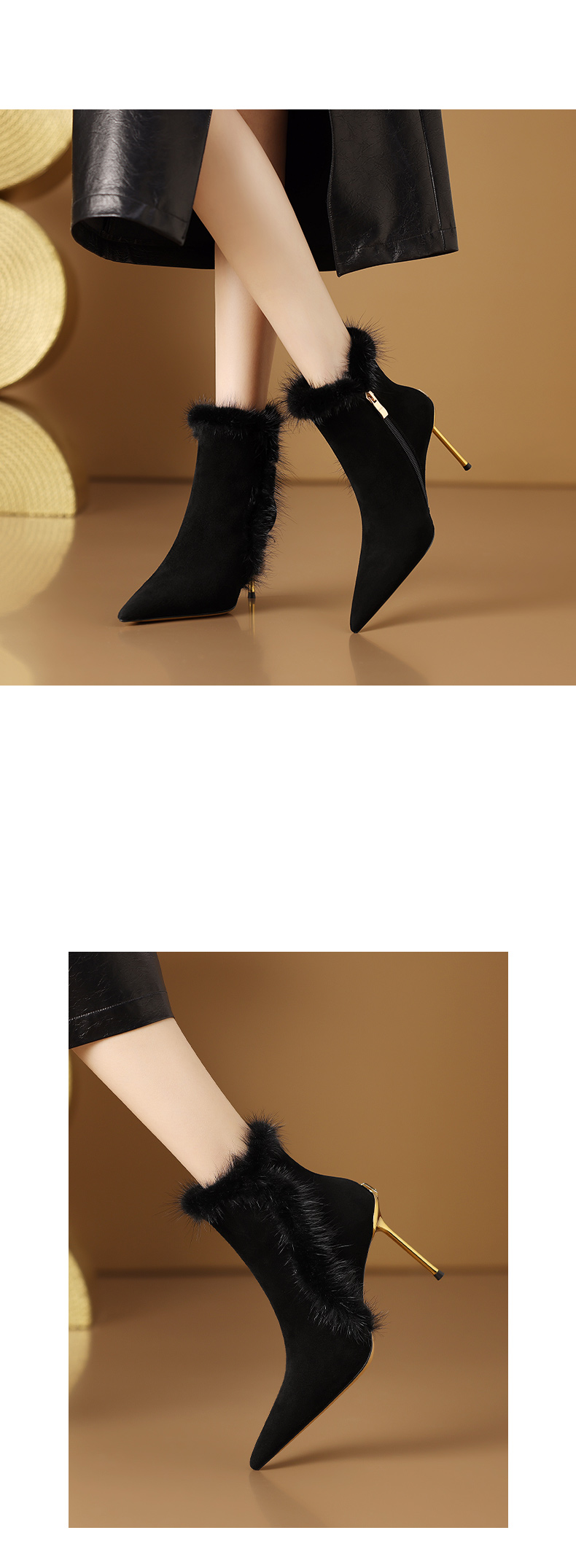 优雅性感,保暖爆款貂毛细跟短靴CX-SR127R