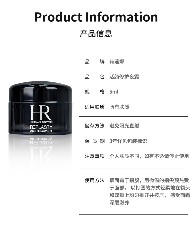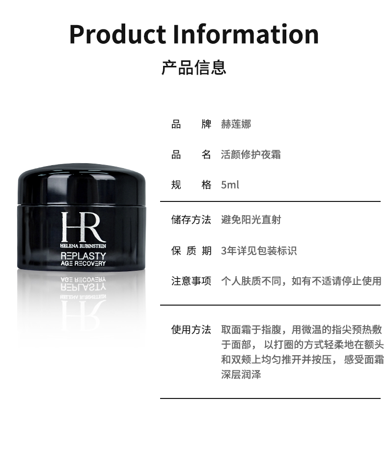 赫莲娜黑绷带面霜小样 活颜修护夜霜 5ml/罐