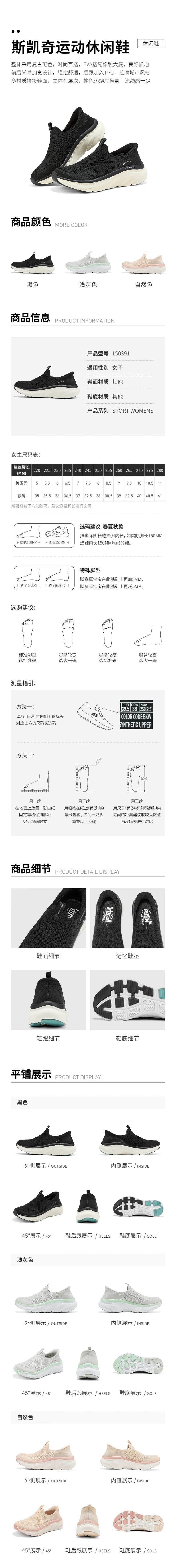 Skechers斯凯奇 女一脚蹬健步鞋 150391-BLK
