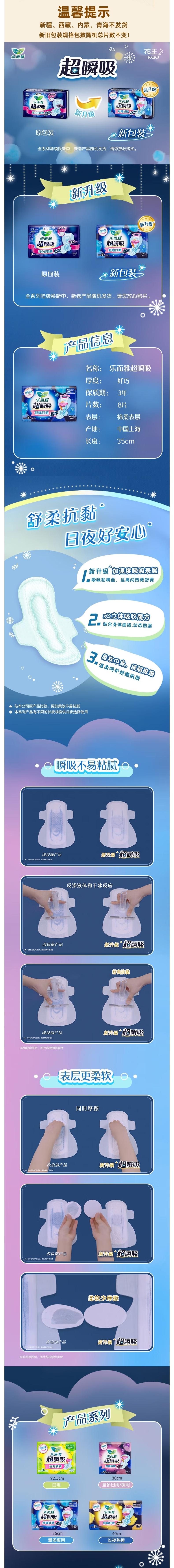 LAURIER乐而雅 花王超瞬吸超长夜用卫生巾35cm8片*3包 LRCSX353B