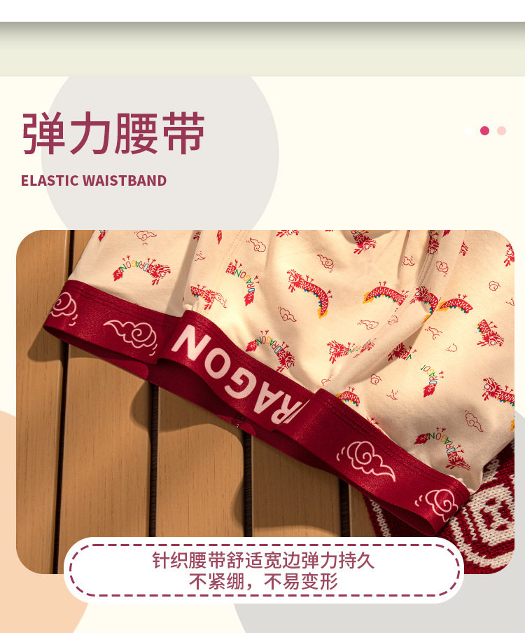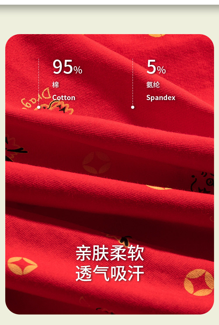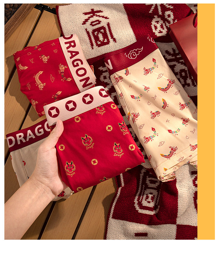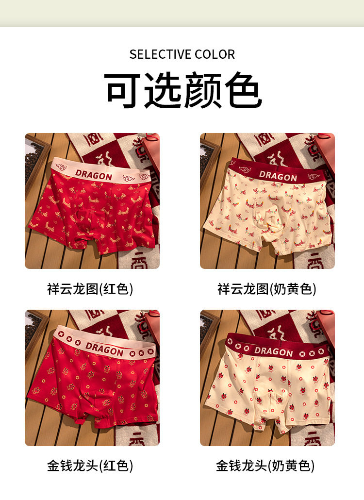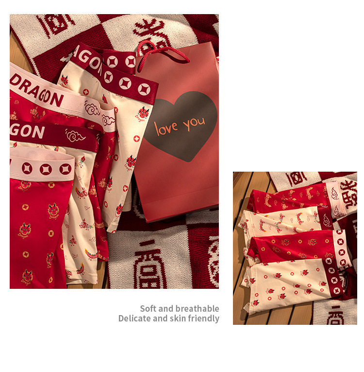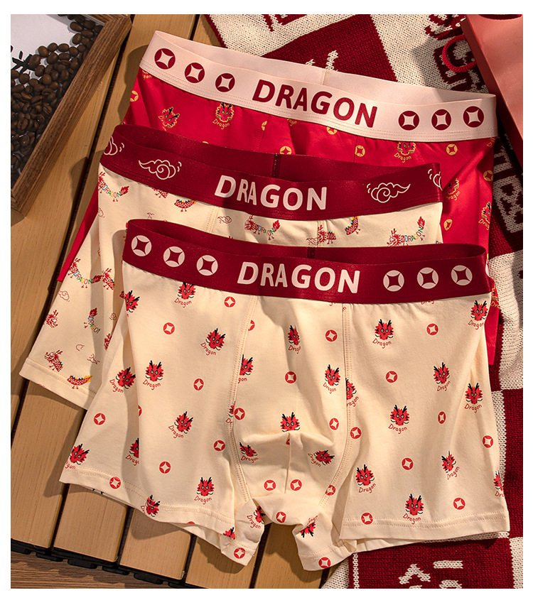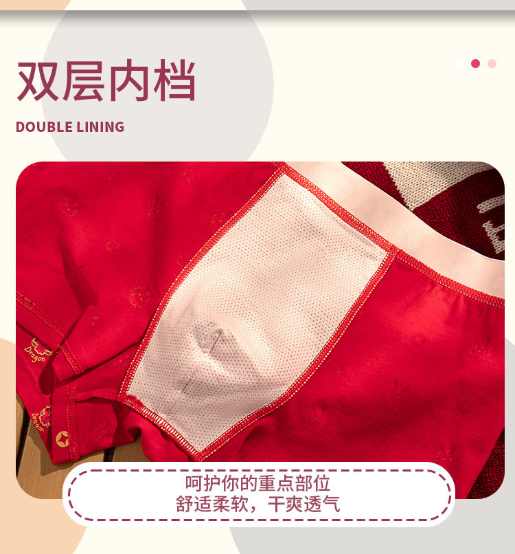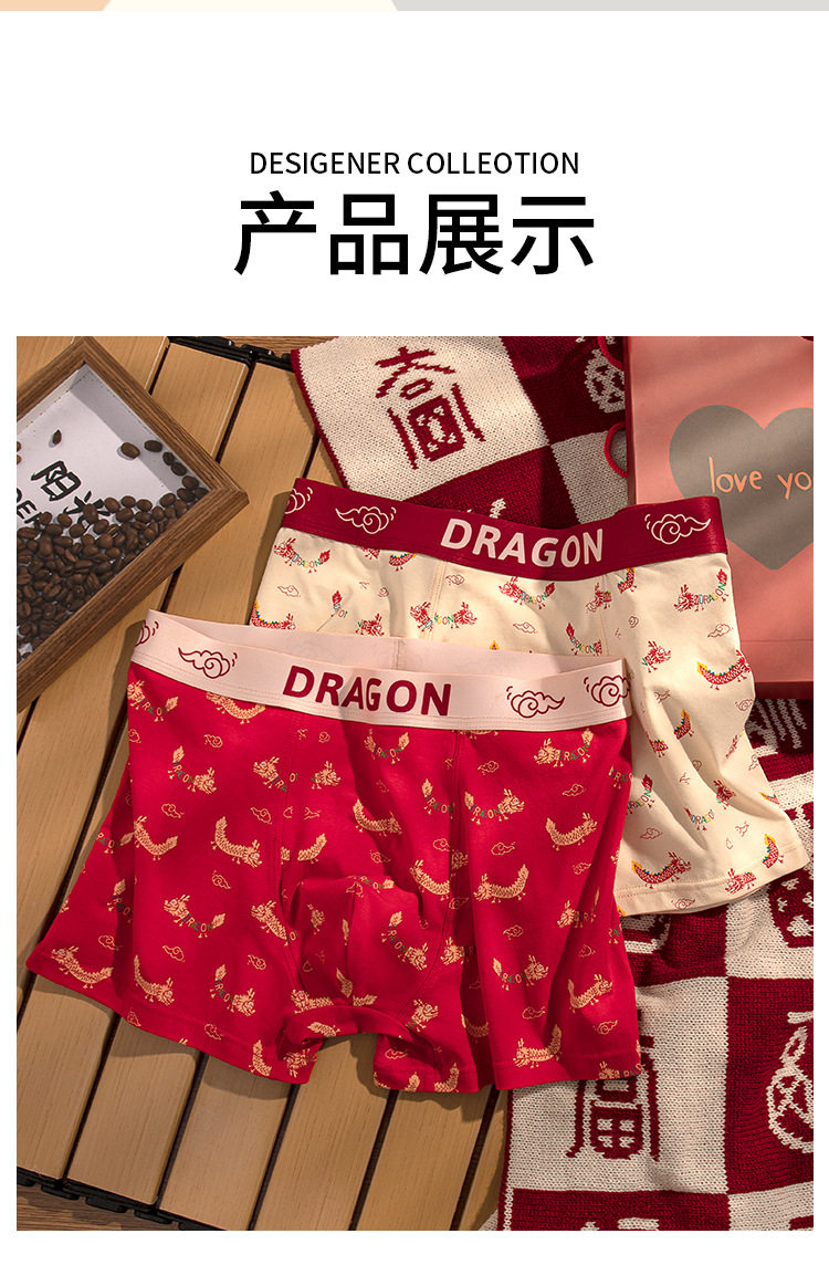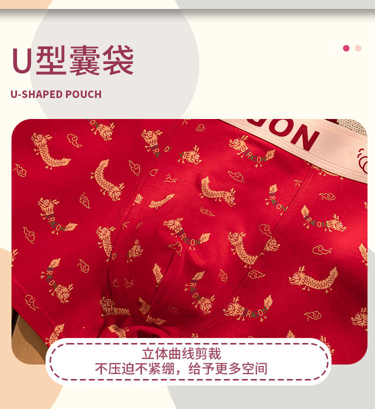 XN-ML226 【1条】潮流印花男士内裤纯棉本命年大红平角裤男生内裤