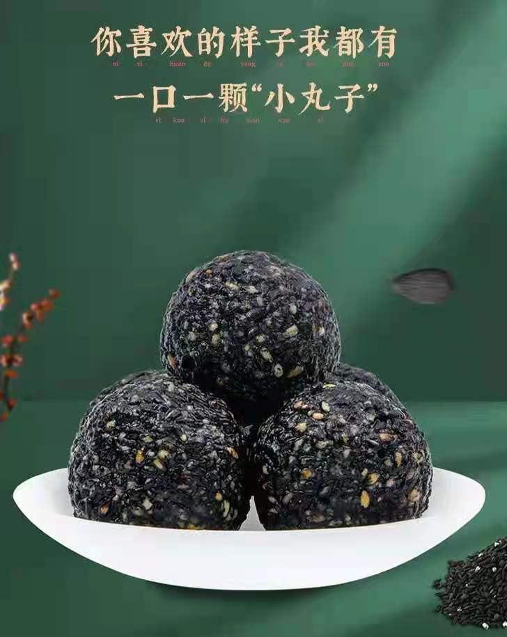 口感软糯,粒粒醇香胶乡情黑芝麻丸,原生态纯黑芝麻以黑养黑,乌黑养发,润肠通便,补钙明目