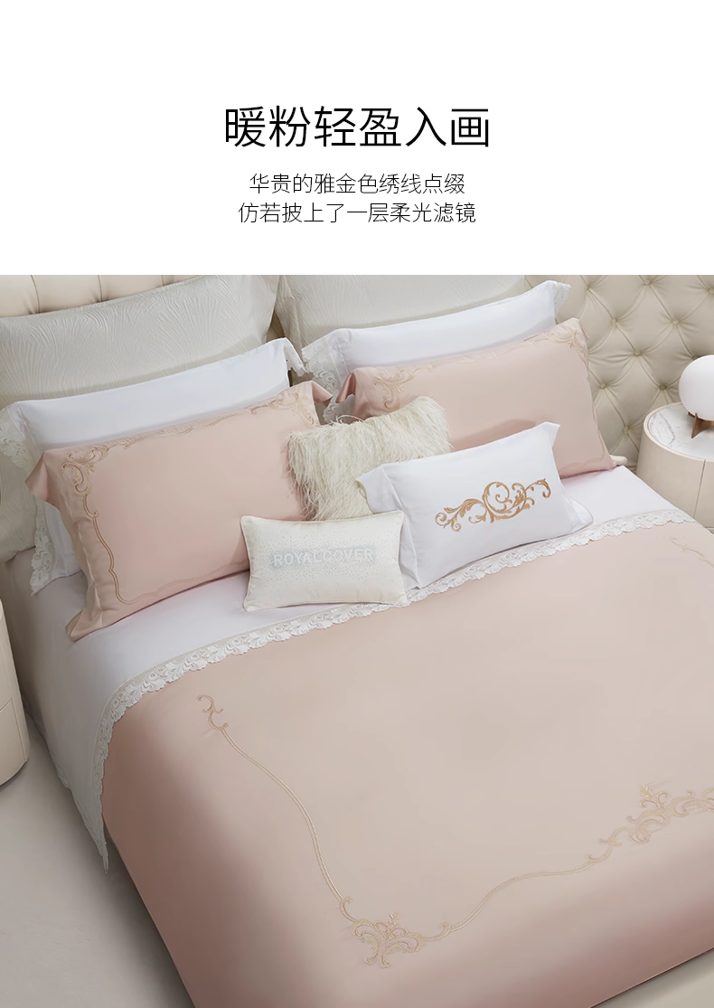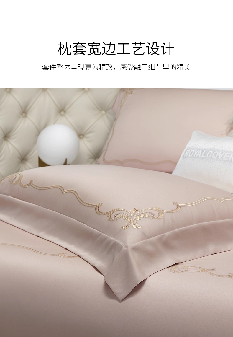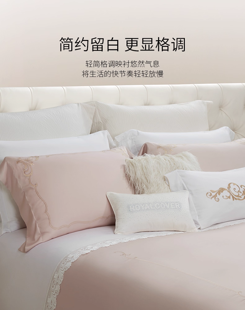 【ROYALCOVER】罗卡芙欧式简约刺绣100S长绒棉全棉床单四件套 瓦伦纳