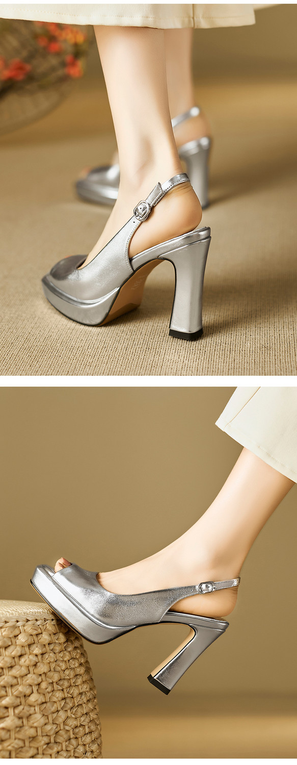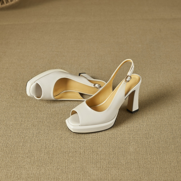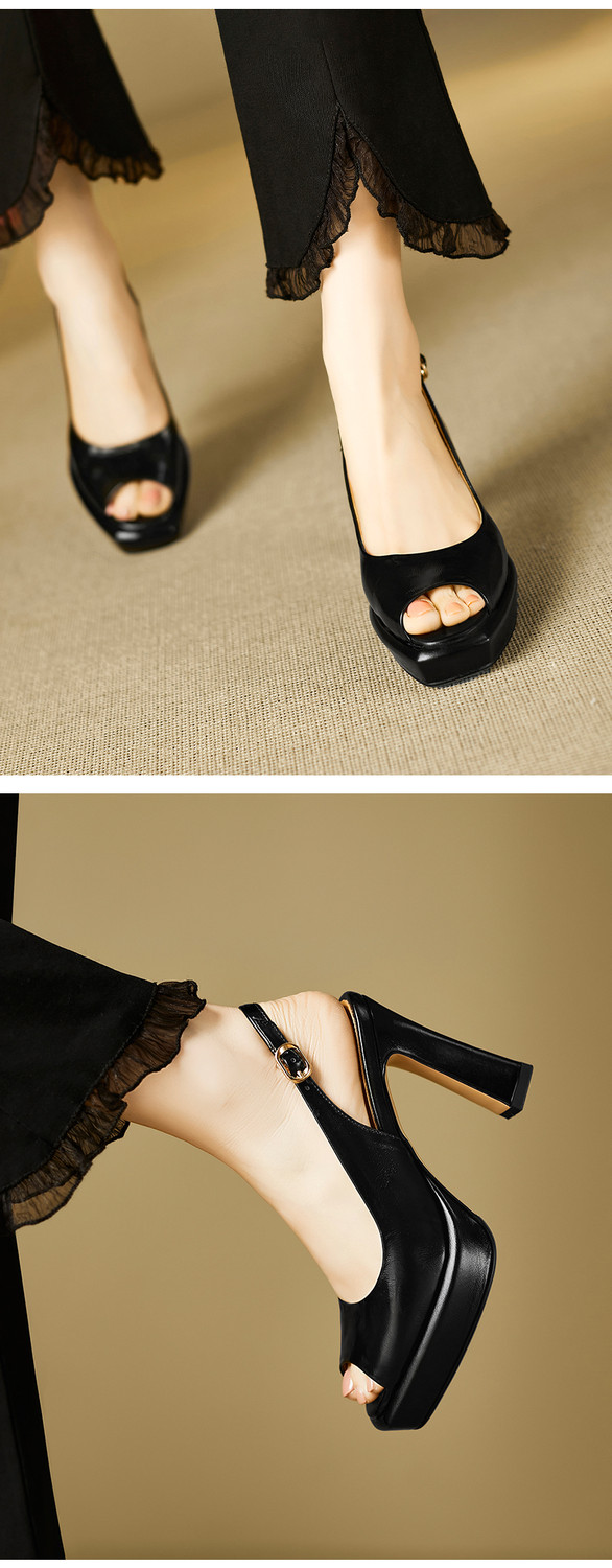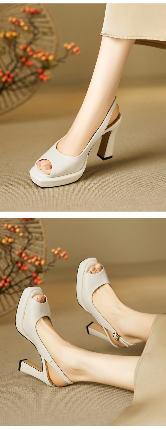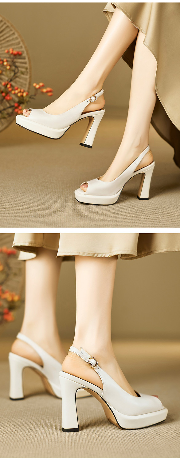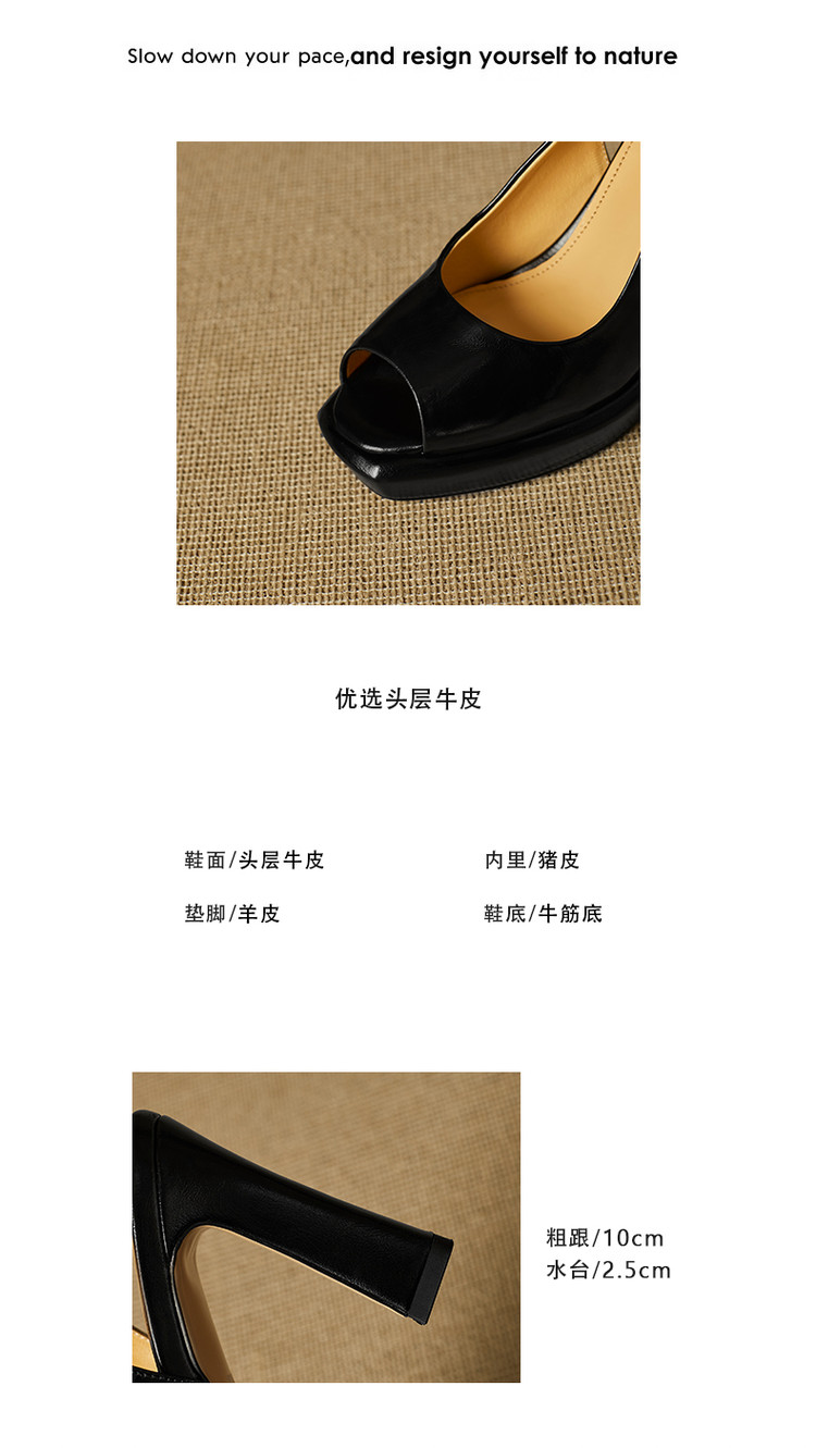 【预售5天】鱼嘴厚底粗跟法式凉鞋女真皮新款夏季超高跟防水台仙女罗马鞋JGGXY&A8228-1