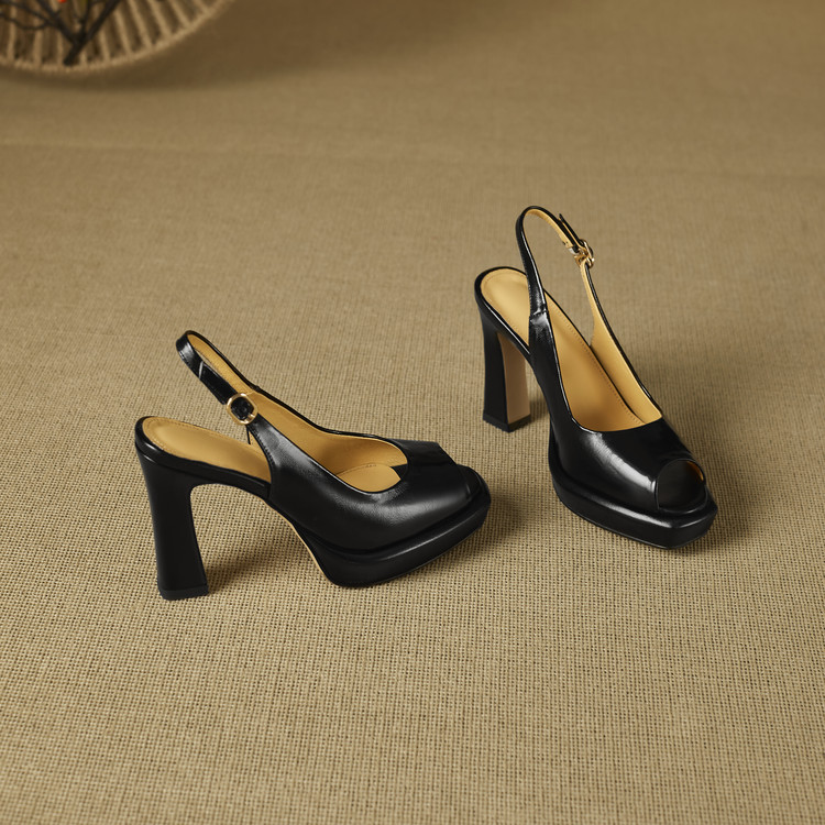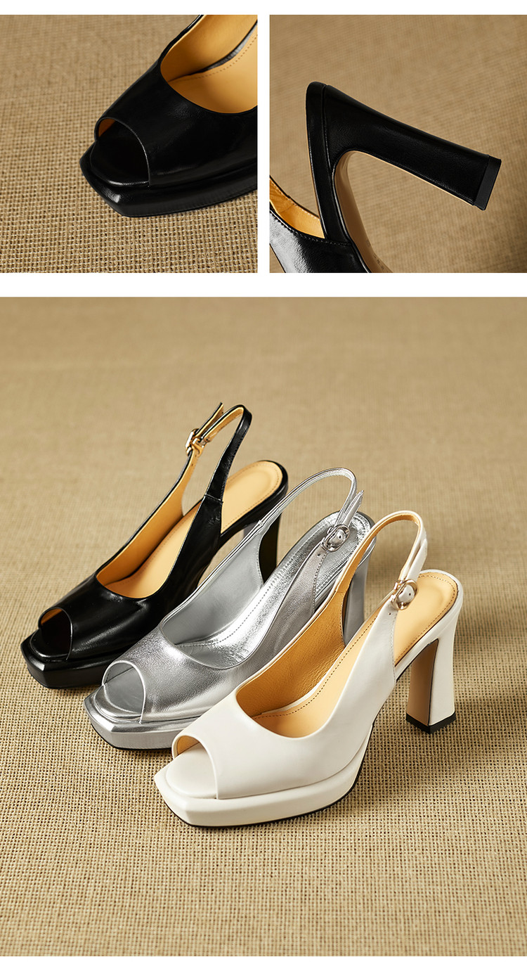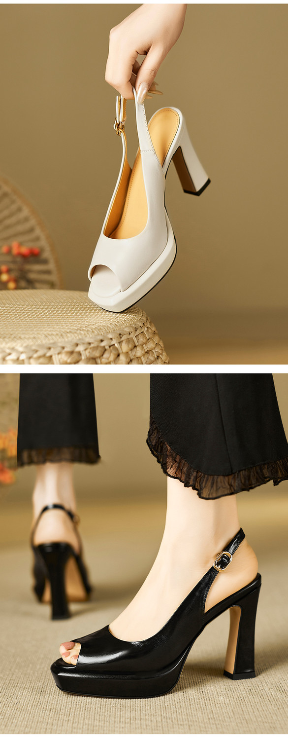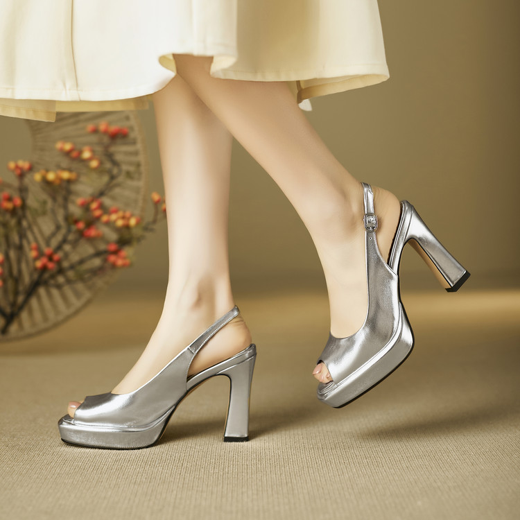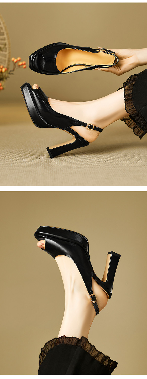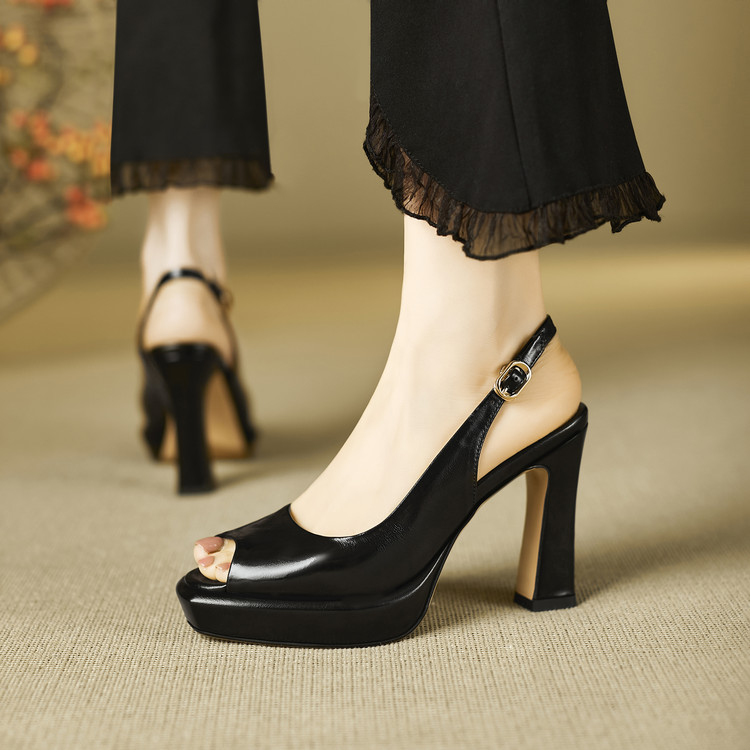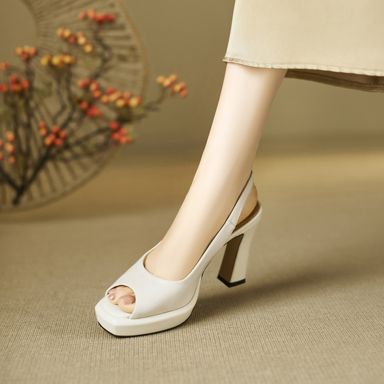 【预售5天】鱼嘴厚底粗跟法式凉鞋女真皮新款夏季超高跟防水台仙女罗马鞋JGGXY&A8228-1