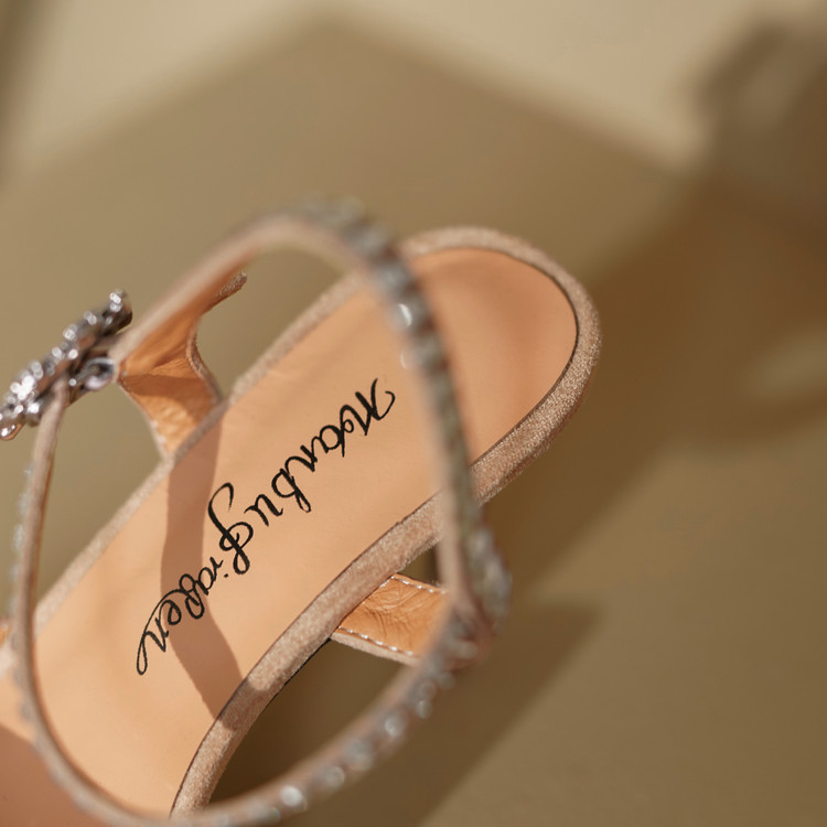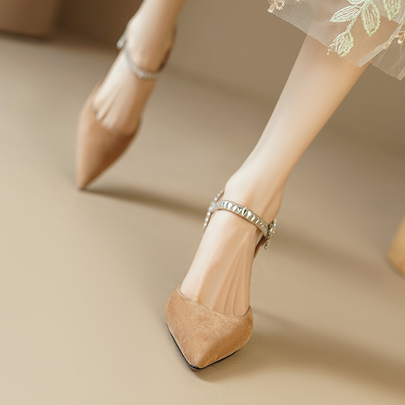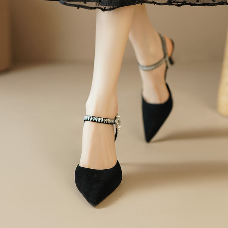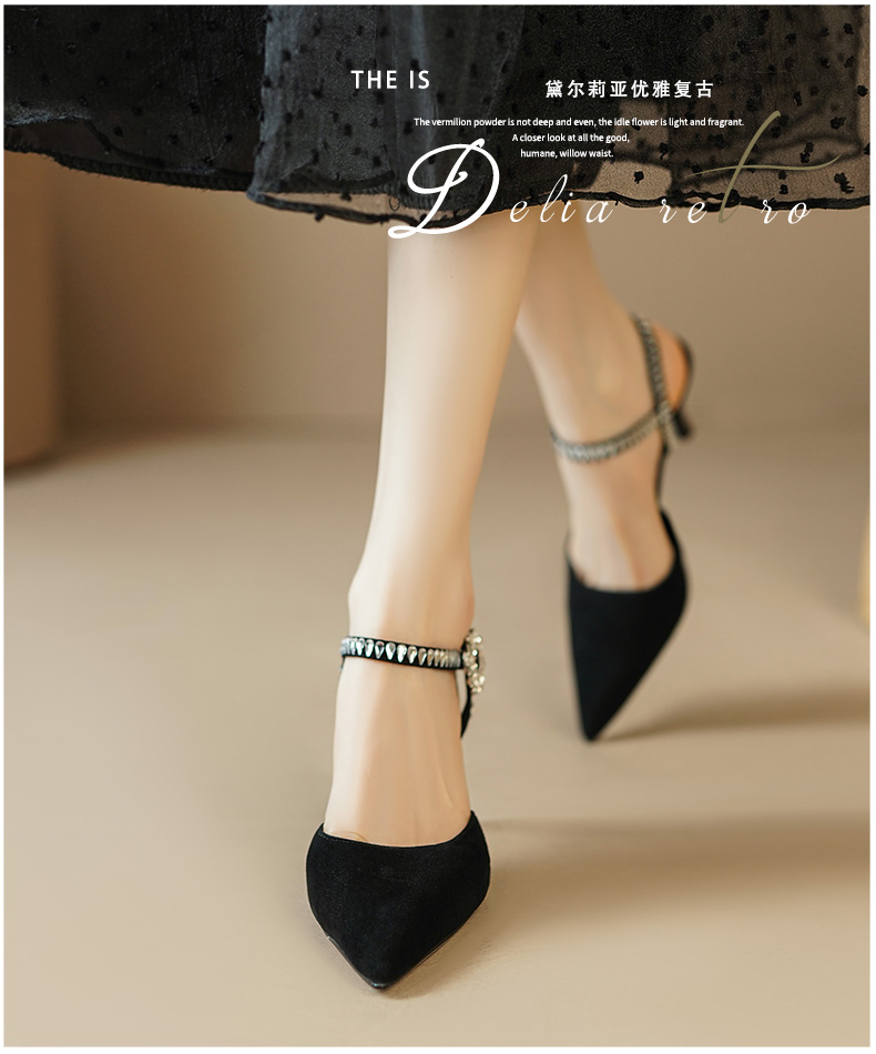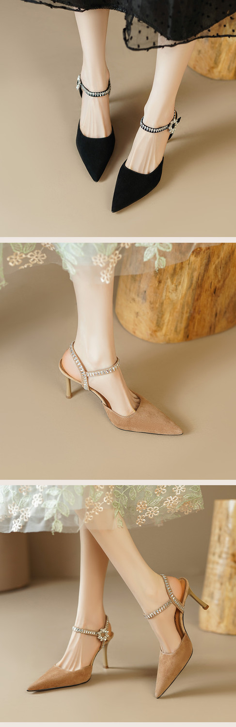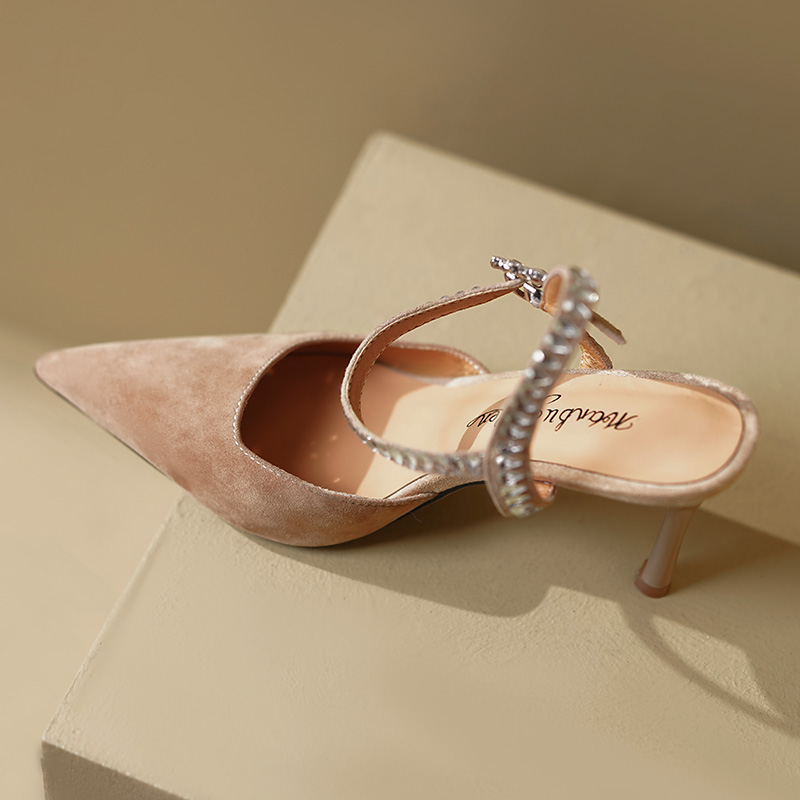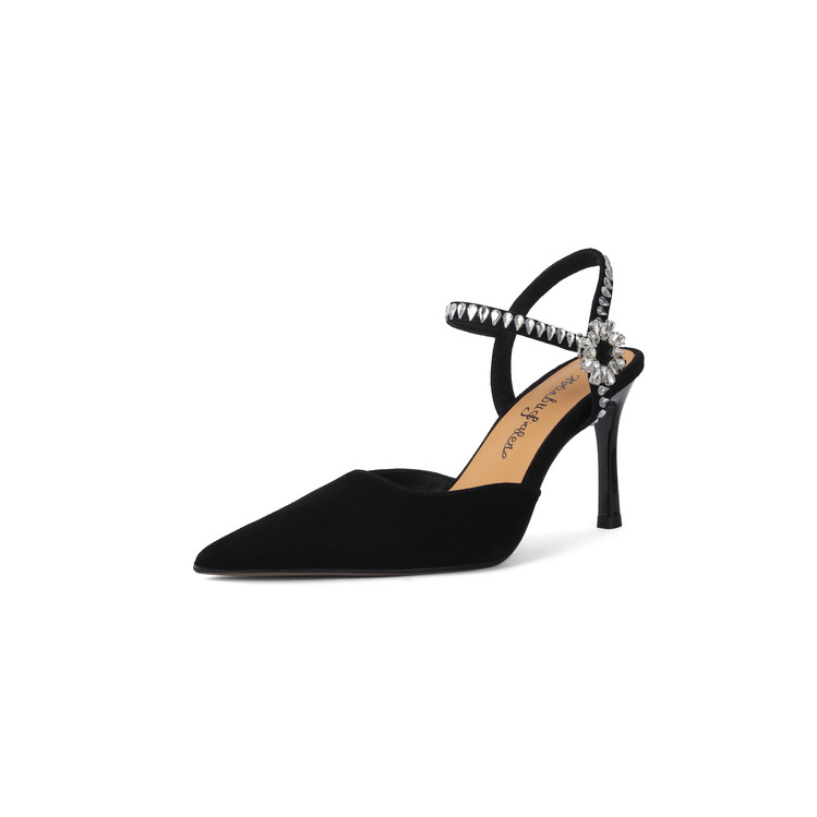 【预售5天】羊翻皮包头后空凉鞋女夏季新款女鞋欧美尖头水钻一字扣高跟鞋FDJ&YC--088