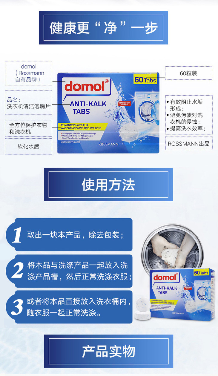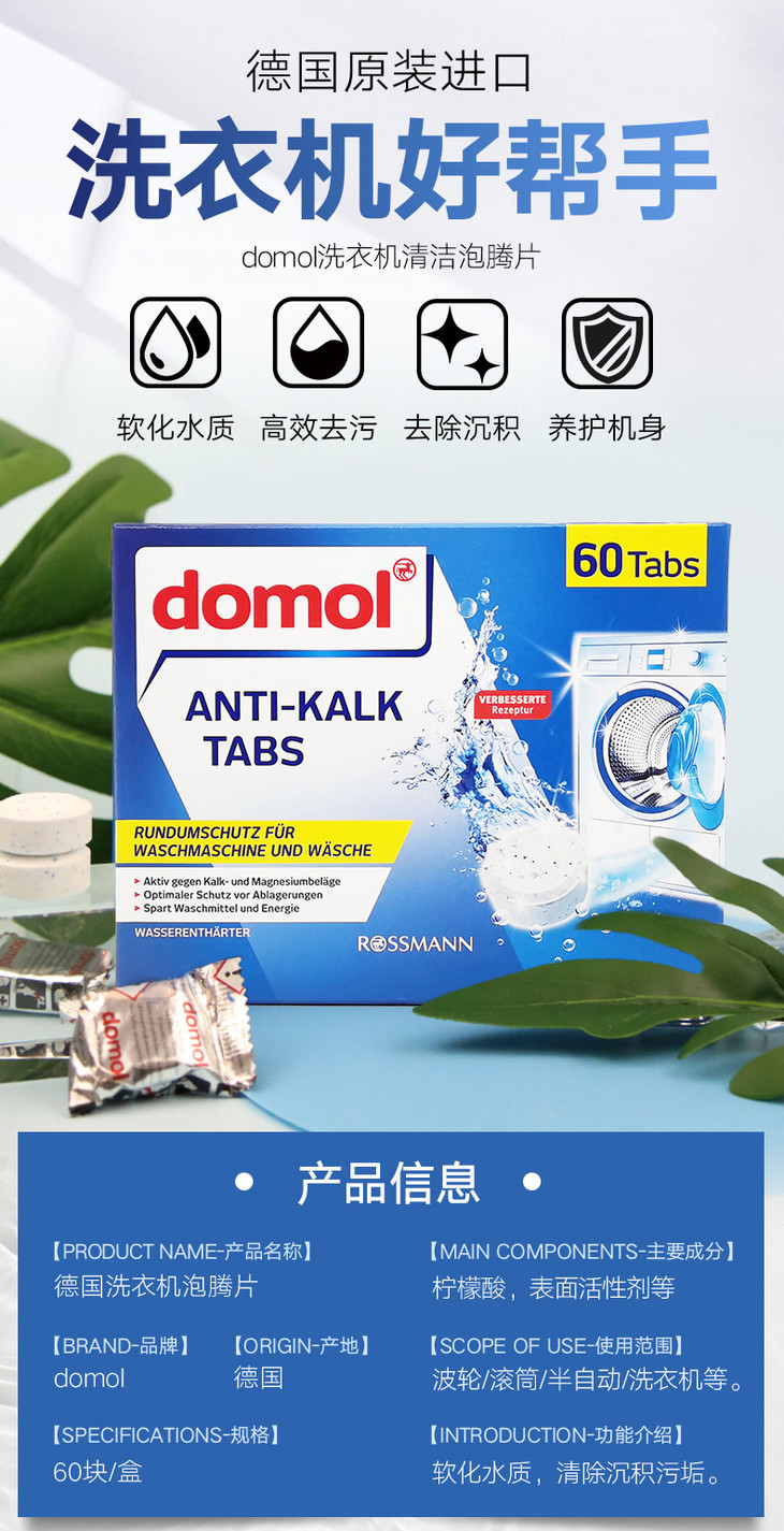 德国domol洗衣机槽泡腾片洗护色清洁污渍滚筒全自动除垢抑菌