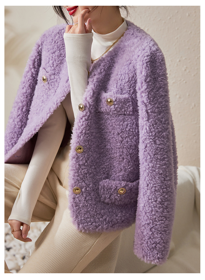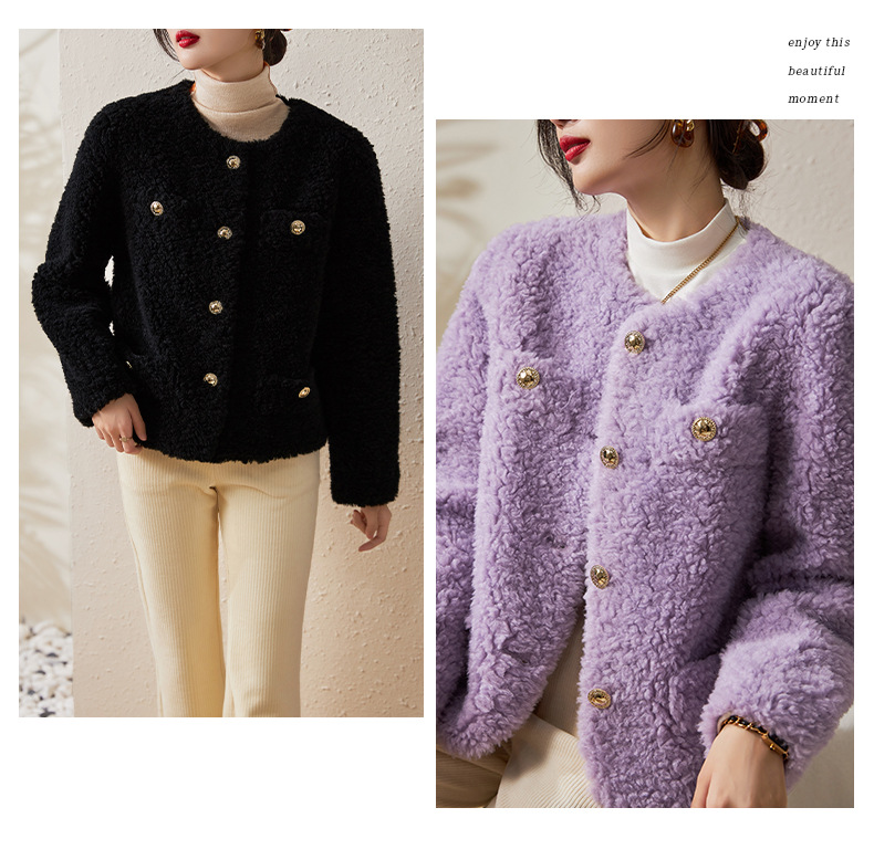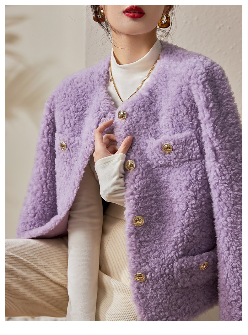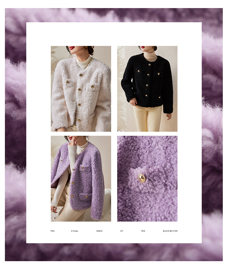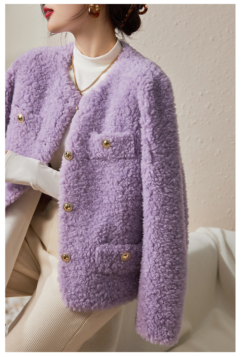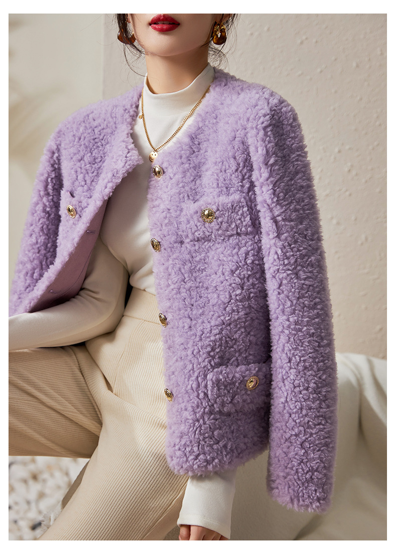WLZD-2225505高奢三色显白鸢尾紫雅菲绒羊毛皮毛一体名媛香风外套