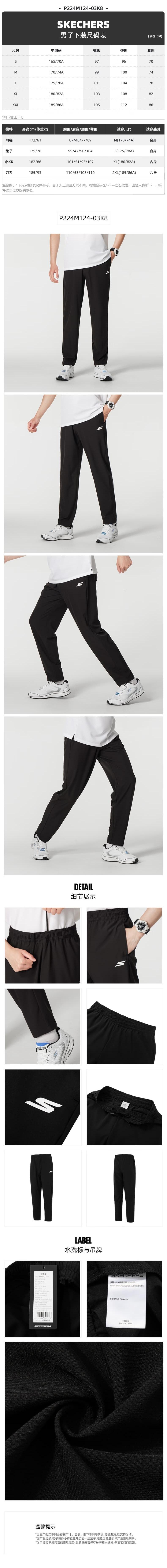 Skechers斯凯奇 男梭织长裤 P224M124-03K8