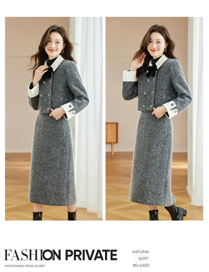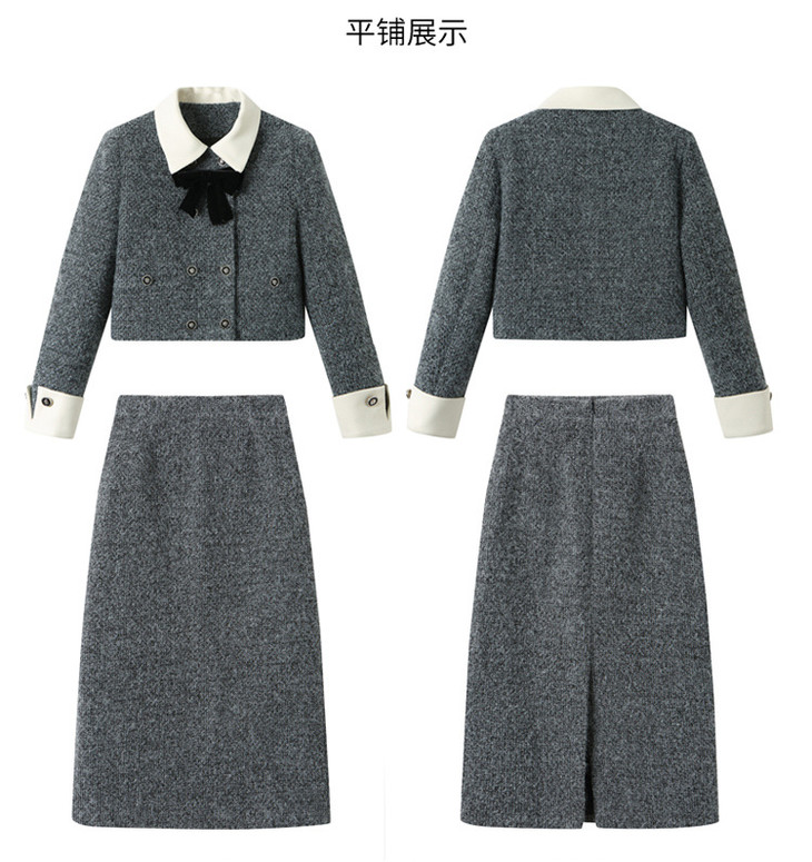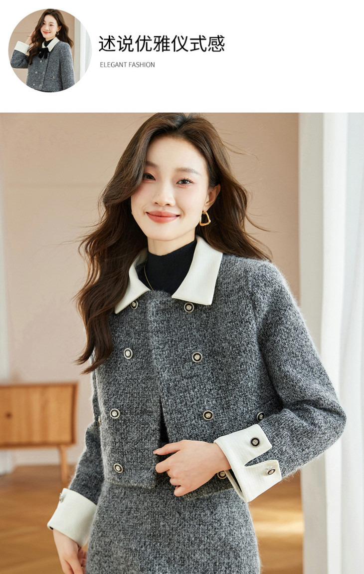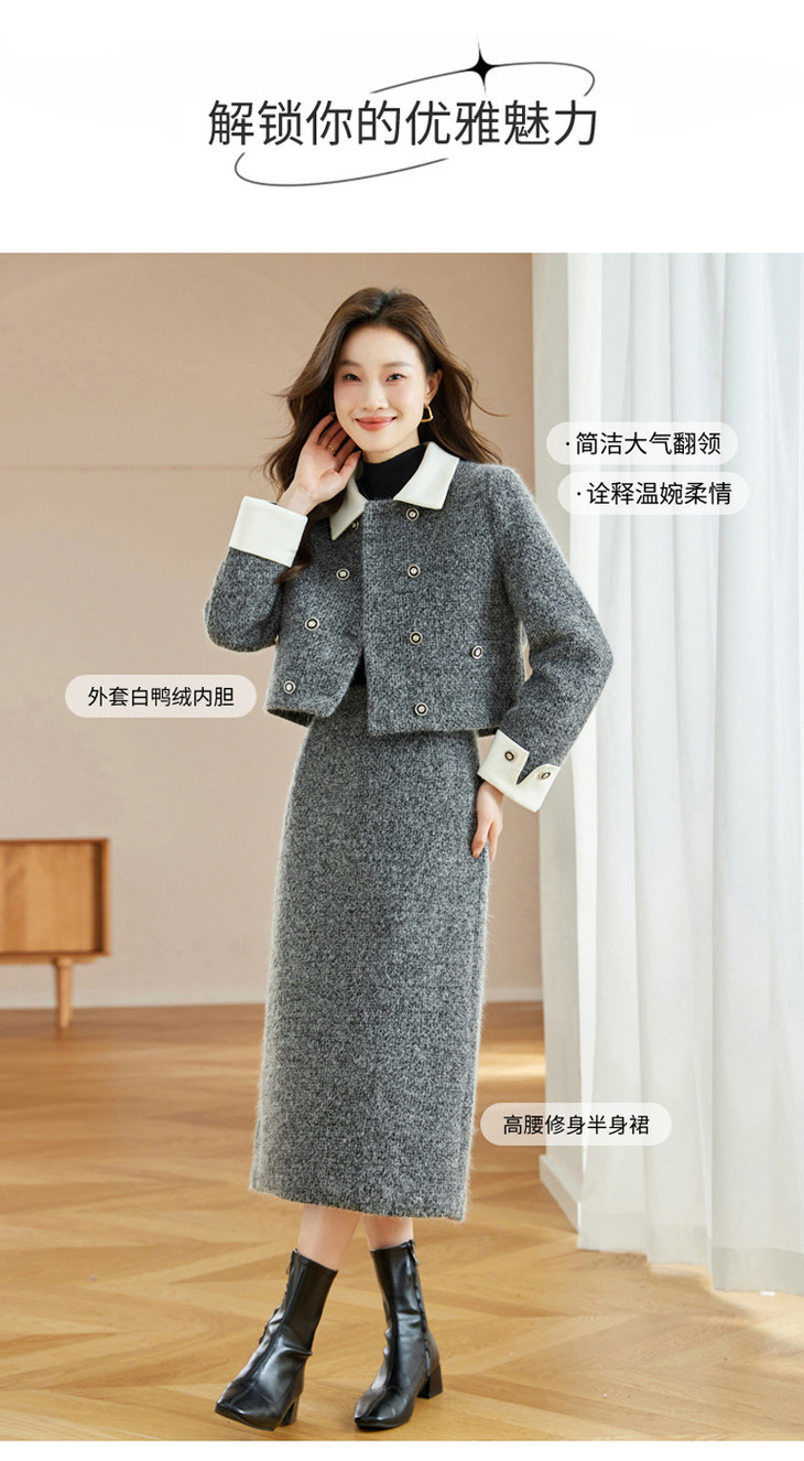 2023冬上新气质时尚小香风白鸭绒加厚保暖上衣+半身裙两件套HR-WW52209