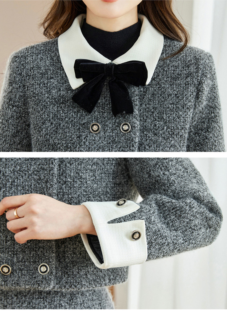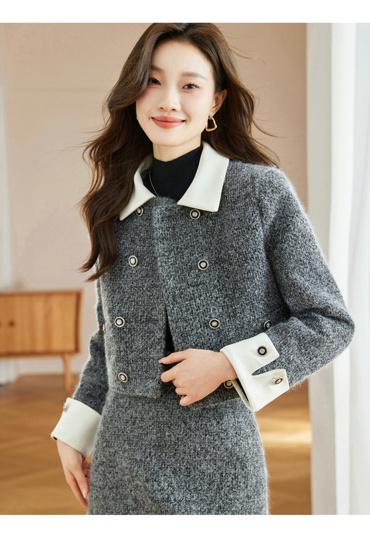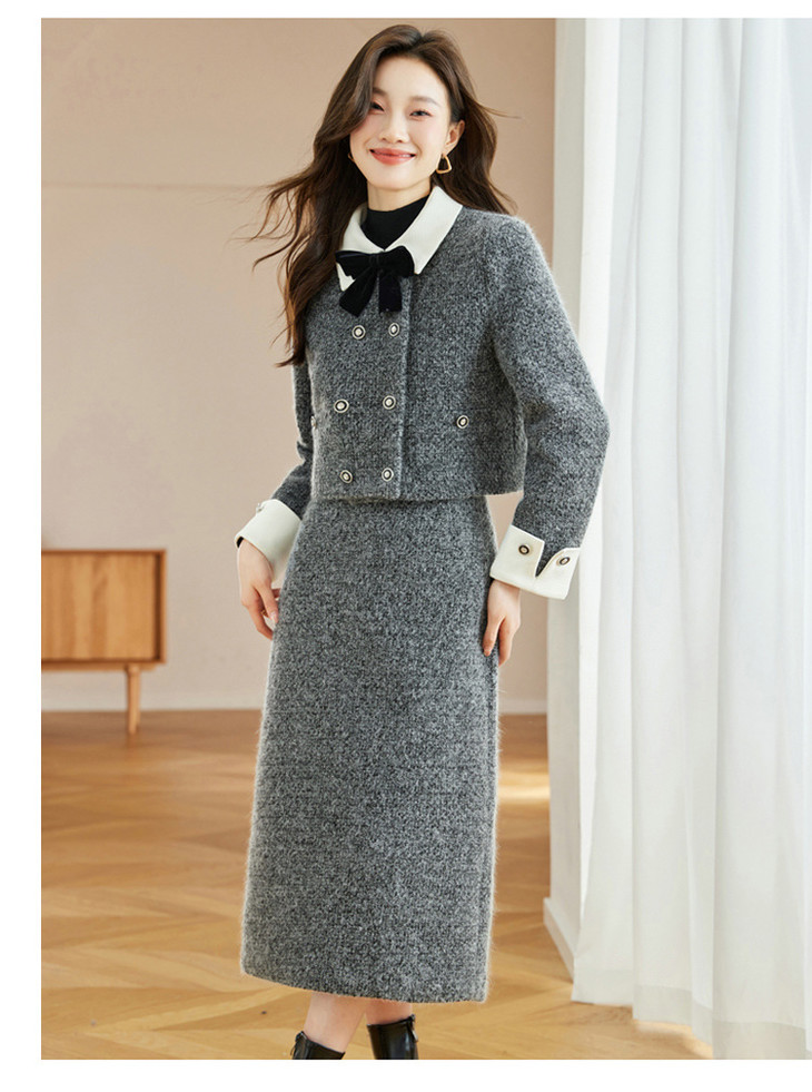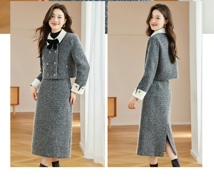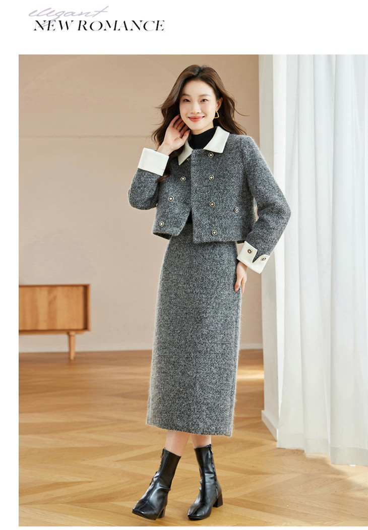 2023冬上新气质时尚小香风白鸭绒加厚保暖上衣+半身裙两件套HR-WW52209