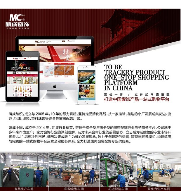 萌成窗饰旗舰店,窗饰行业互联网先驱,旨在为广大窗帘零售商提供更齐全的产品,更具有竞争力的价格,更优质的售后服务。 批发窗饰产品找萌成!