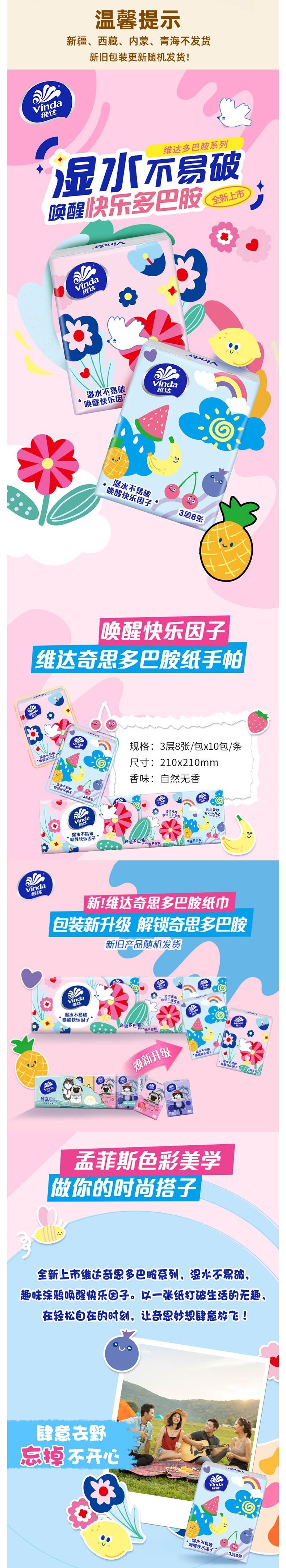 Vinda维达 多巴胺手帕纸3层8片10包*10条 VWS8P-10TJ